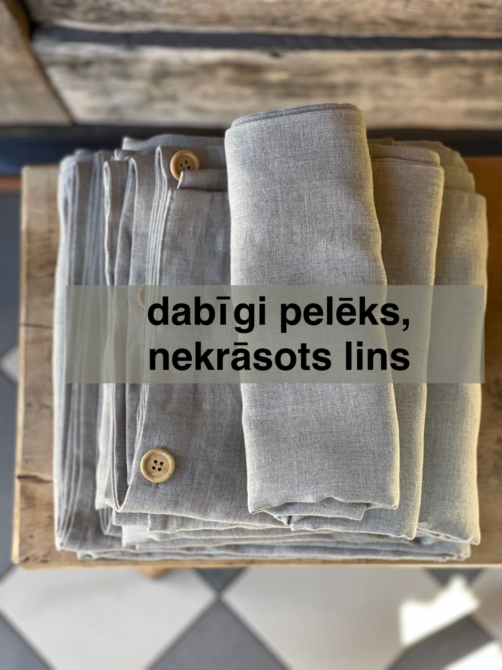 Mūsu lina izstrādājumi tiek izgatavoti no 100% dabīga, mīkstināta lina, kas ir ne tikai patīkams pieskārienam, bet arī izturīgs un viegli kopjams. Lins ir elpojošs, ātri žūstošs un kļūst mīkstāks ar katru mazgāšanas reizi.