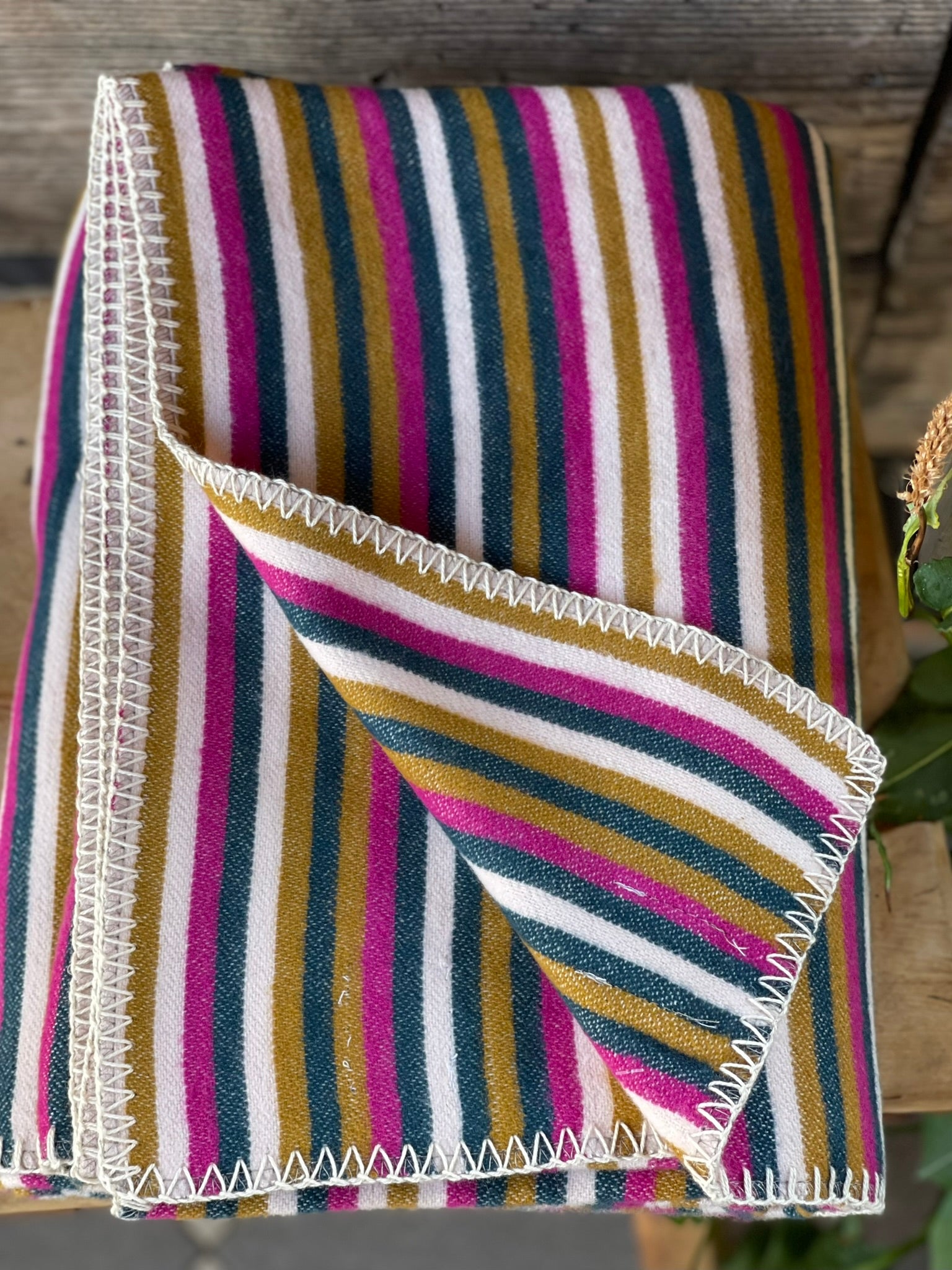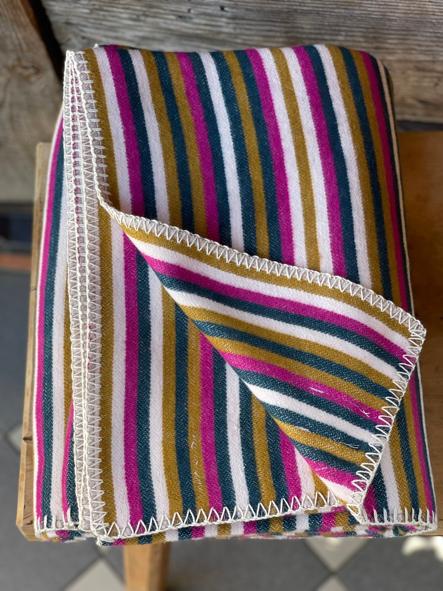 Svītraina, ļoti mīksta kokvilnas sega/pleds/gultas pārklājs pārsteidzoši košos toņos.