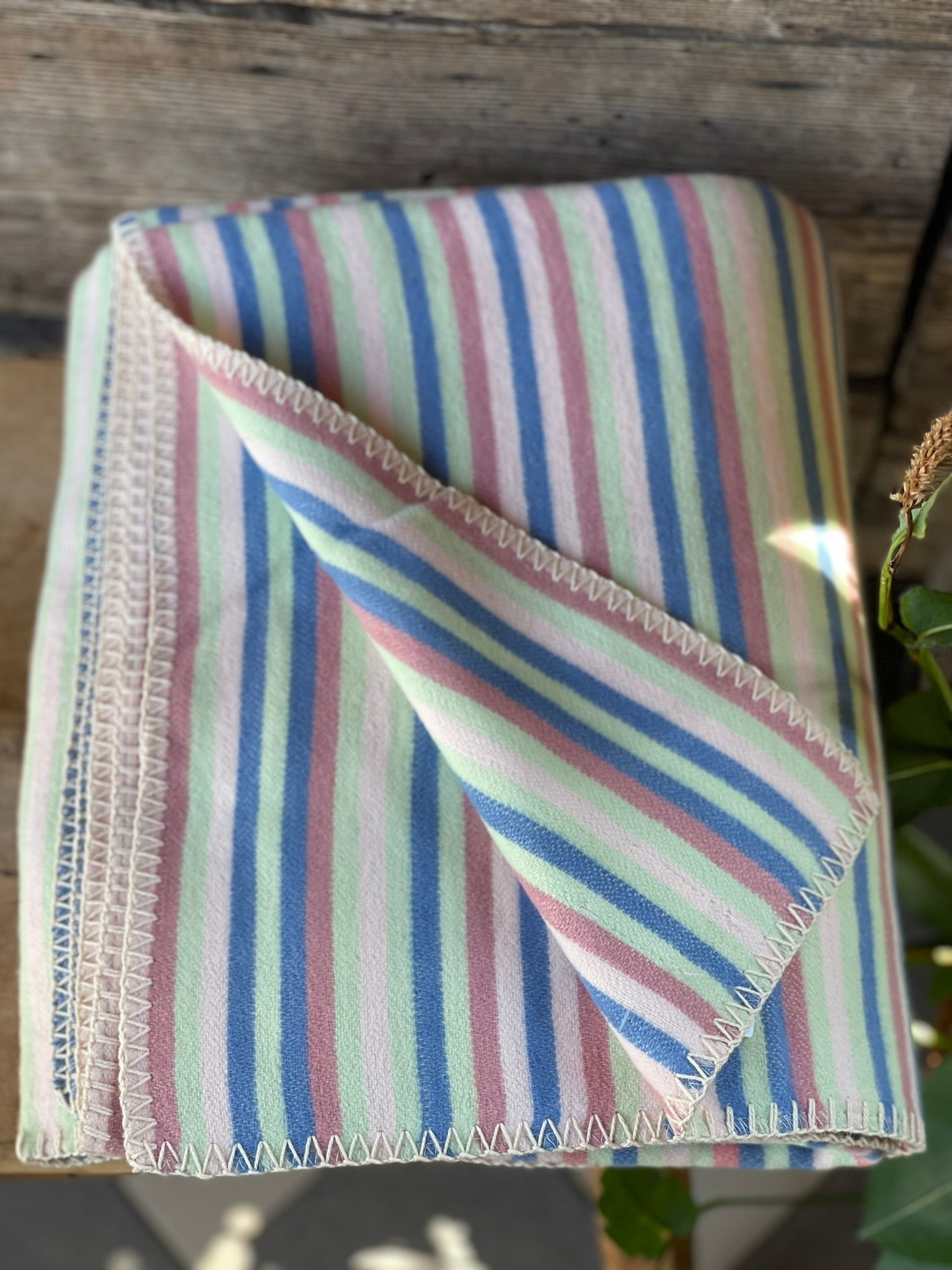Piparmētru zaļa/zila/maigi rozā svītraina mīksta kokvilnas flaneļa sega/pleds/gultas pārklājs 140x205cm