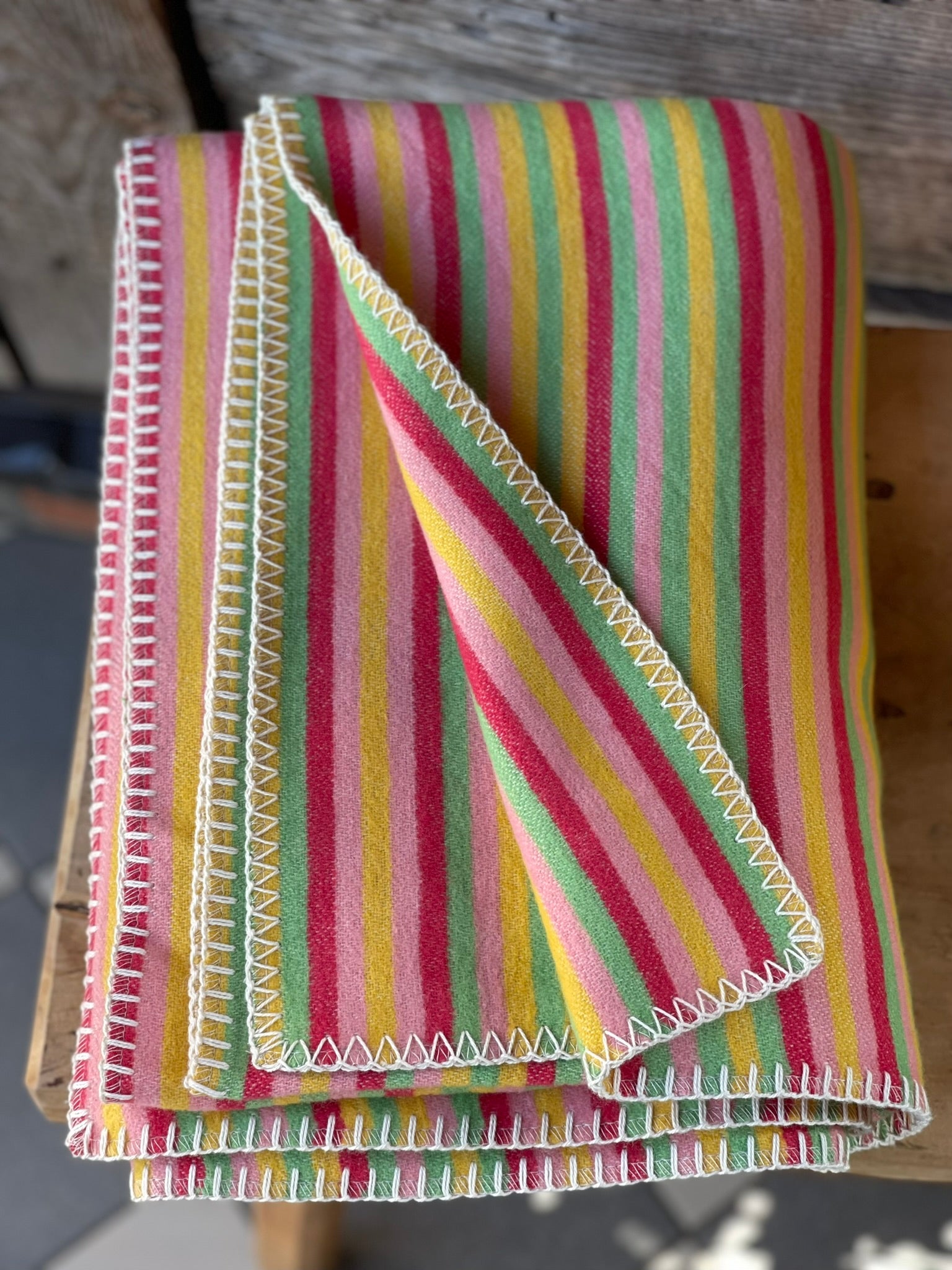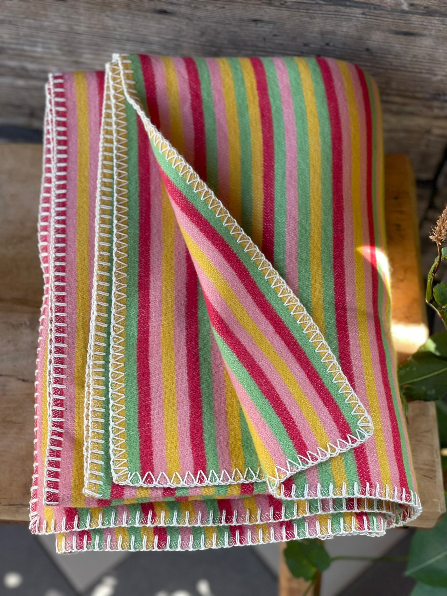Svītraina, ļoti mīksta kokvilnas sega/pleds/gultas pārklājs pārsteidzoši košos toņos.
