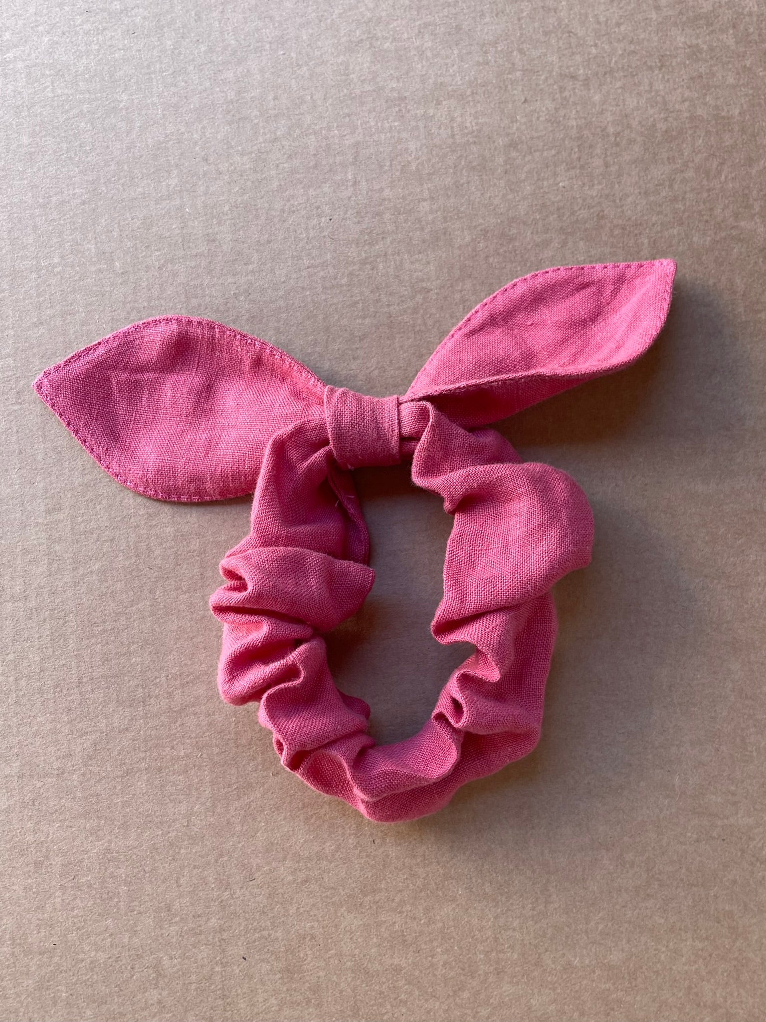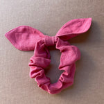 Lina auduma matu gumija - scrunchie - ar dekoratīvu banti Zemeņu rozā tonis M