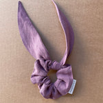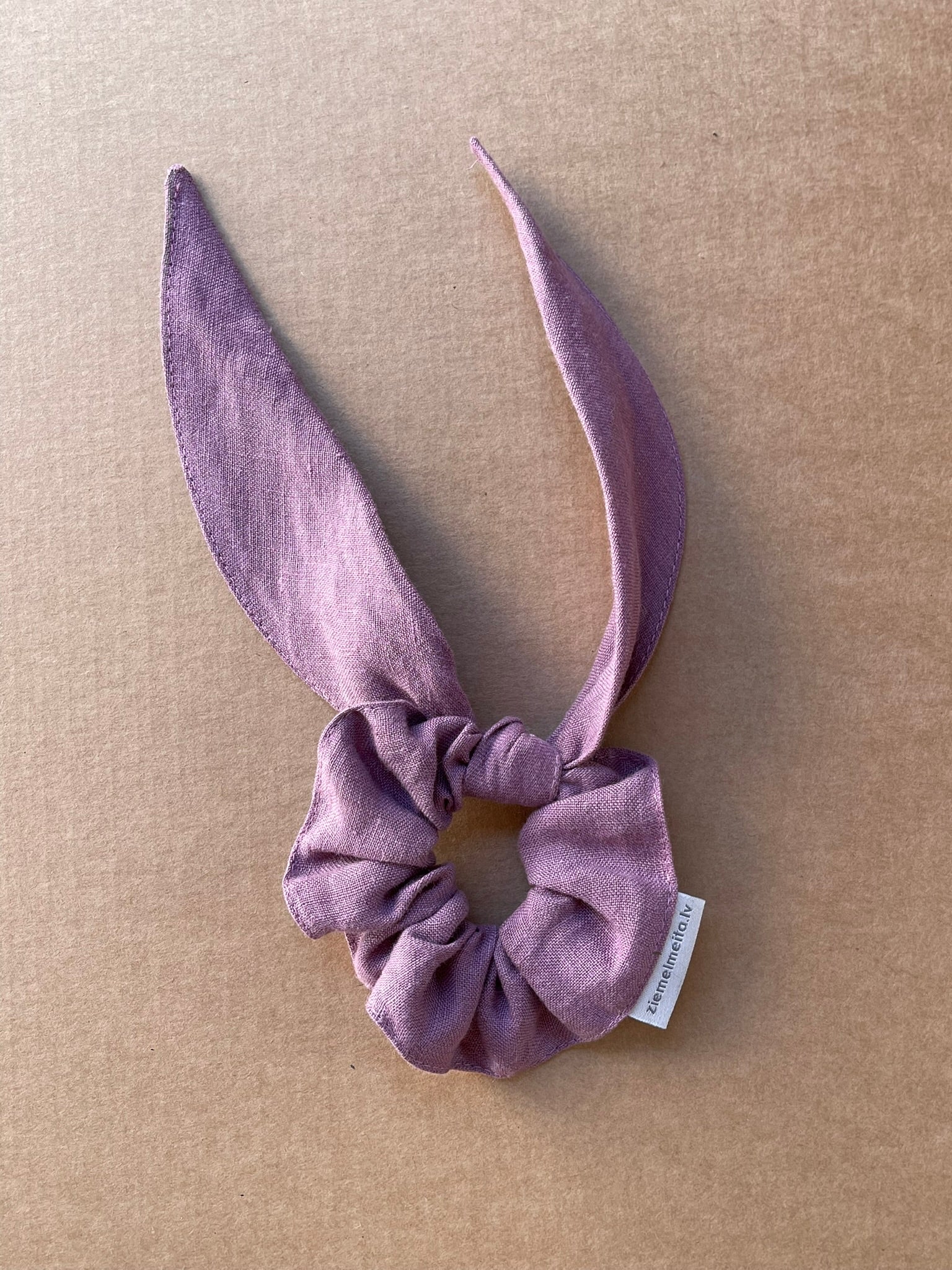 Lina auduma matu gumija- scrunchie ar garām ''ļipiņām'' Lavandu violets tonis