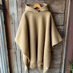 Karameļi brūna toņa indiāņu piegriezuma garais aitas vilnas pončo ar kapuci un bārkstīm