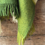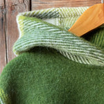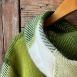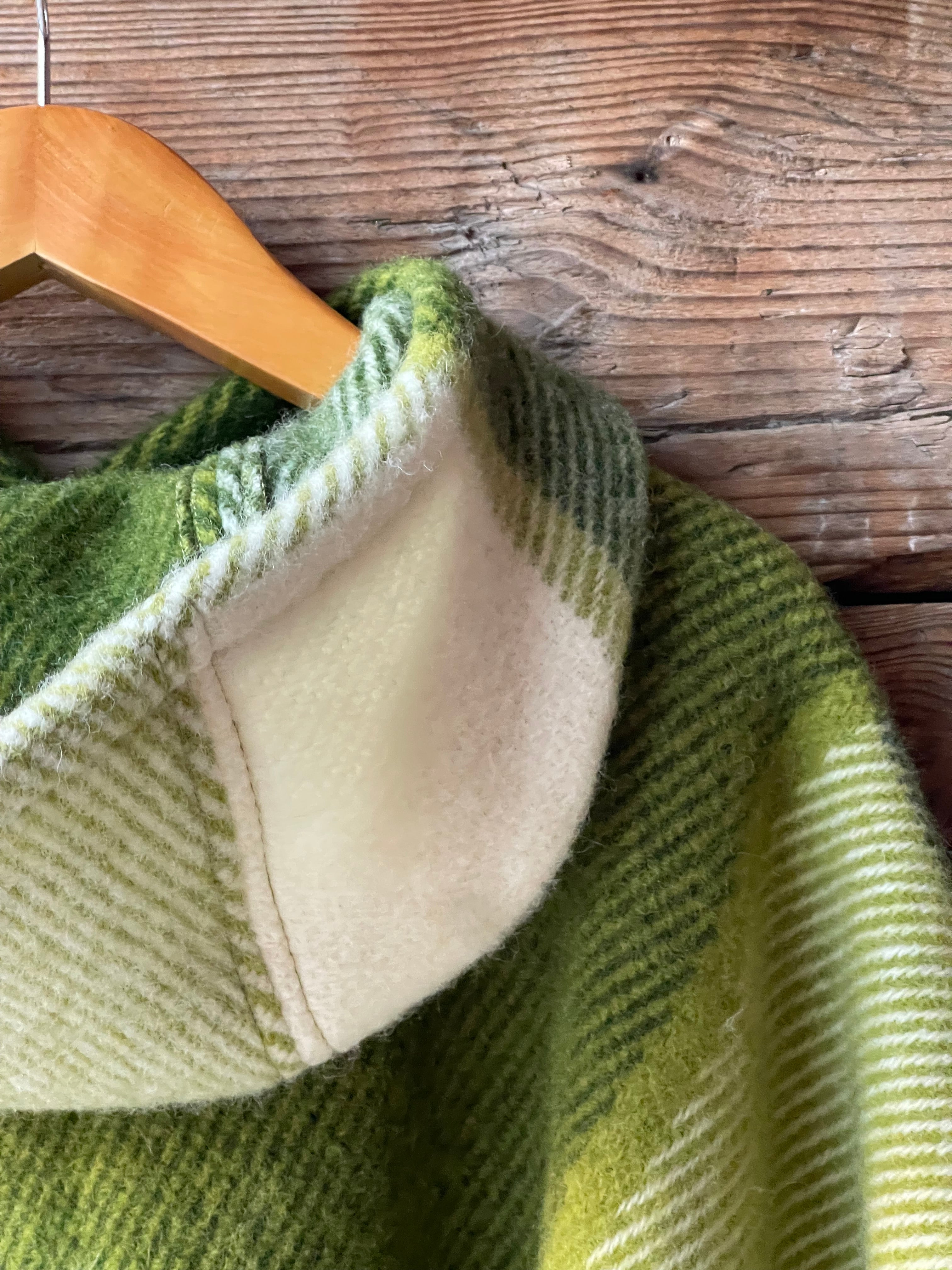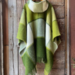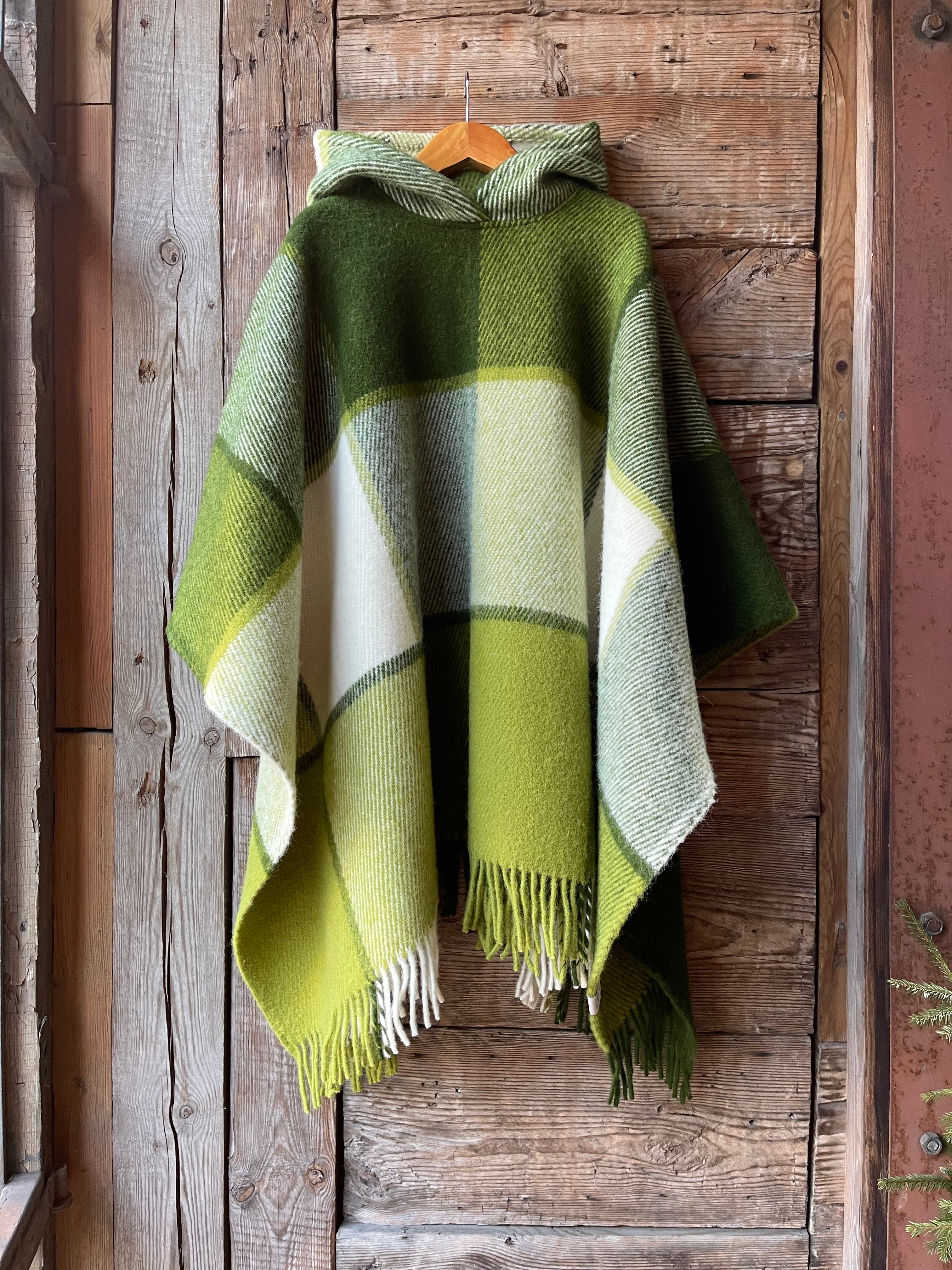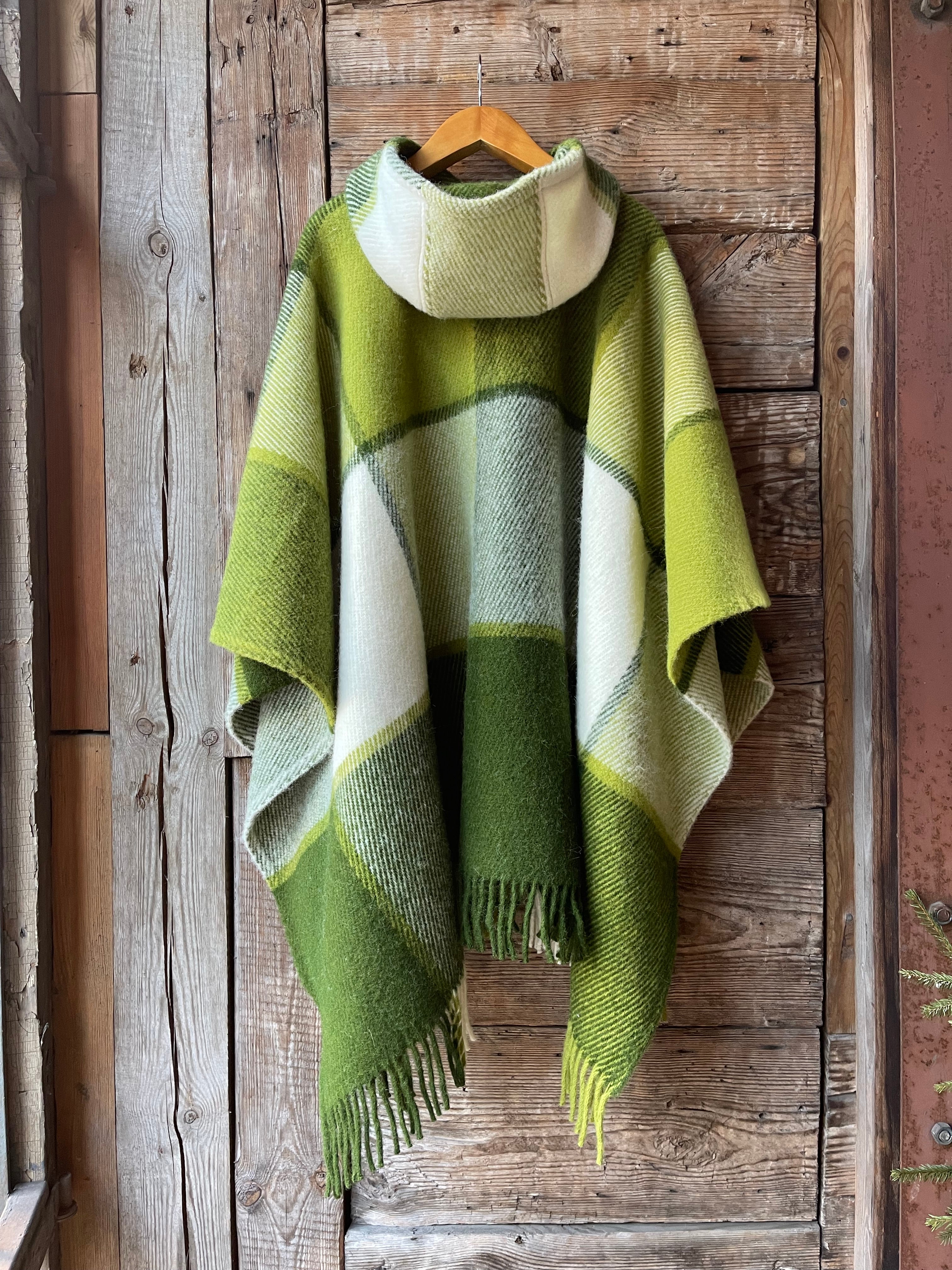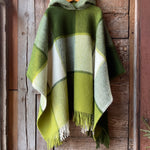Zaļš/balts lieli rūtains indiāņu piegriezuma garais aitas vilnas pončo ar kapuci un bārkstīm