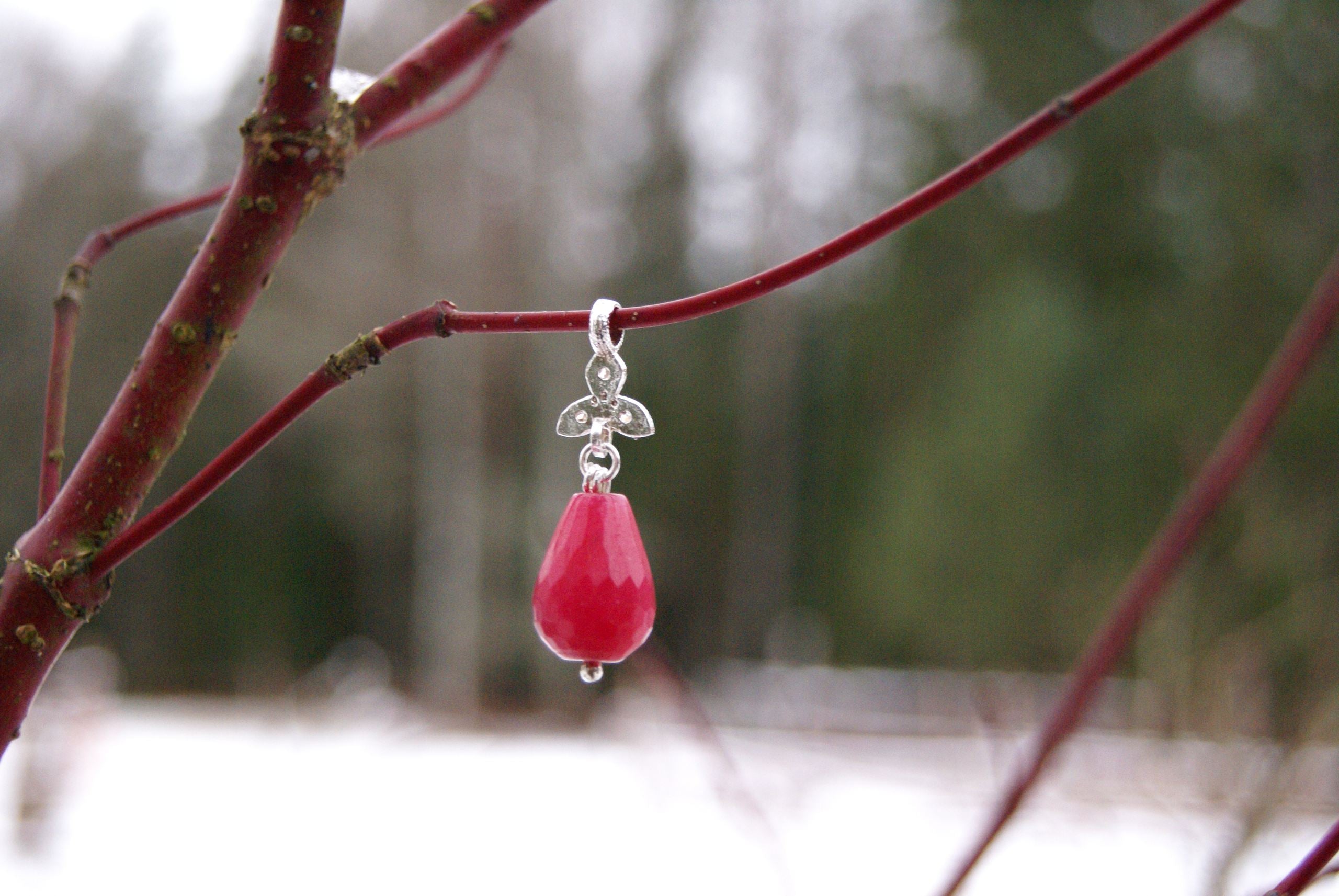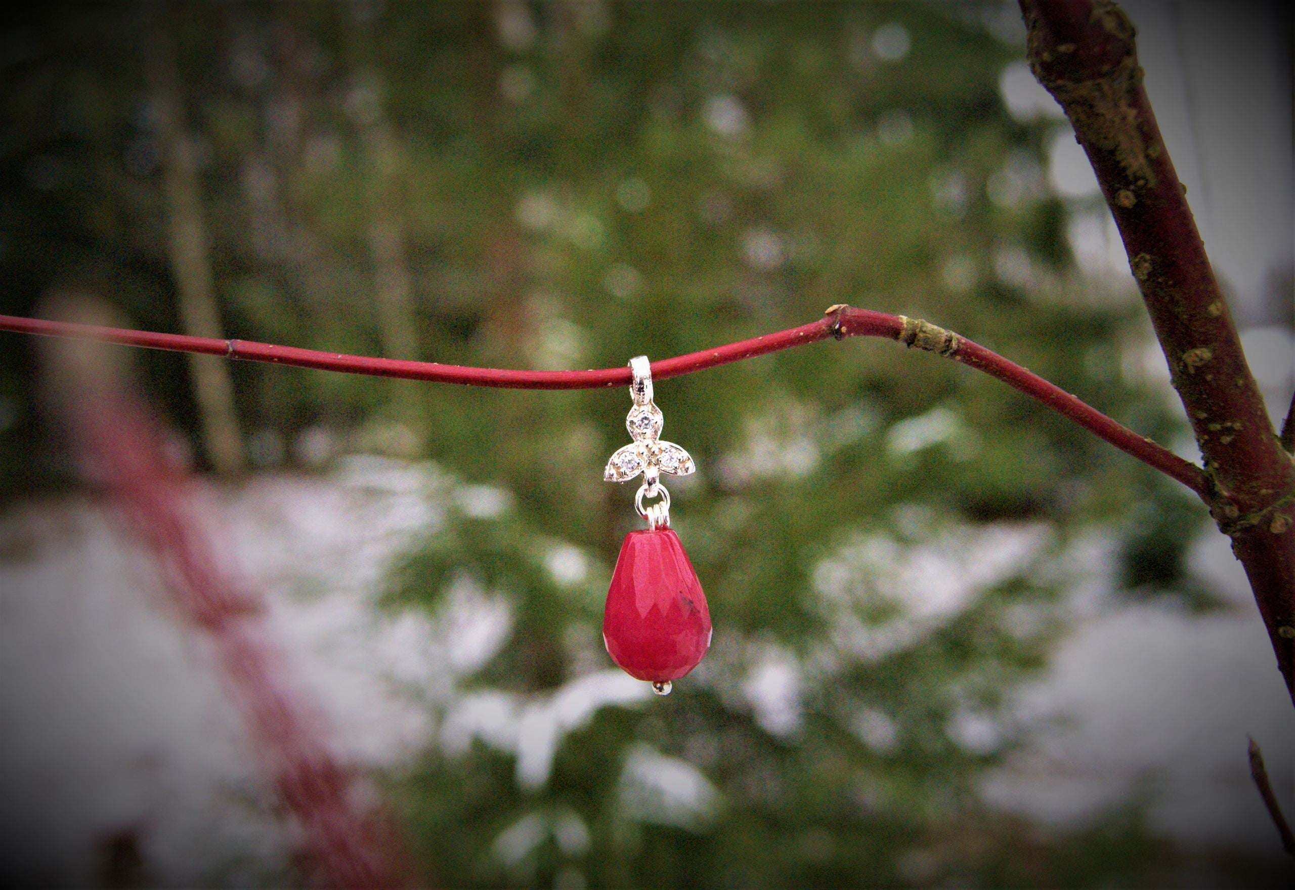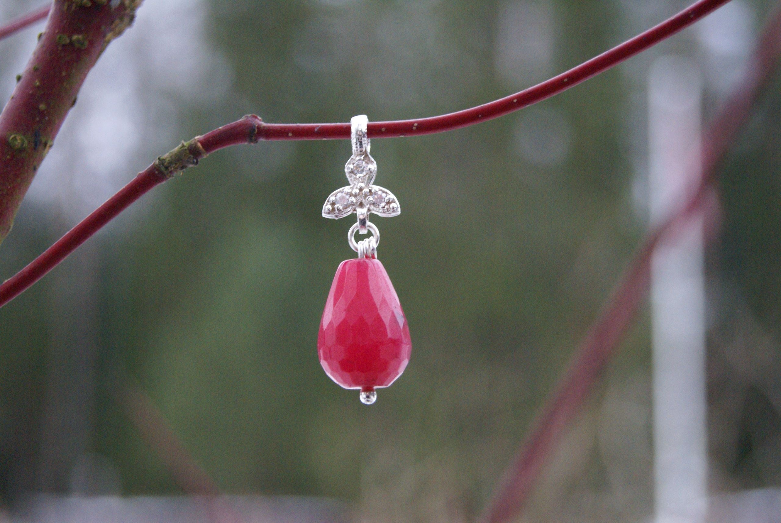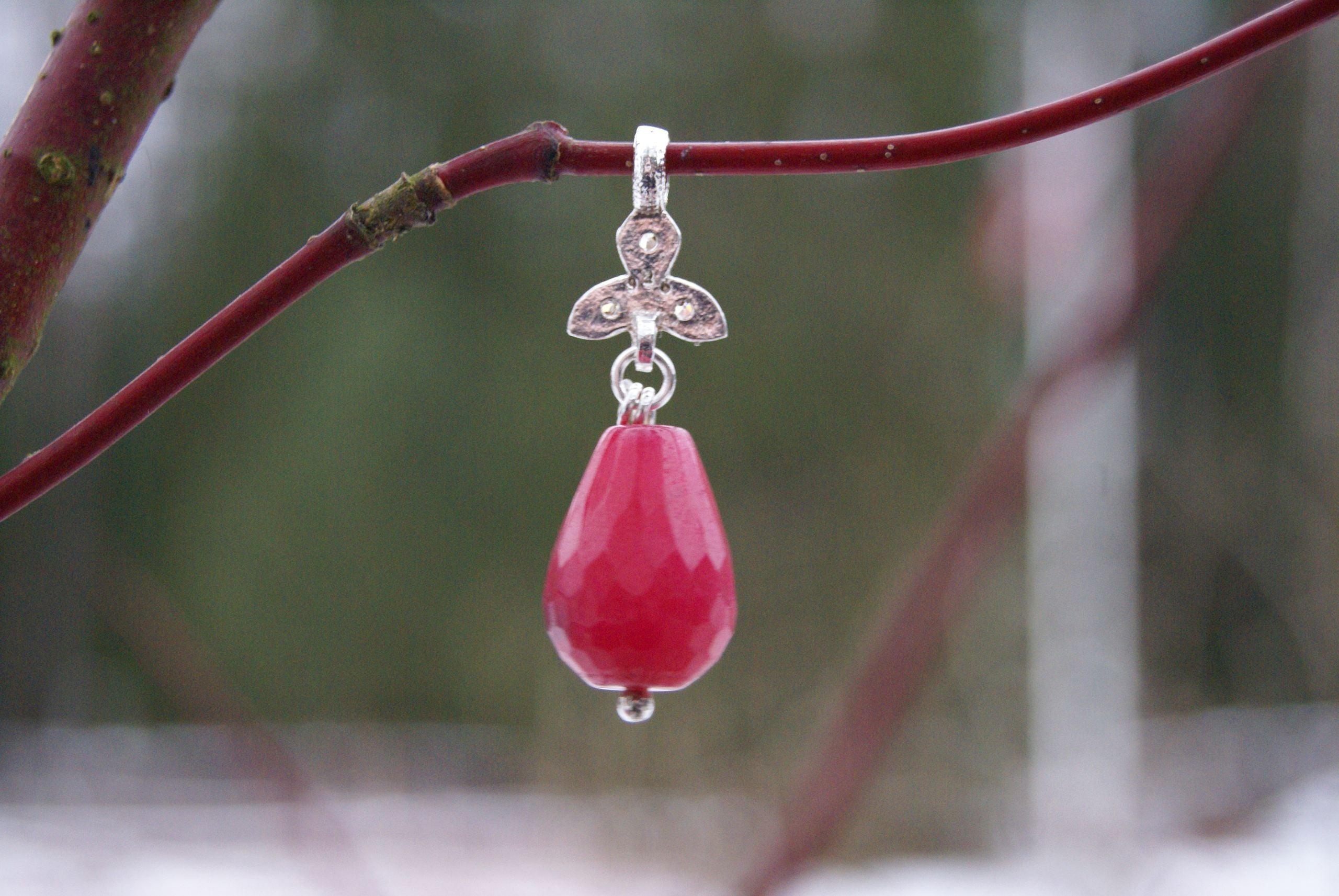 Sudraba piekariņš ar lāsītes formas sarkanu halcedonu un cirkonu dekoru (prove-925).