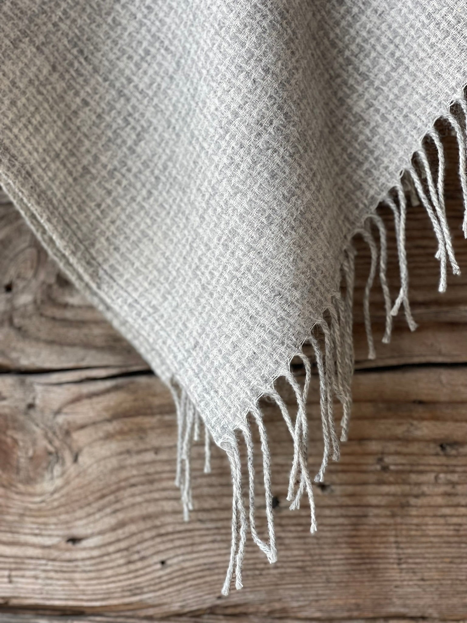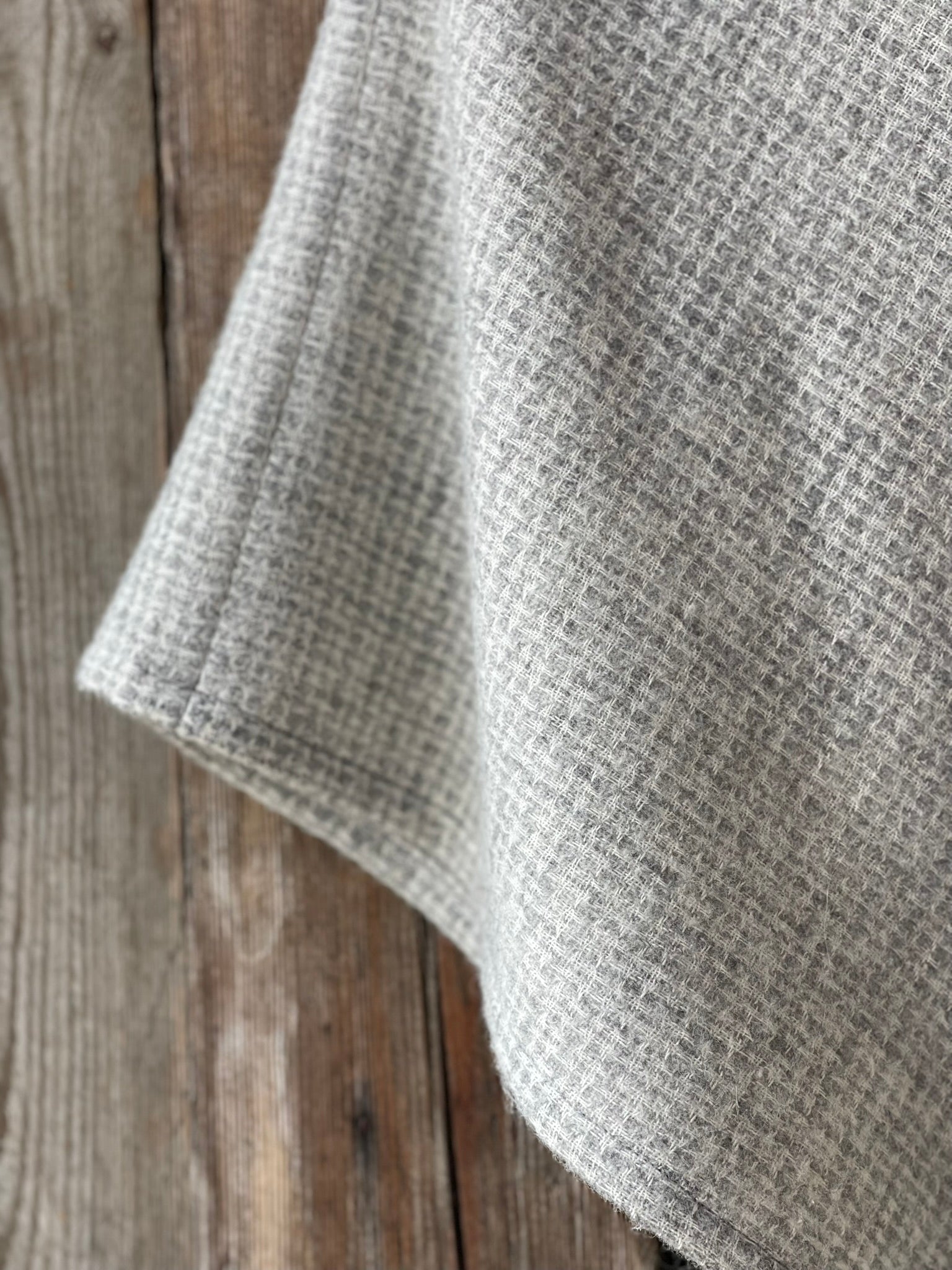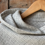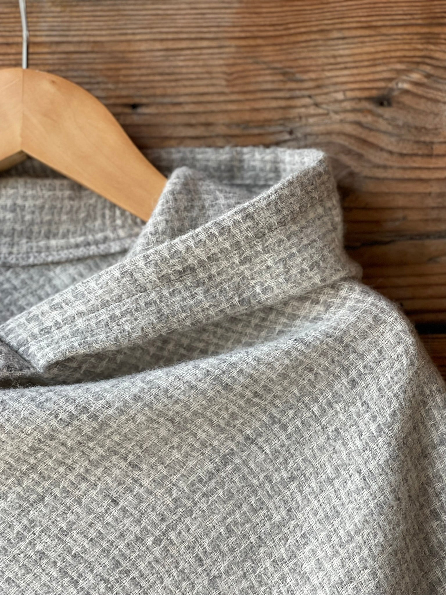 Gaiši pelēka toņa aitas vilnas/bambusa sķiedras pončo ar kapuci un bārkstīm