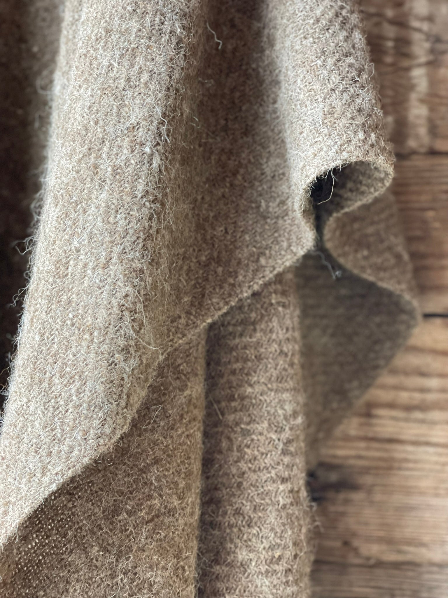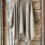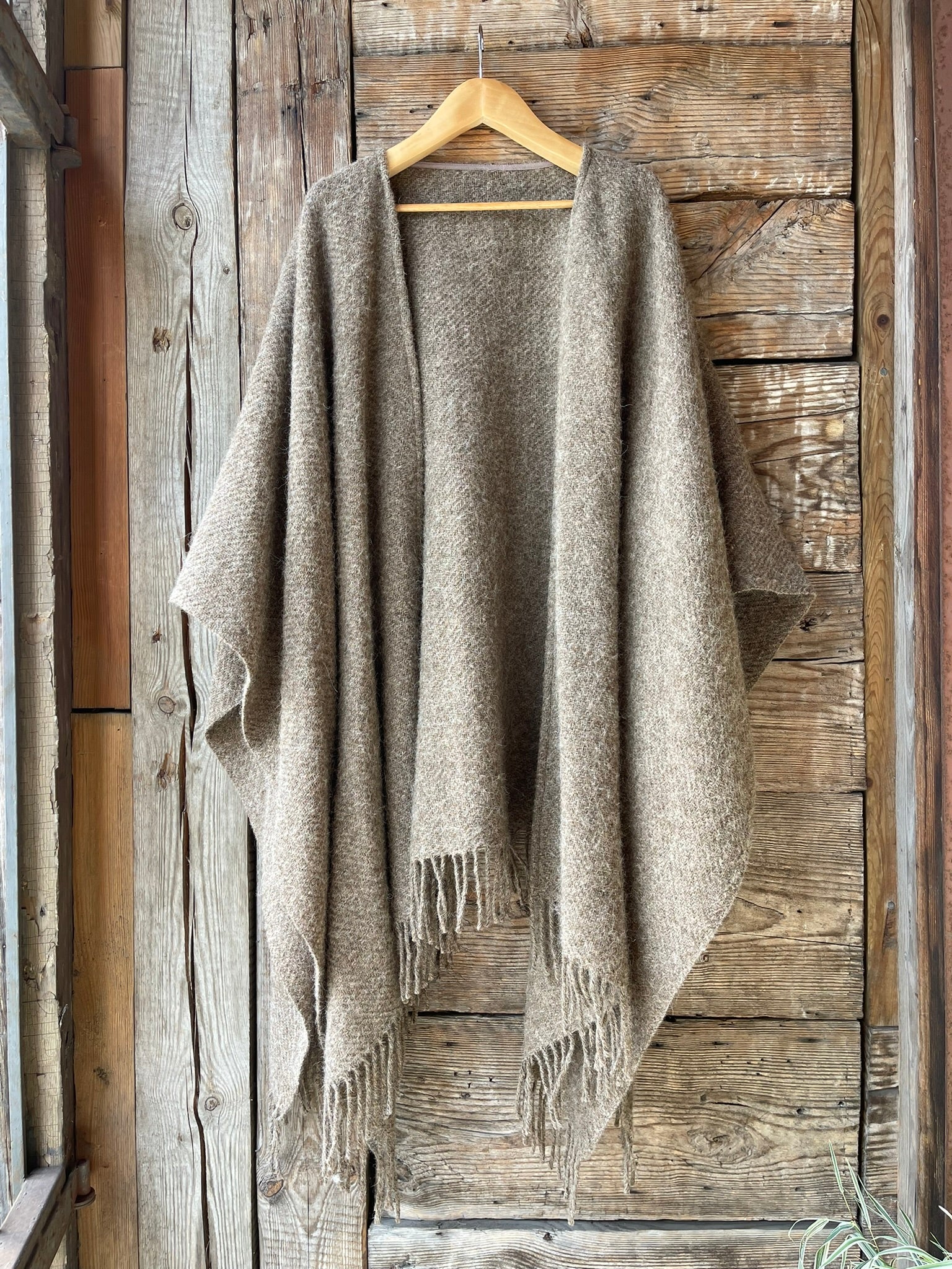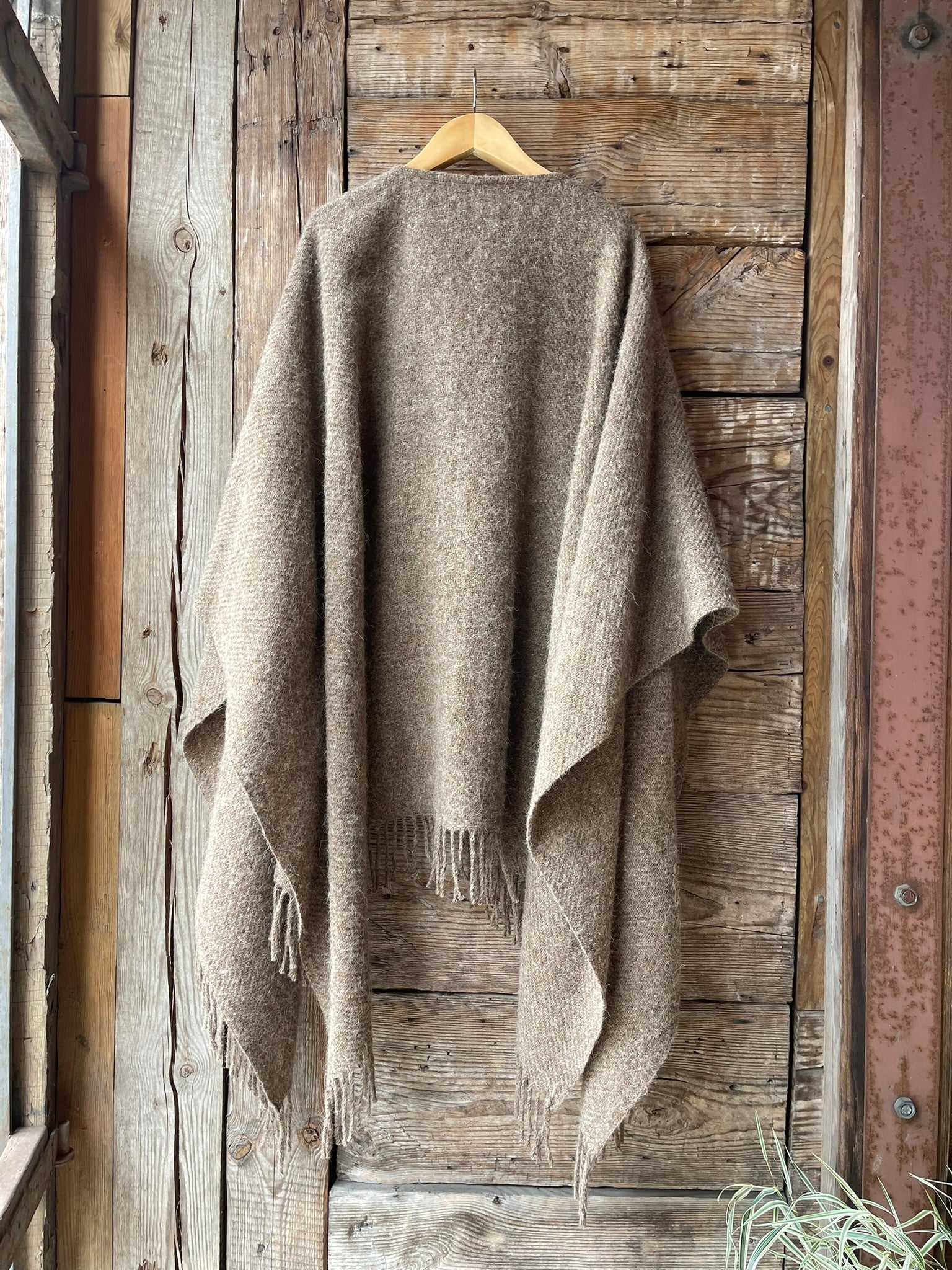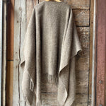Trifeļu brūna toņa pončo ar bārkstīm no aitas/alpakas/mohēras vilnas auduma, klasisks piegriezums