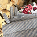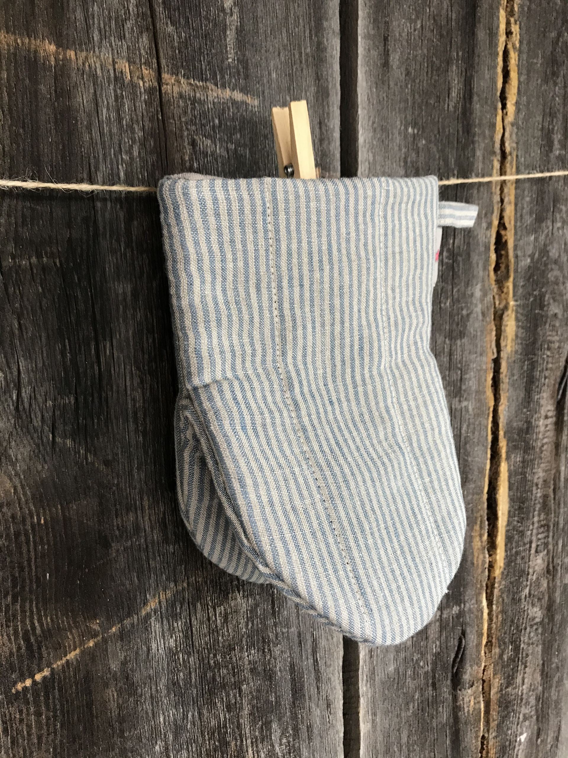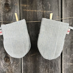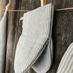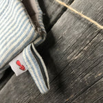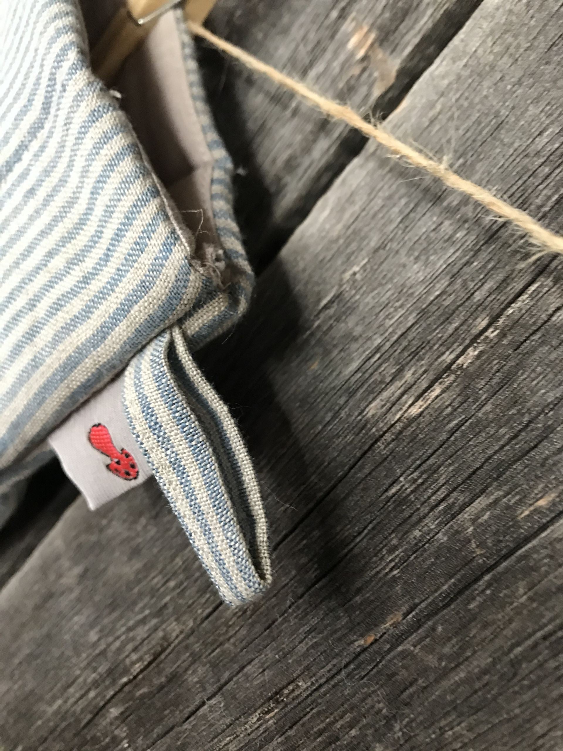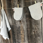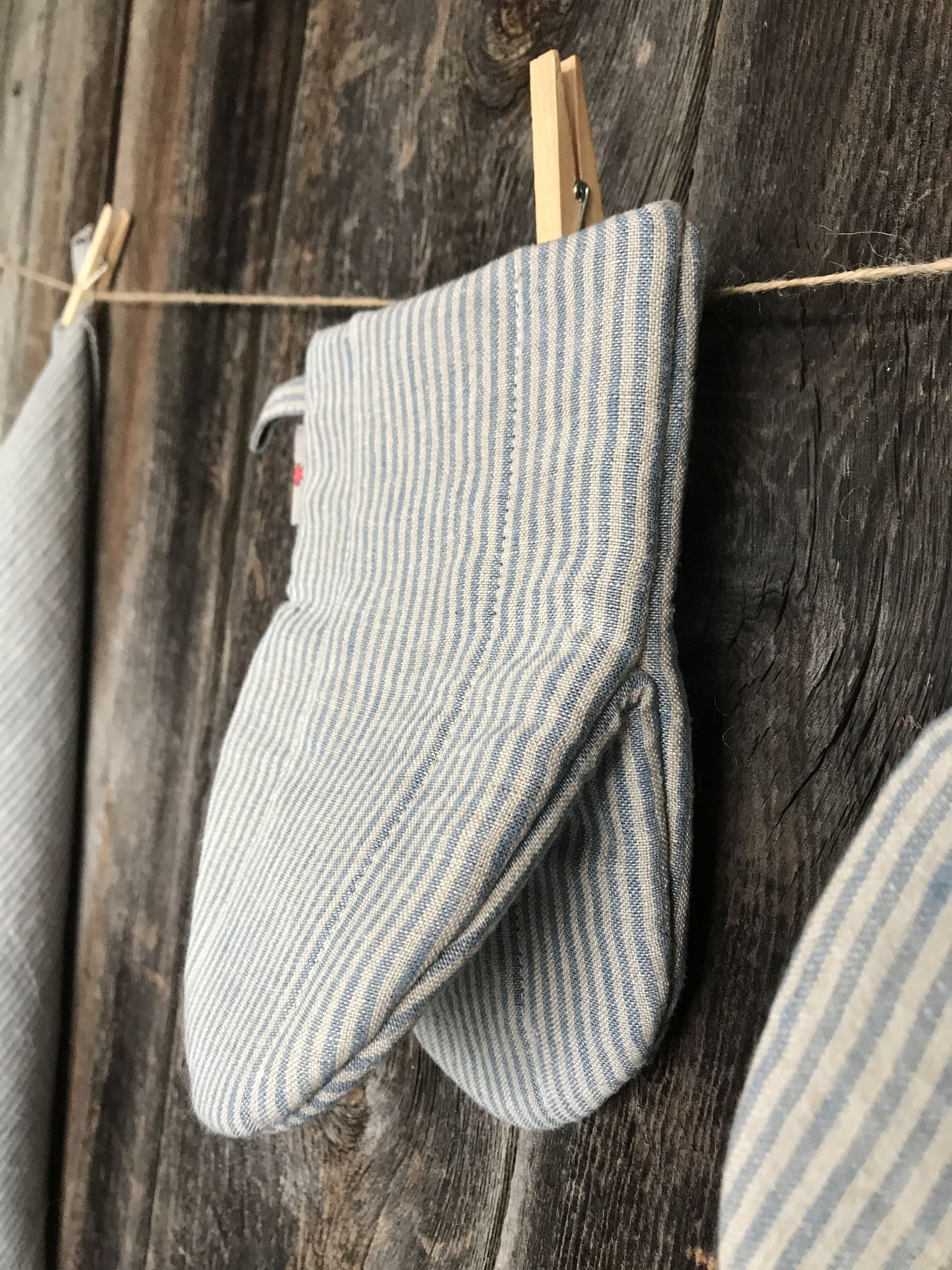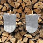 Divi dabīgi pelēki lina un vatelīna karstuma knābīši ar gaiši zilām svītriņām