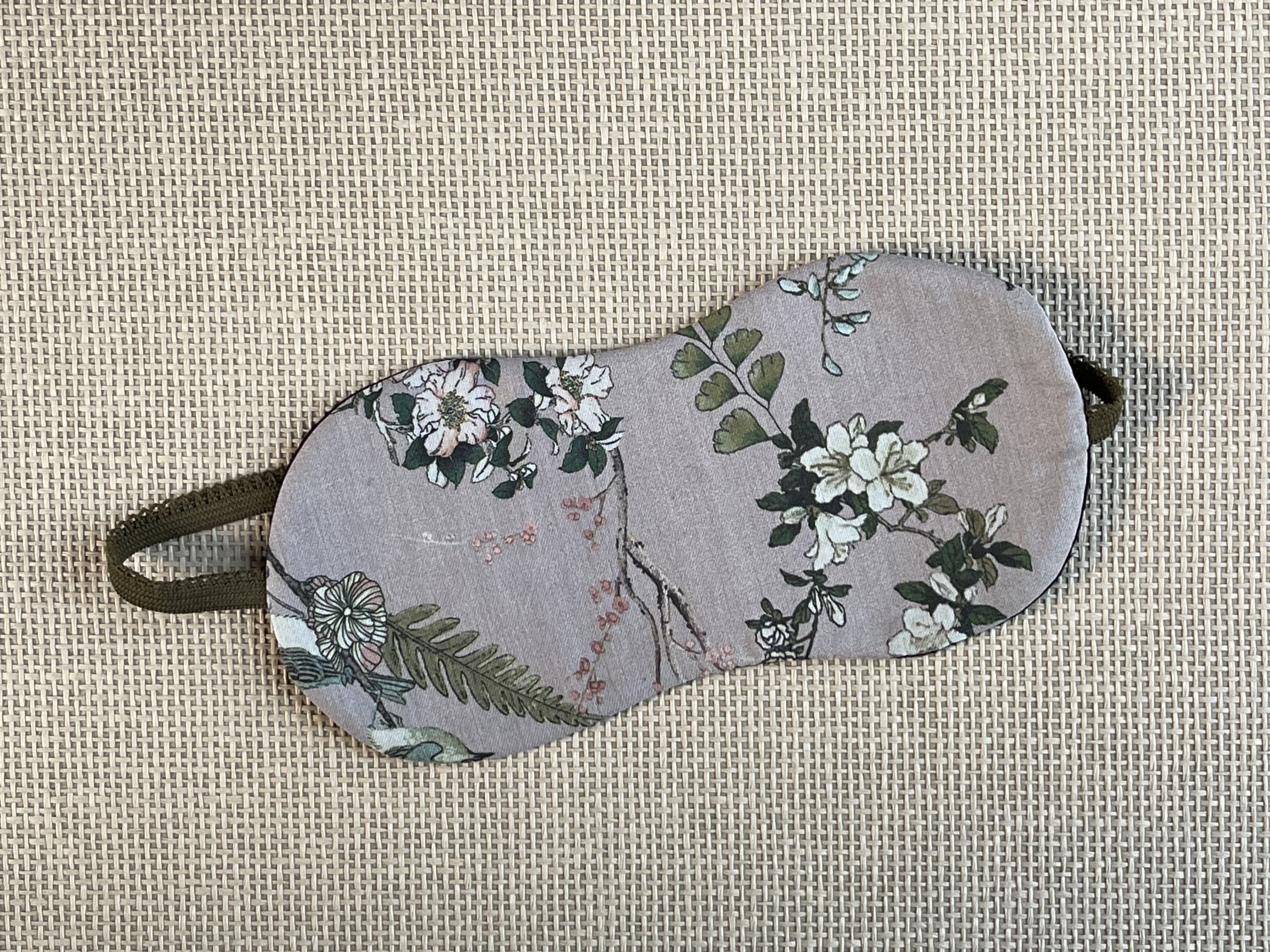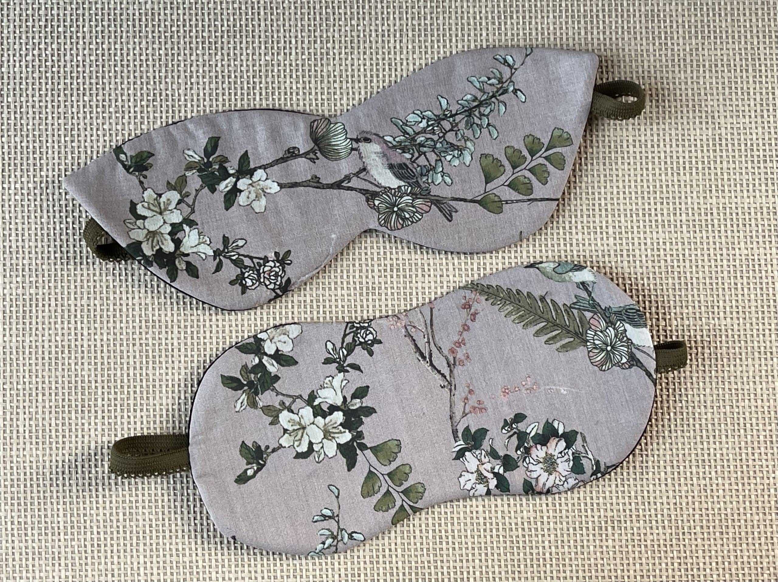 Maigi pūderrozā miega maska ar apaļiem stūrīšiem gulēšanai, ziedošiem kokiem un putniem