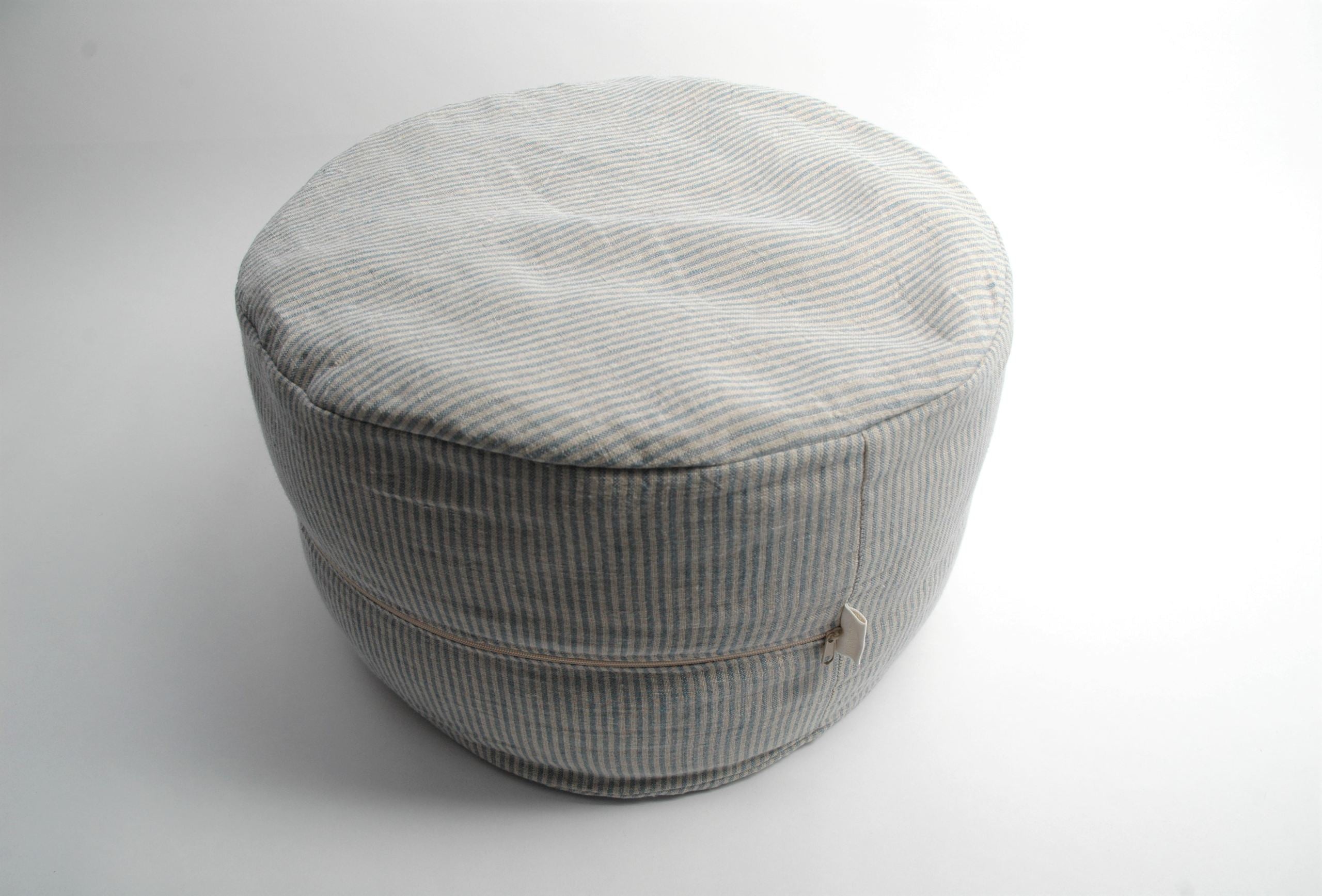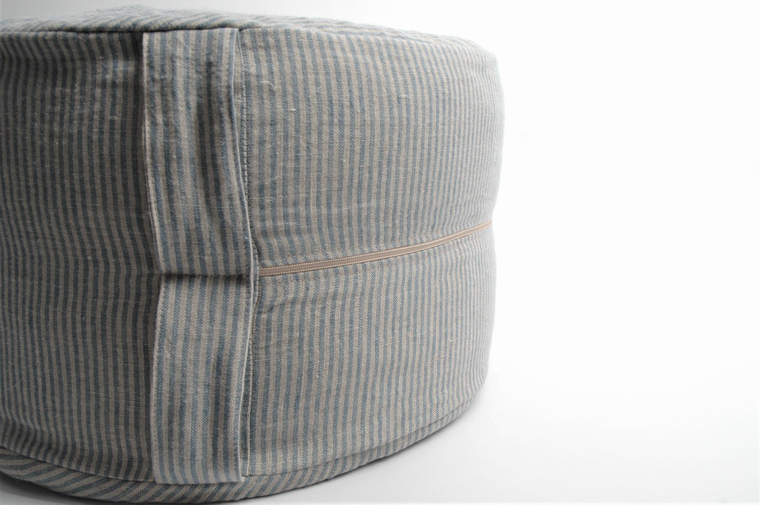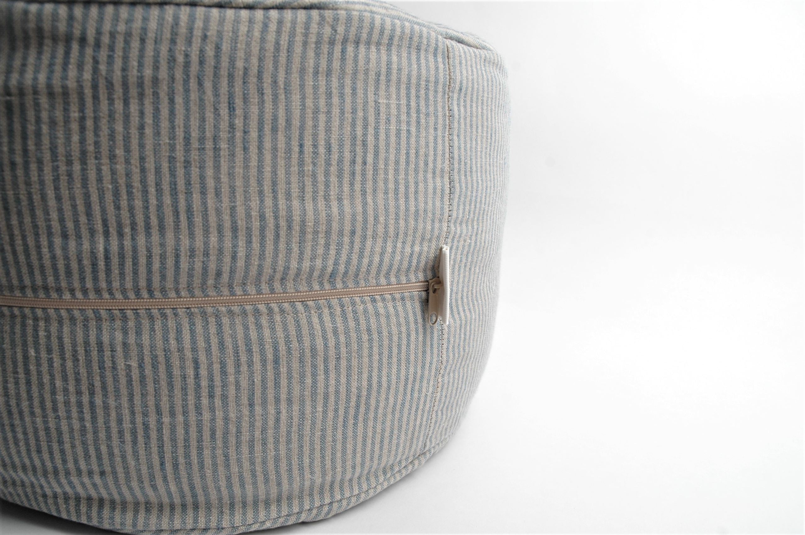 Gaiši zili svītrots, lina auduma zafu - meditācijas spilvens pildīts ar griķu sēnalām