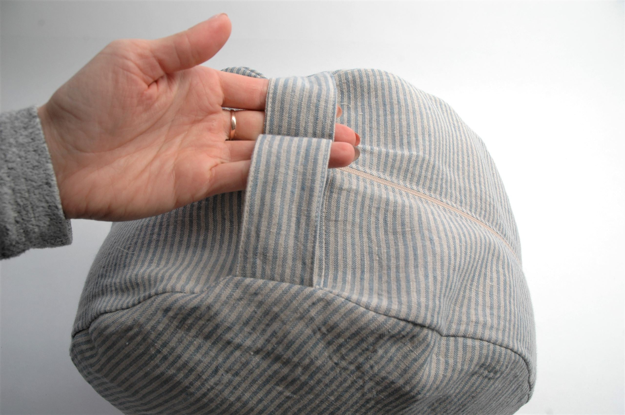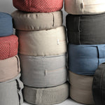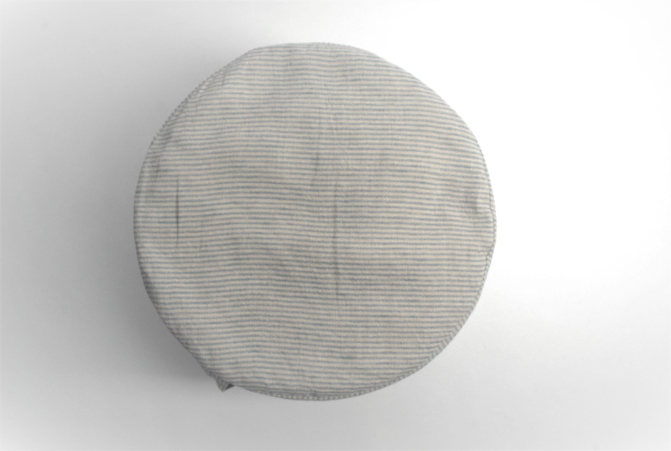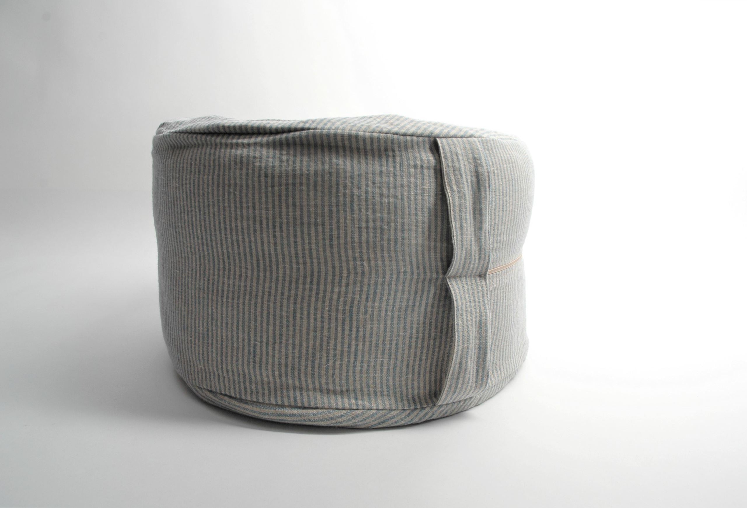 Gaiši zili svītrots, lina auduma zafu - meditācijas spilvens pildīts ar griķu sēnalām
