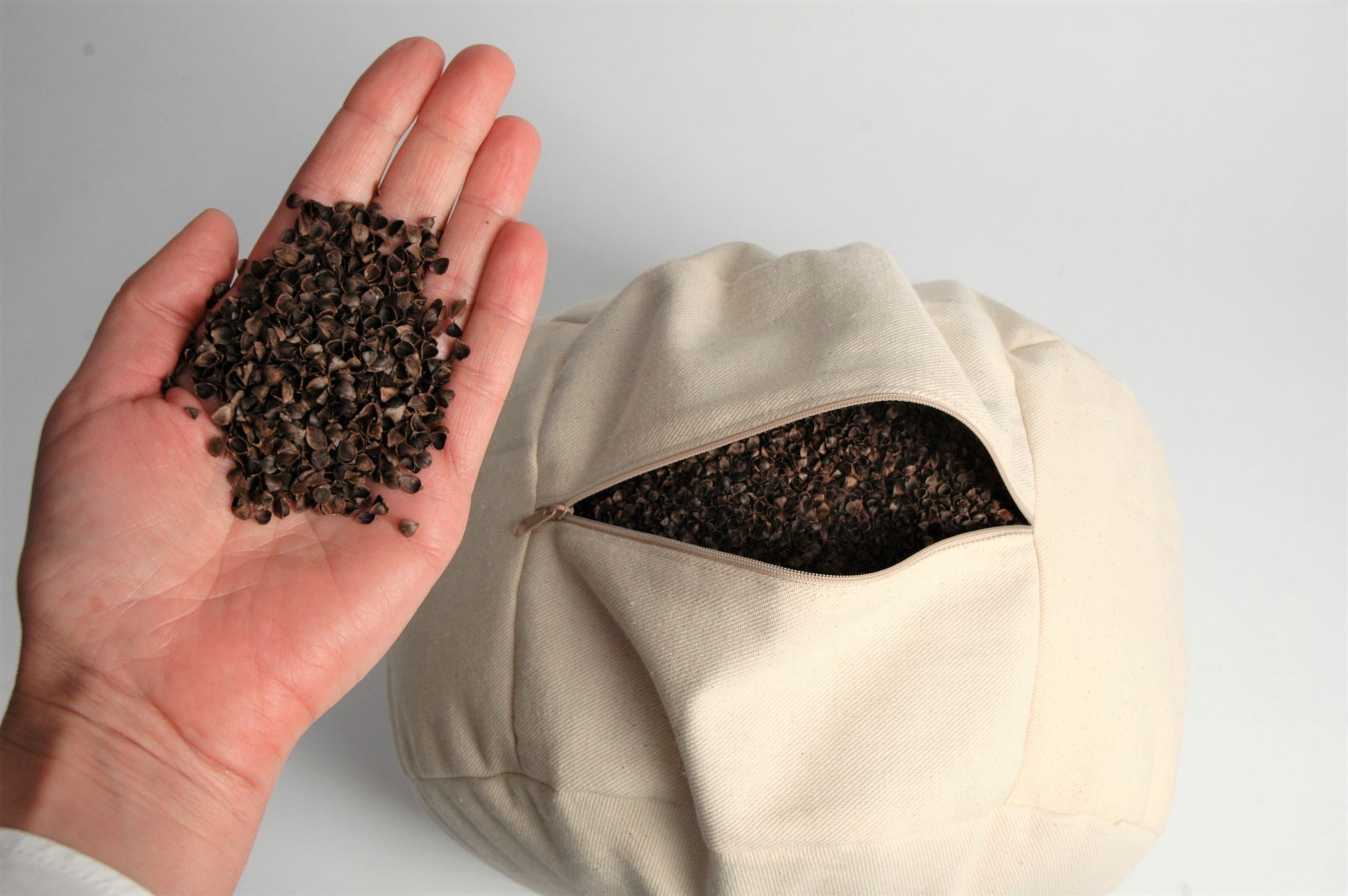 Materiāli: iekšējais spilvens - stingrs, blīvs nekrāsotas 100% kokvilnas audums, ārējais pārvalks - 100% lins, pildījums - griķu sēnalas