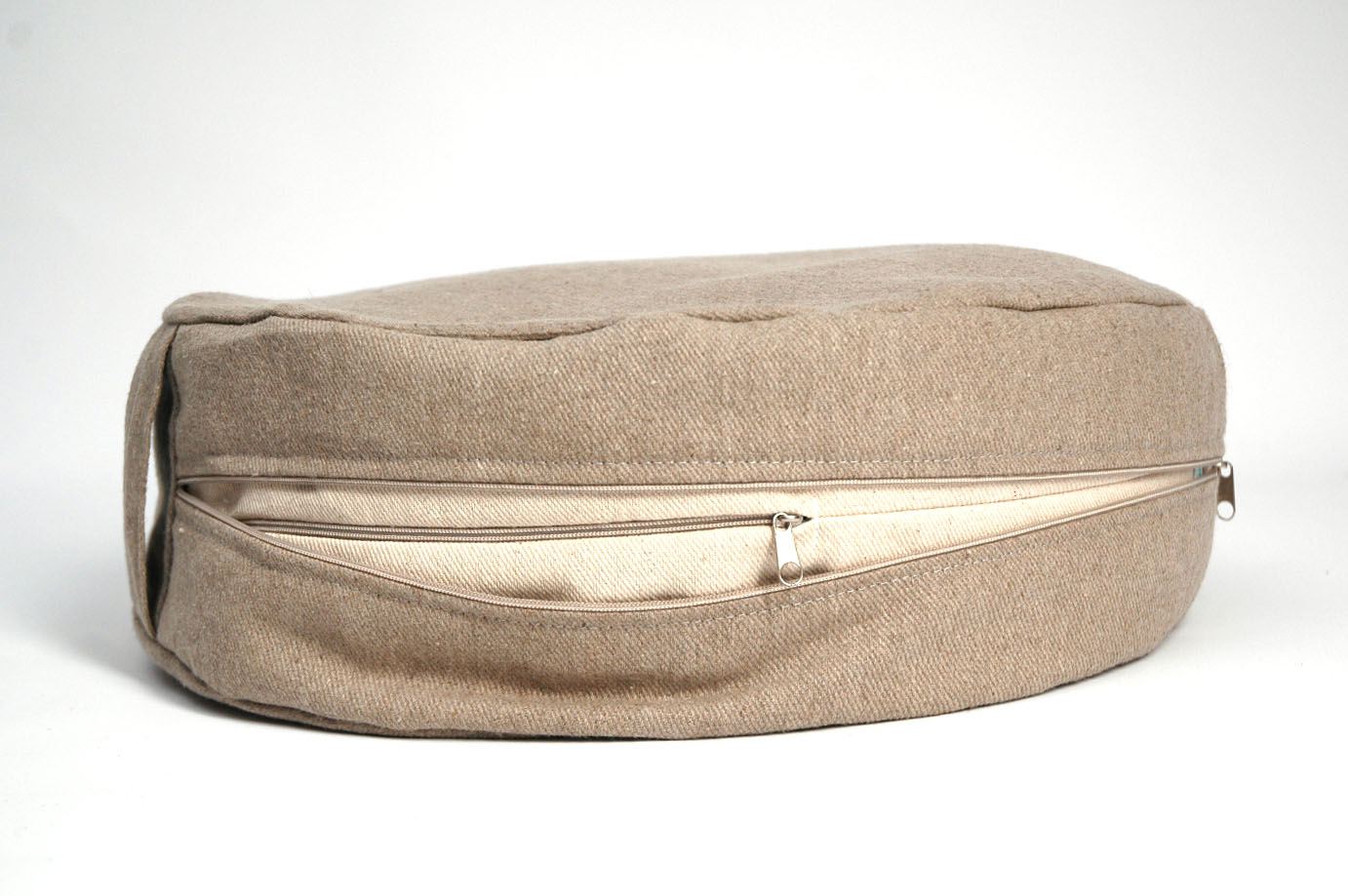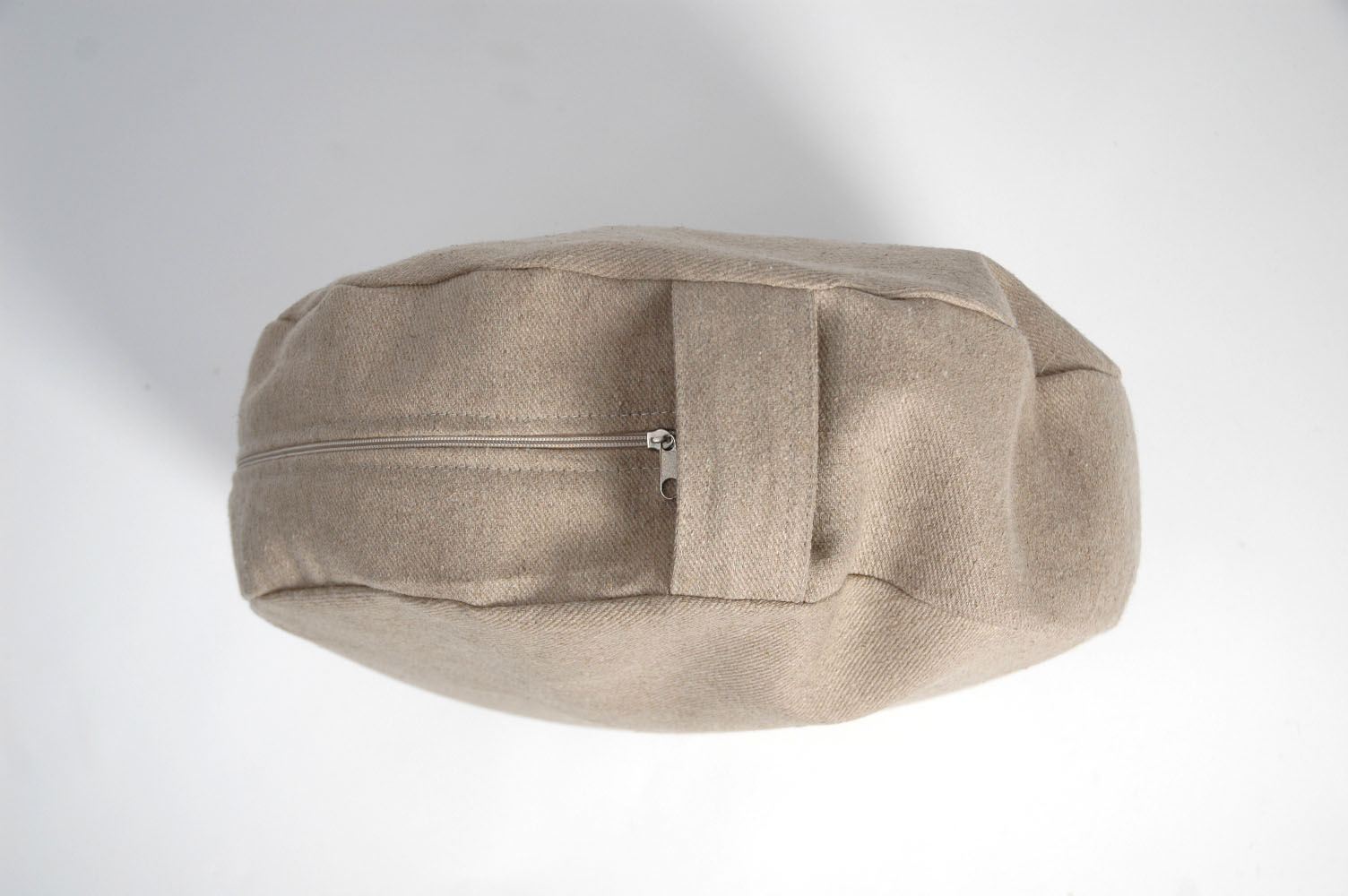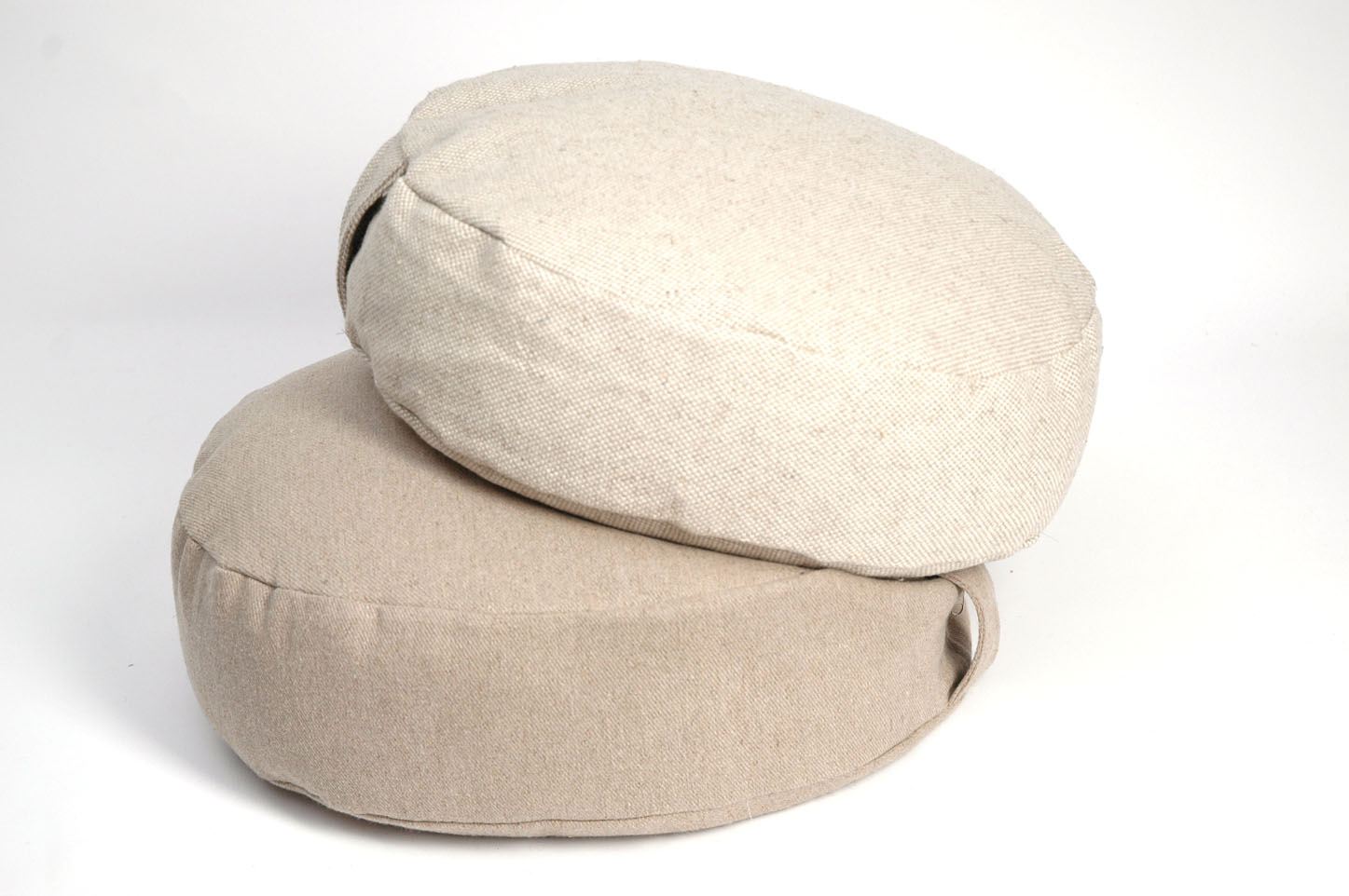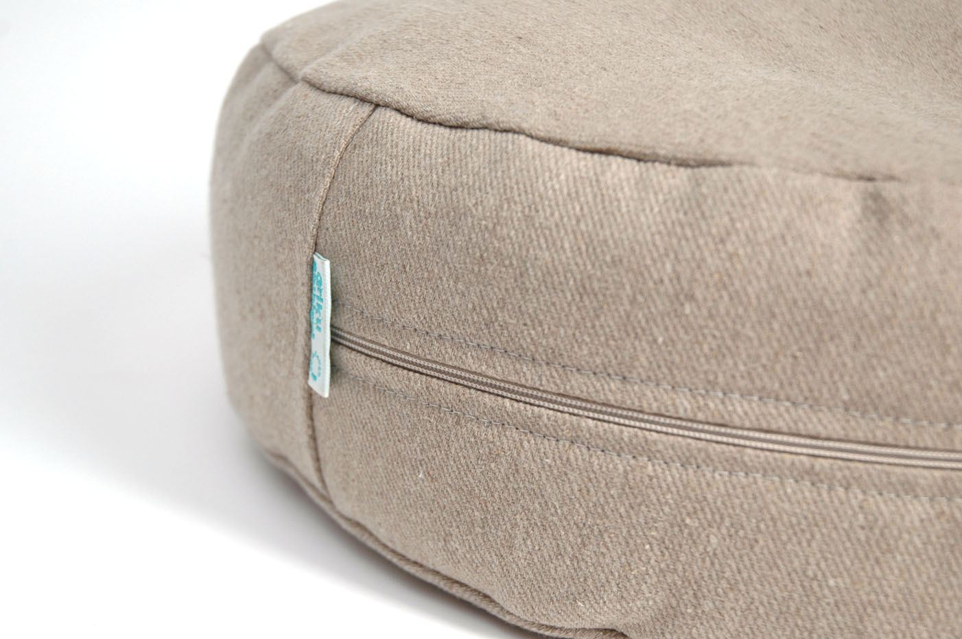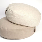 Nekrāsota, dabīgi pelēka toņa stingra lina auduma zafu - meditācijas spilvens pildīts ar griķu sēnalām