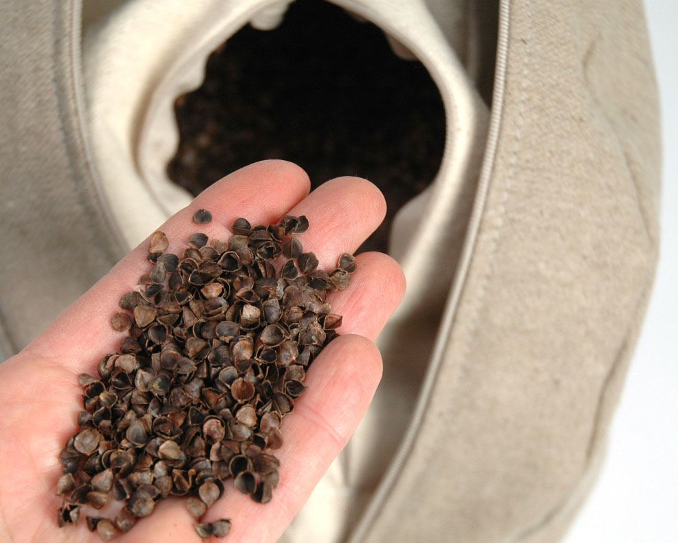 Materiāli: iekšējais spilvens - stingrs, blīvs nekrāsotas 100% kokvilnas audums, ārējais pārvalks - 100% lins, pildījums - griķu sēnalas