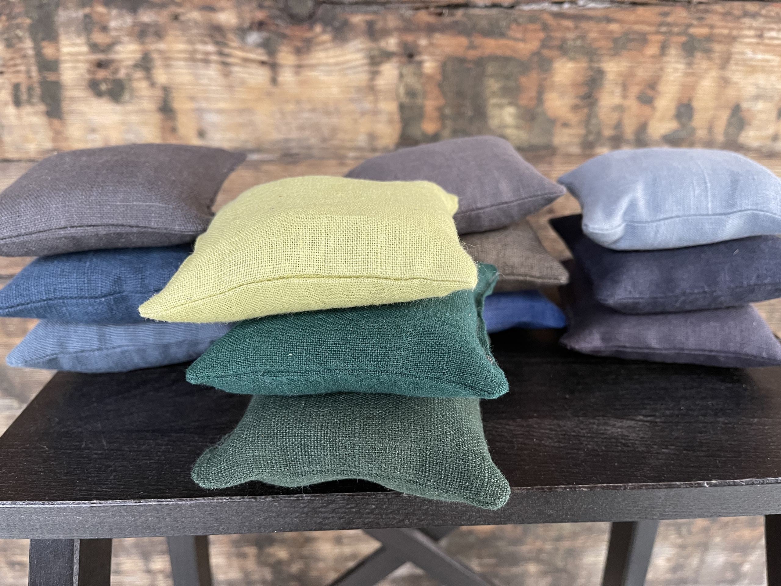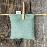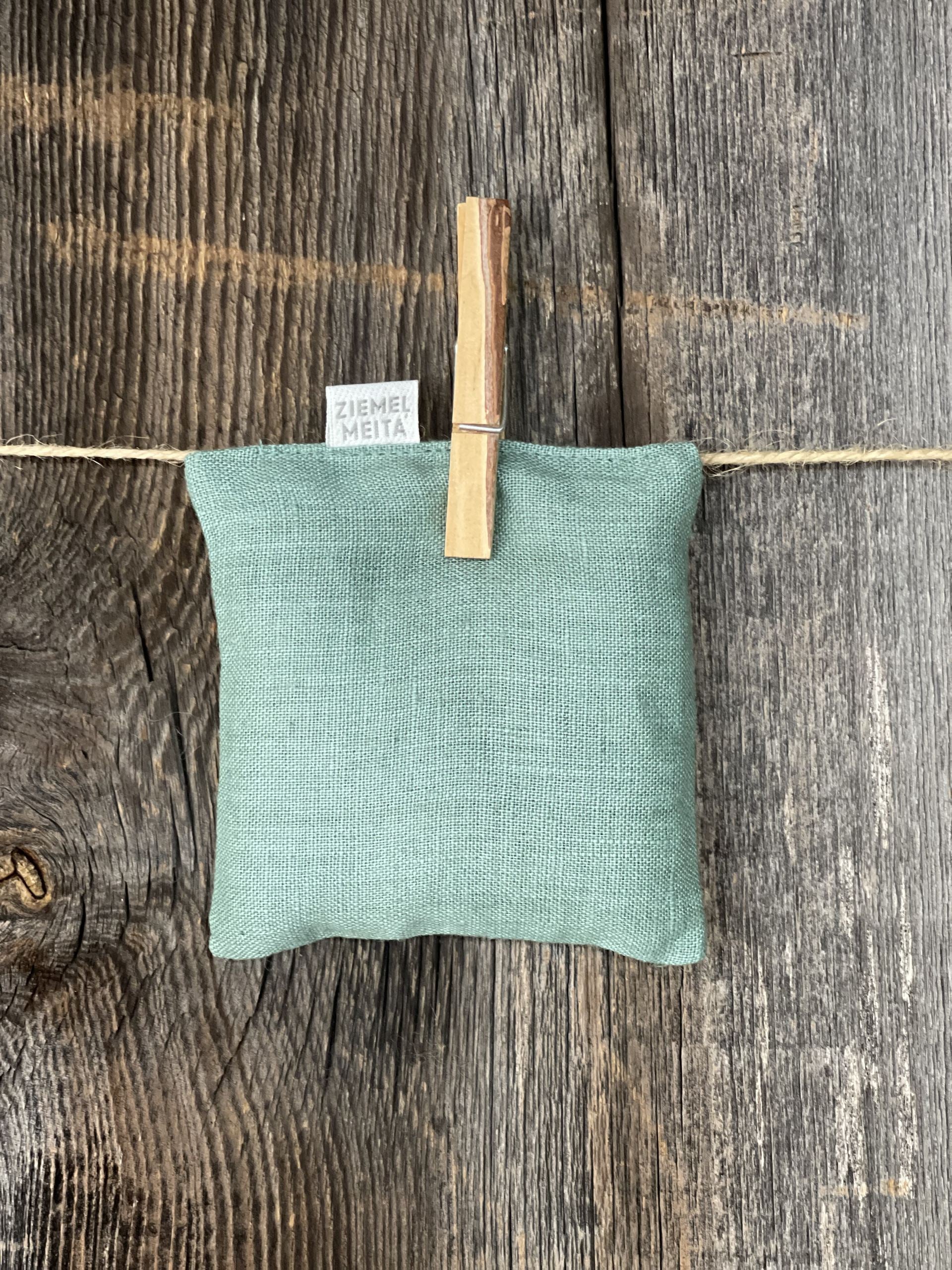 Lavandas spilventiņš, piparmētru zaļā lina spilvendrānā