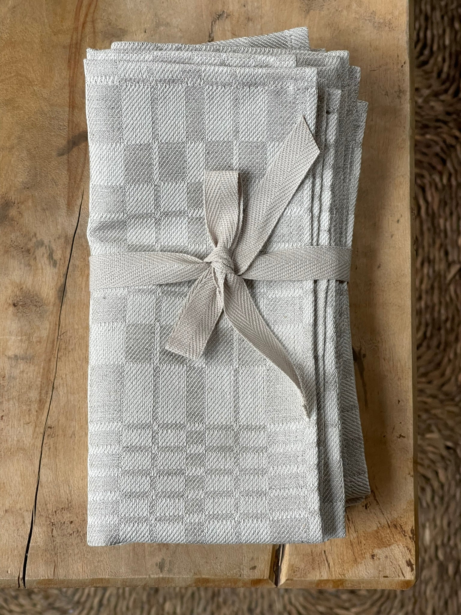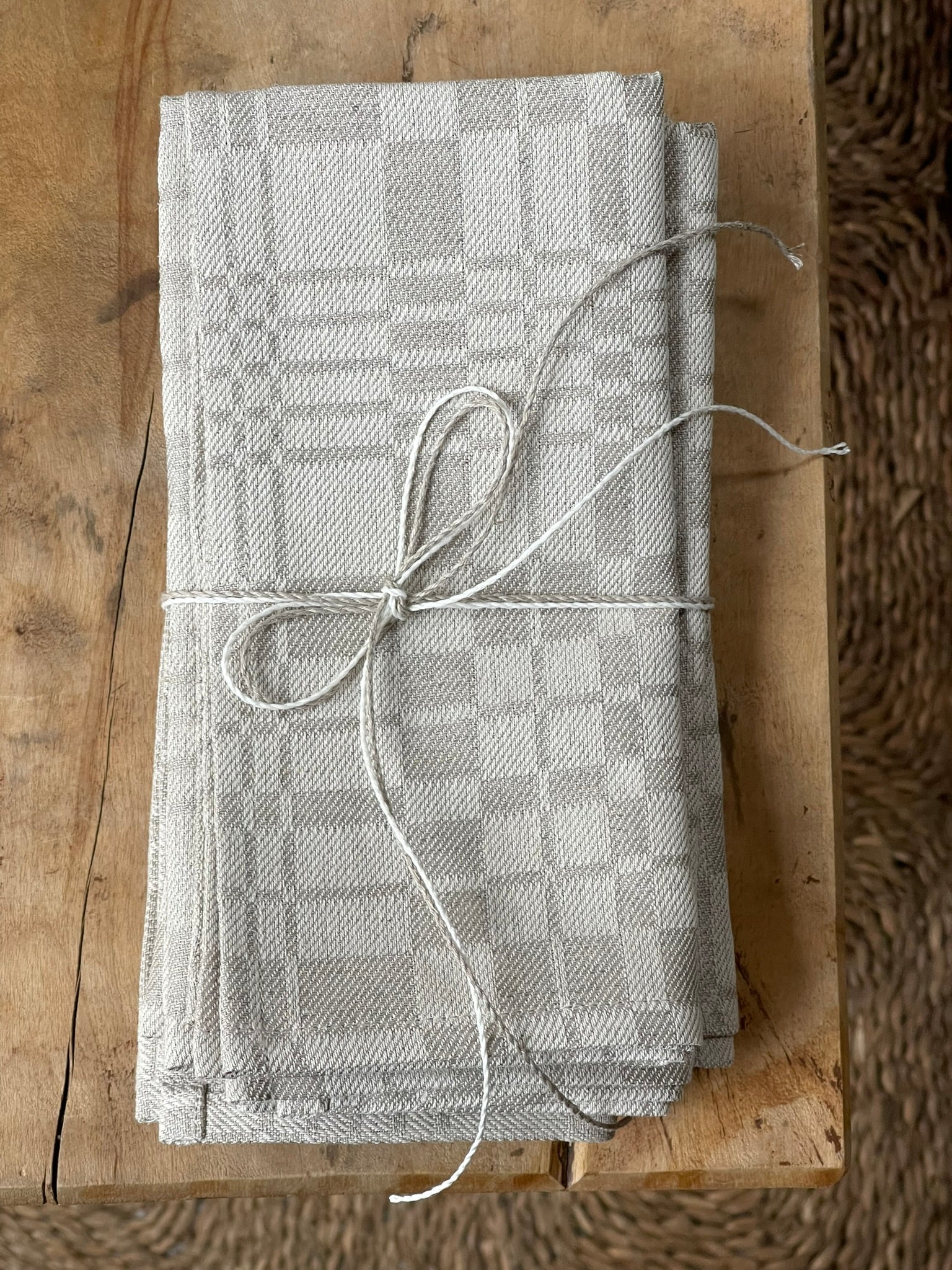 Dabīgi pelēka lina žakarda galda salvetes ar šaurām maliņām austas dreļļu rakstā, dažādi izmēri