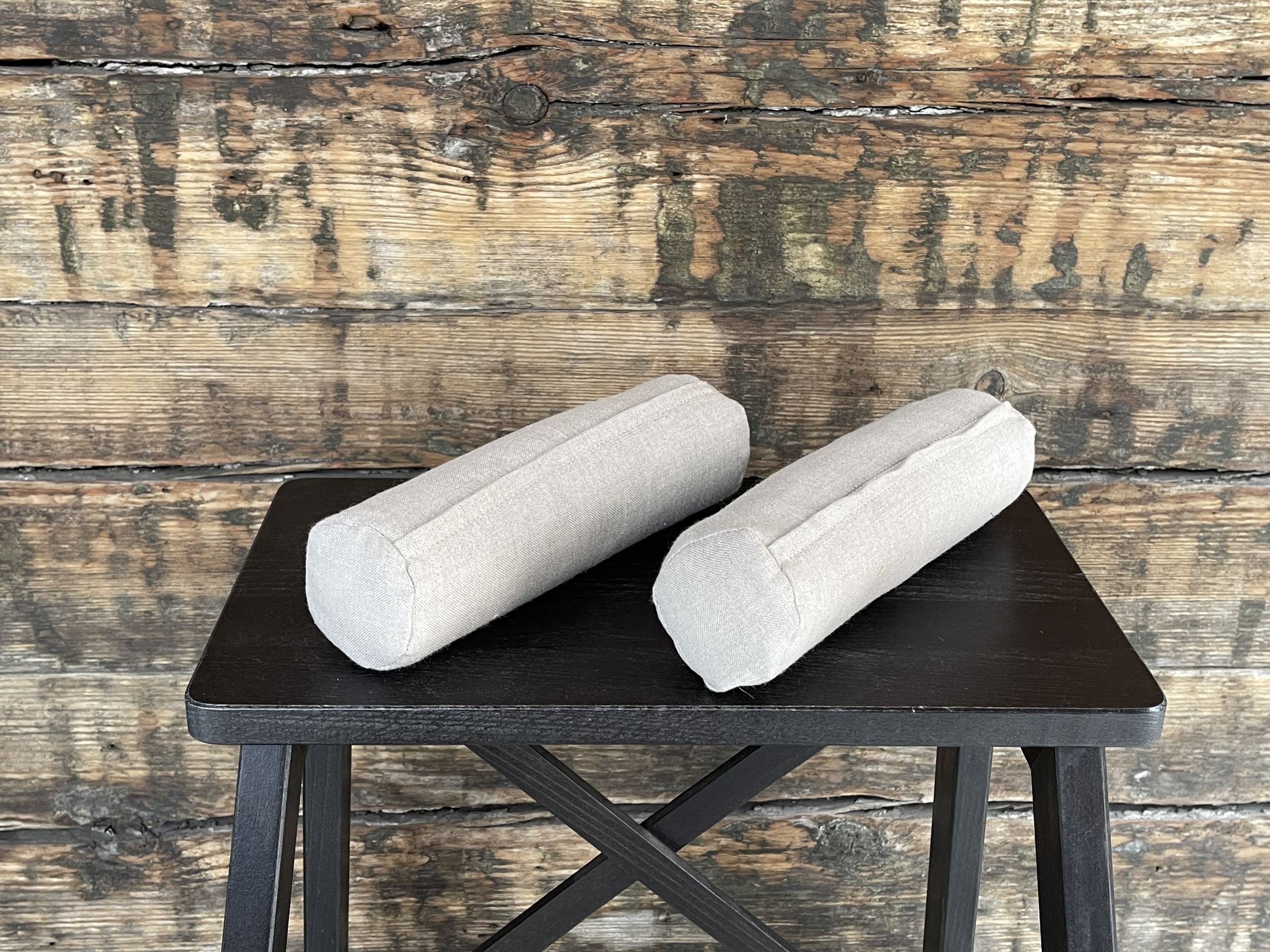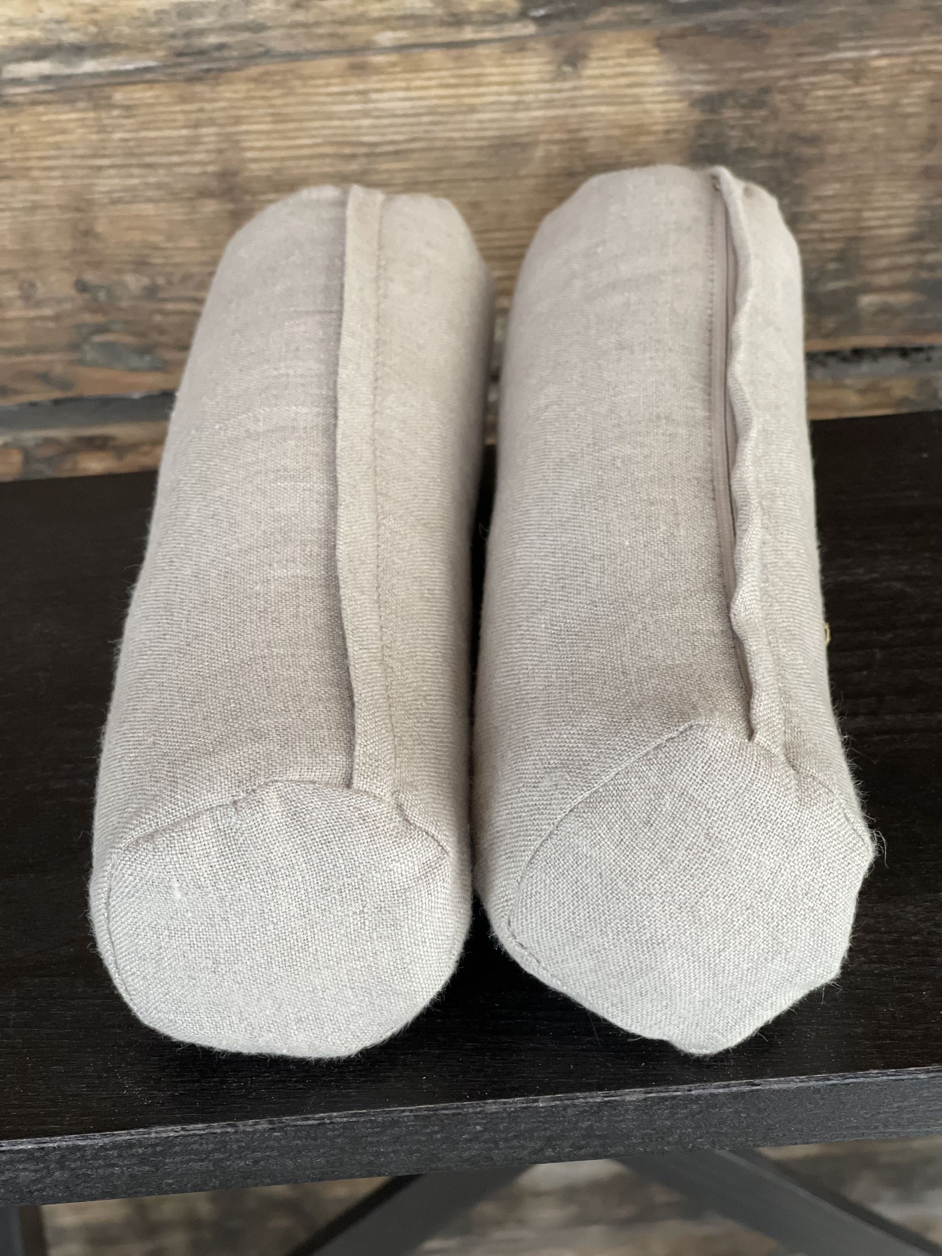Mini rullīši ar dabīgi pelēkām nekrāsota lina spilvendrānām, griķu sēnalu spilveni
