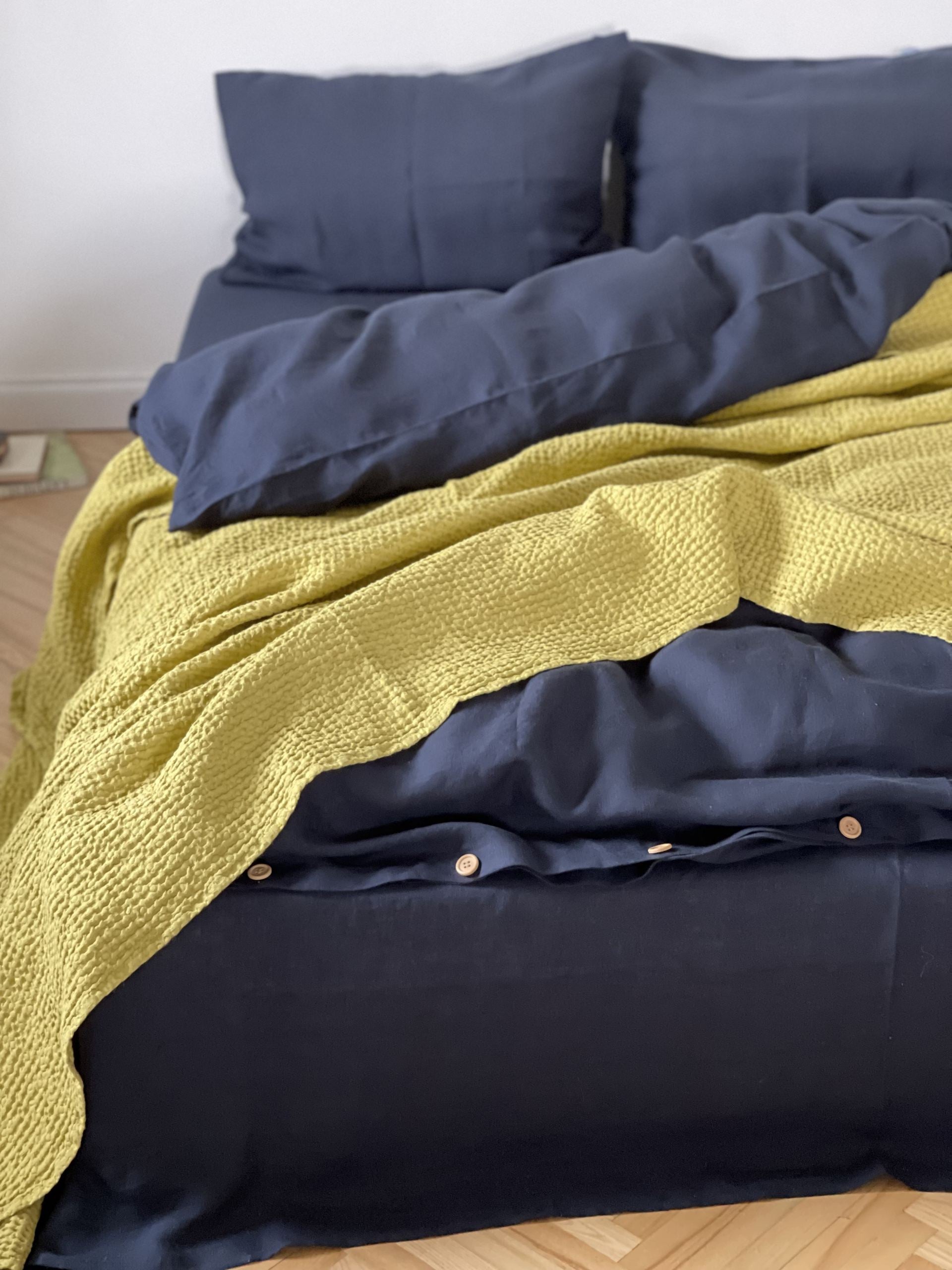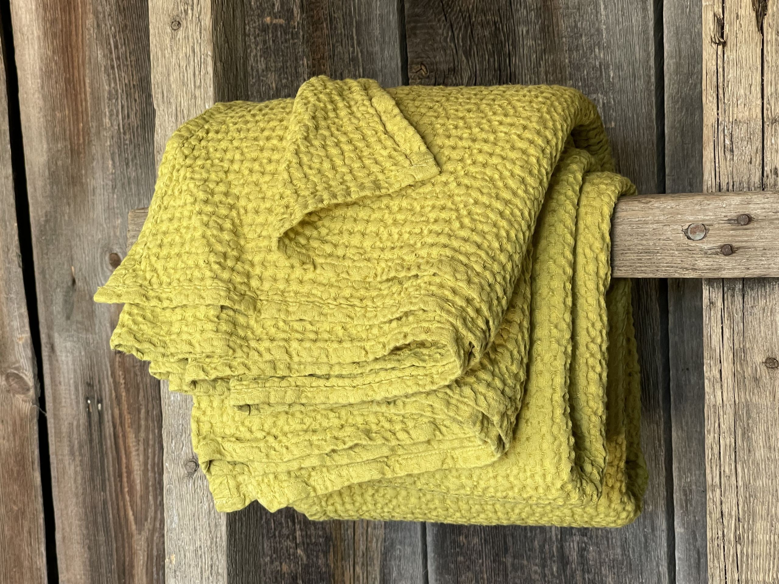 Laima zaļa toņa (vienkrāsains) lina/kokvilnas vienkrāsains vafeļauduma gultas pārklājs, dažādi izmēri