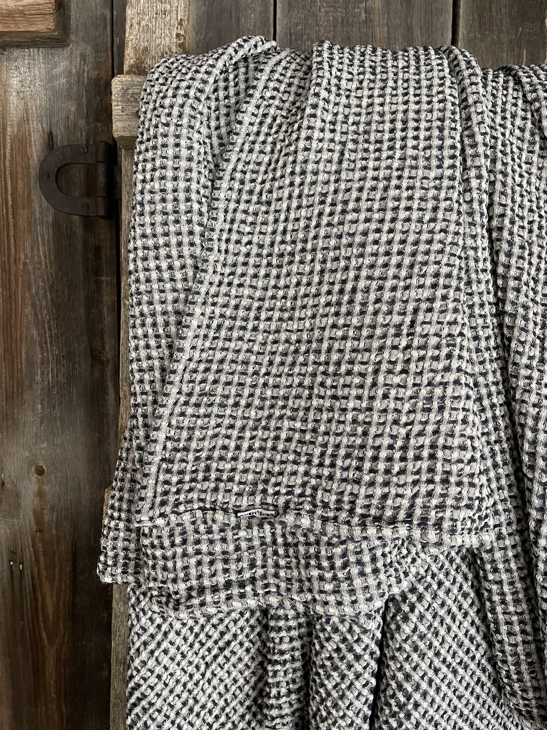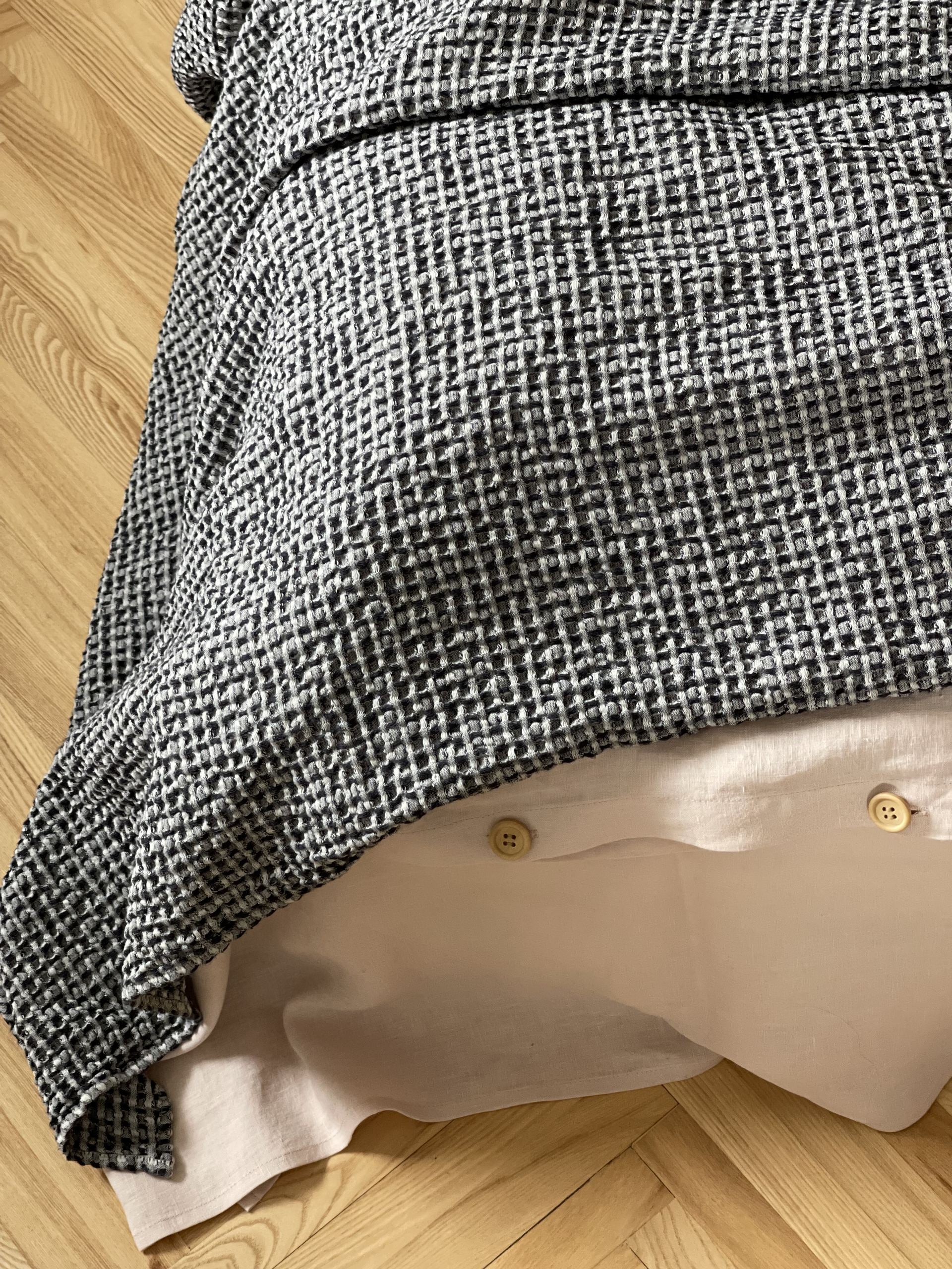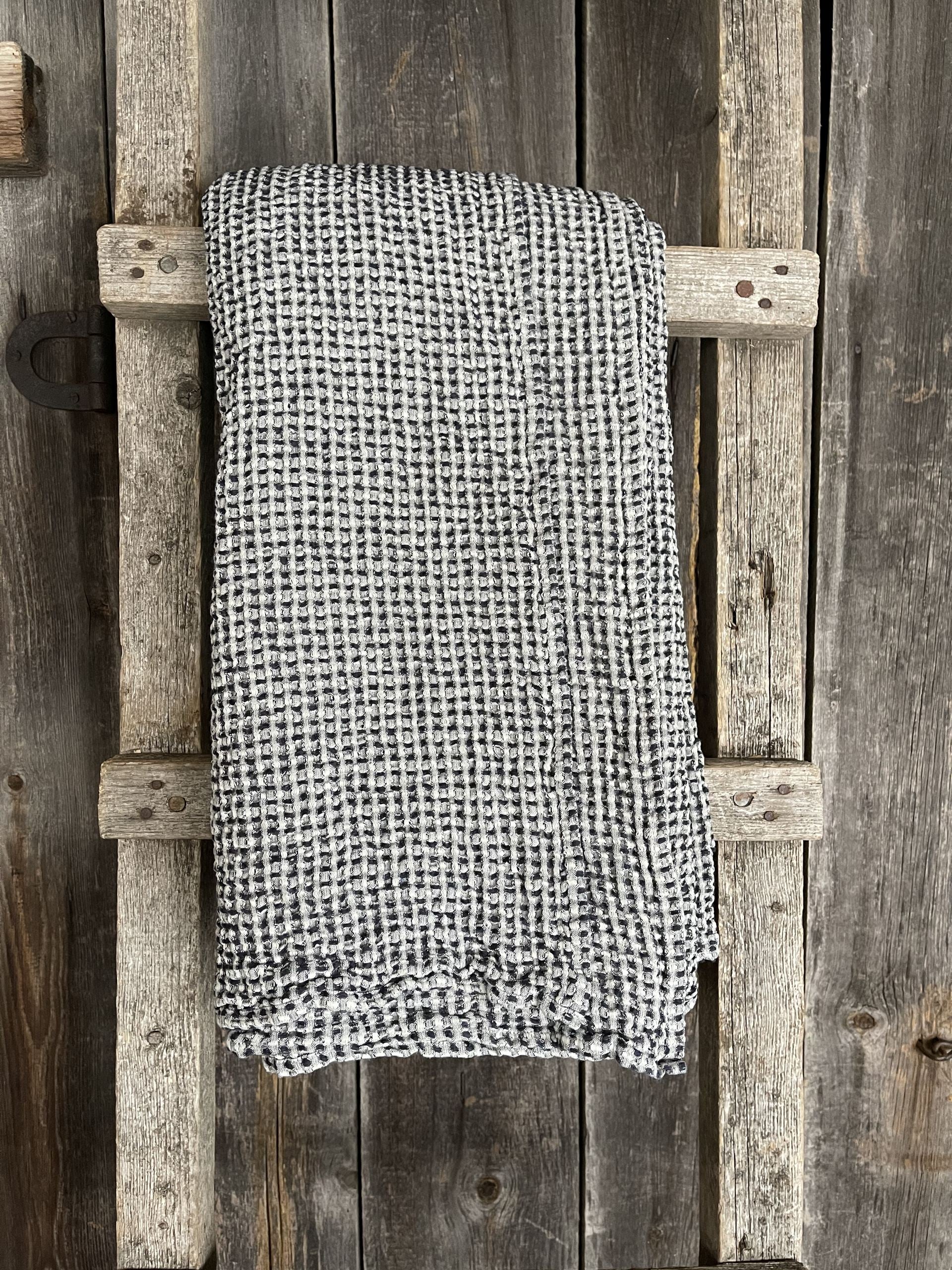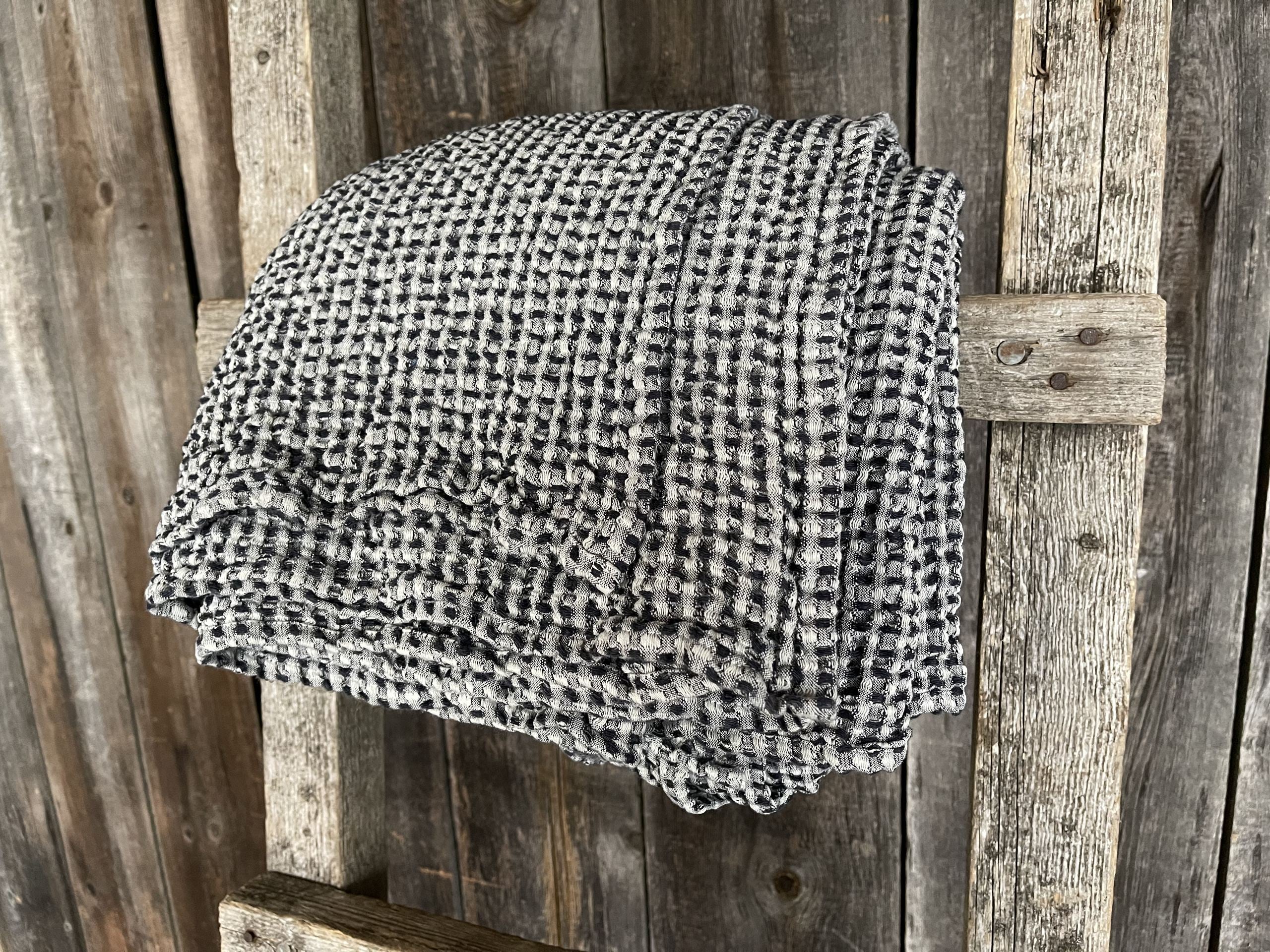 Melni-balts mistrots lina/kokvilnas vafeļauduma gultas pārklājs, dažādi izmēri
