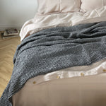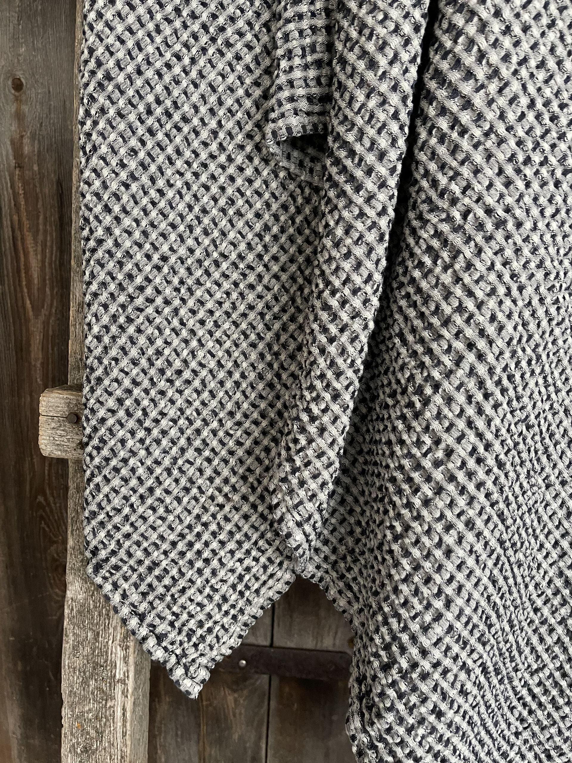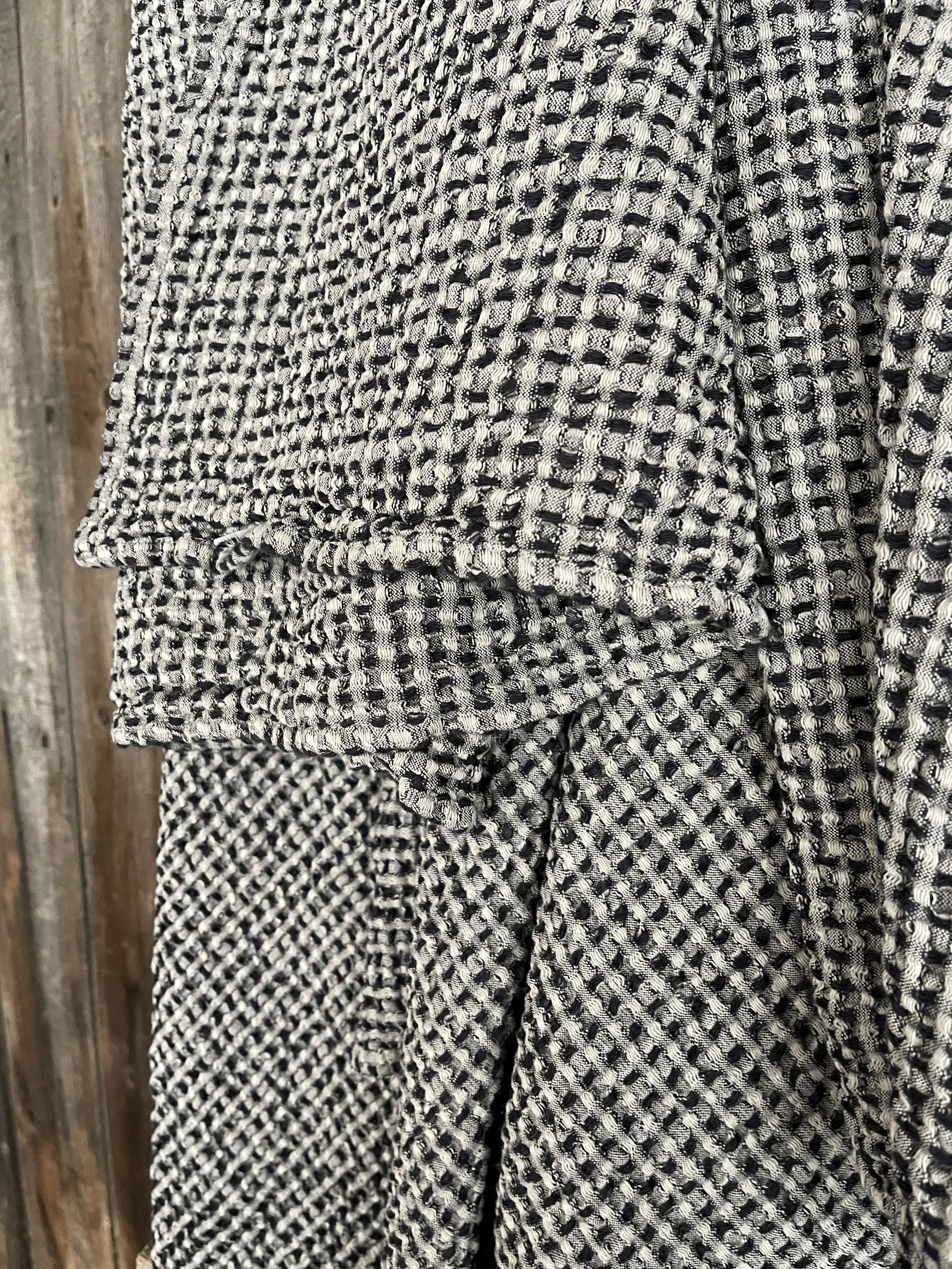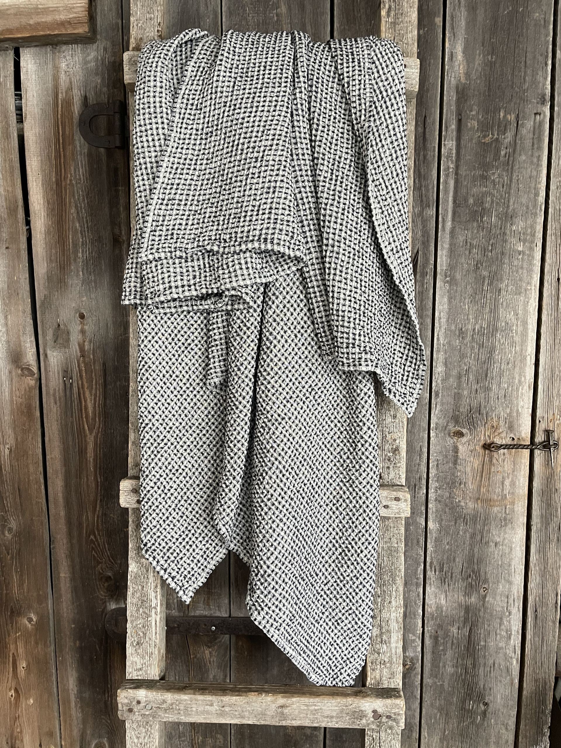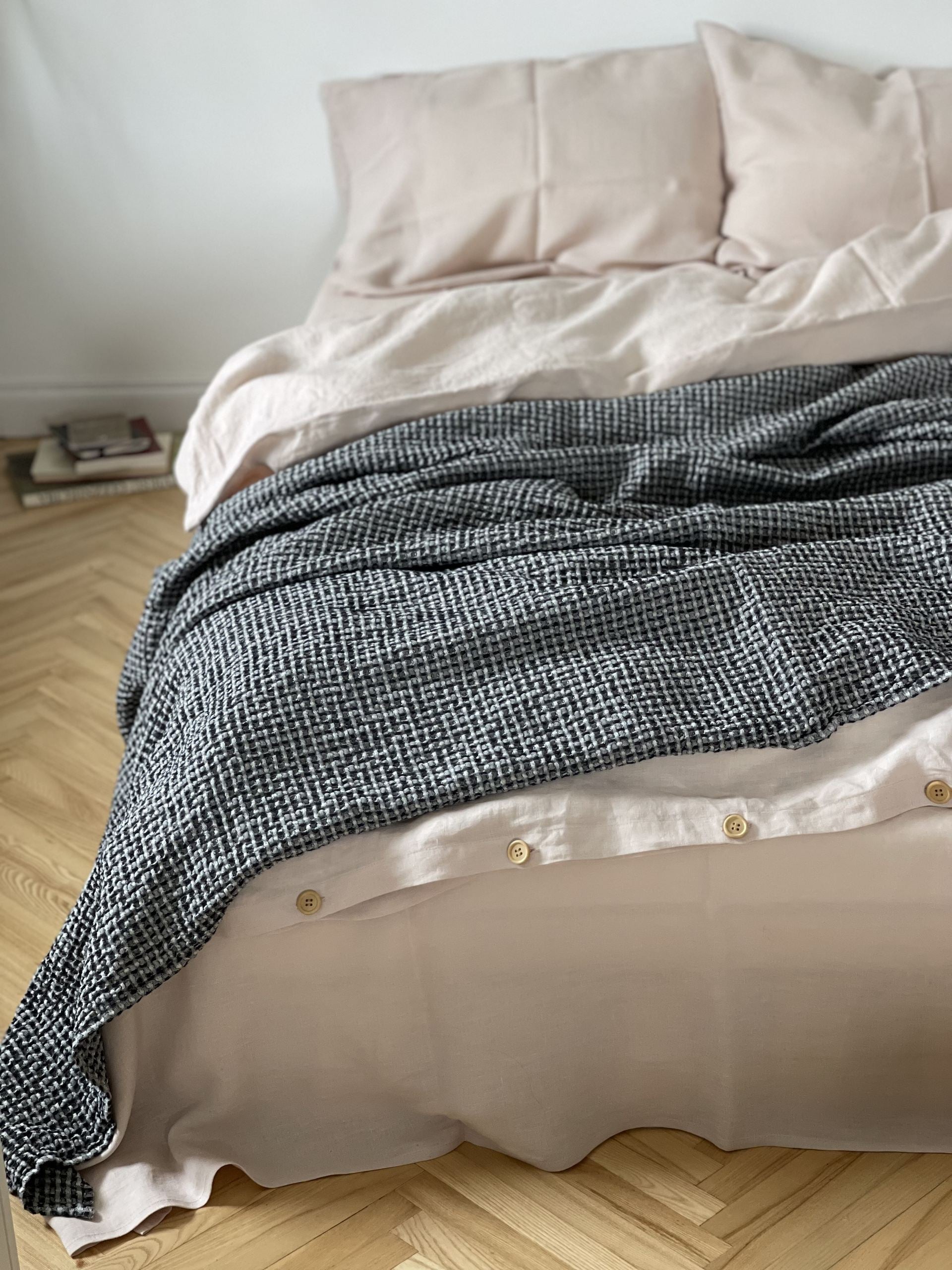 Melni-balts mistrots lina/kokvilnas vafeļauduma gultas pārklājs, dažādi izmēri