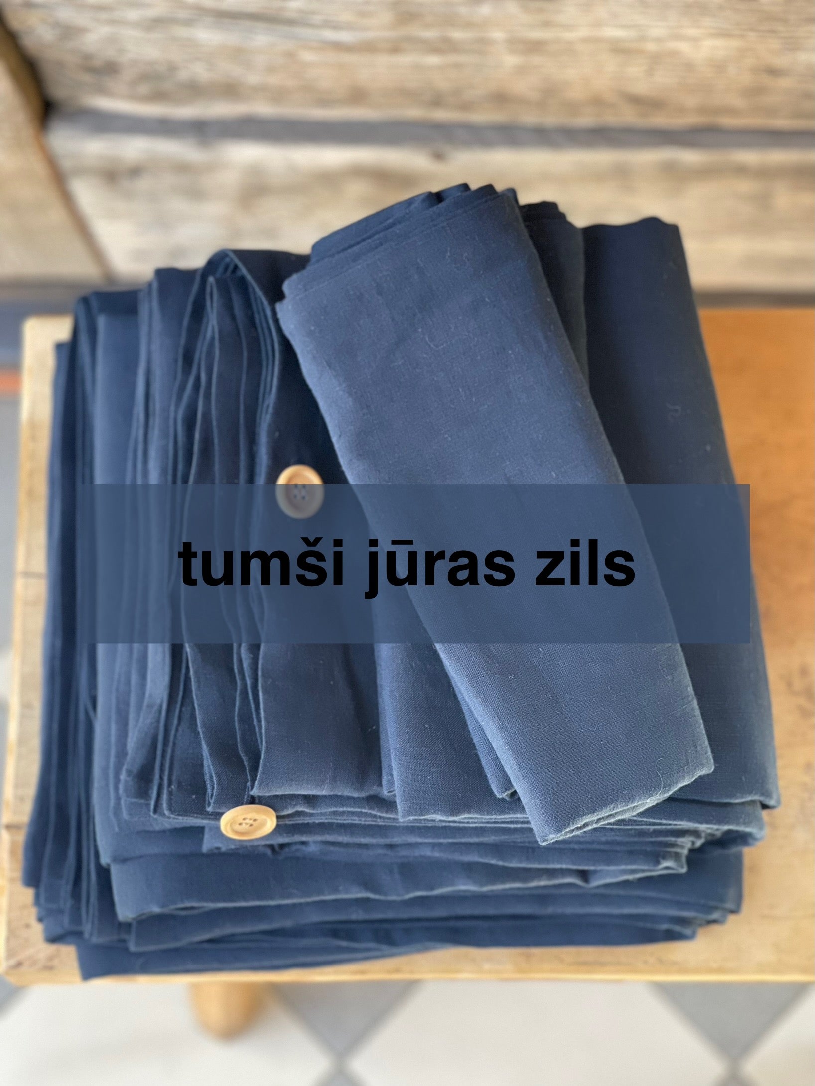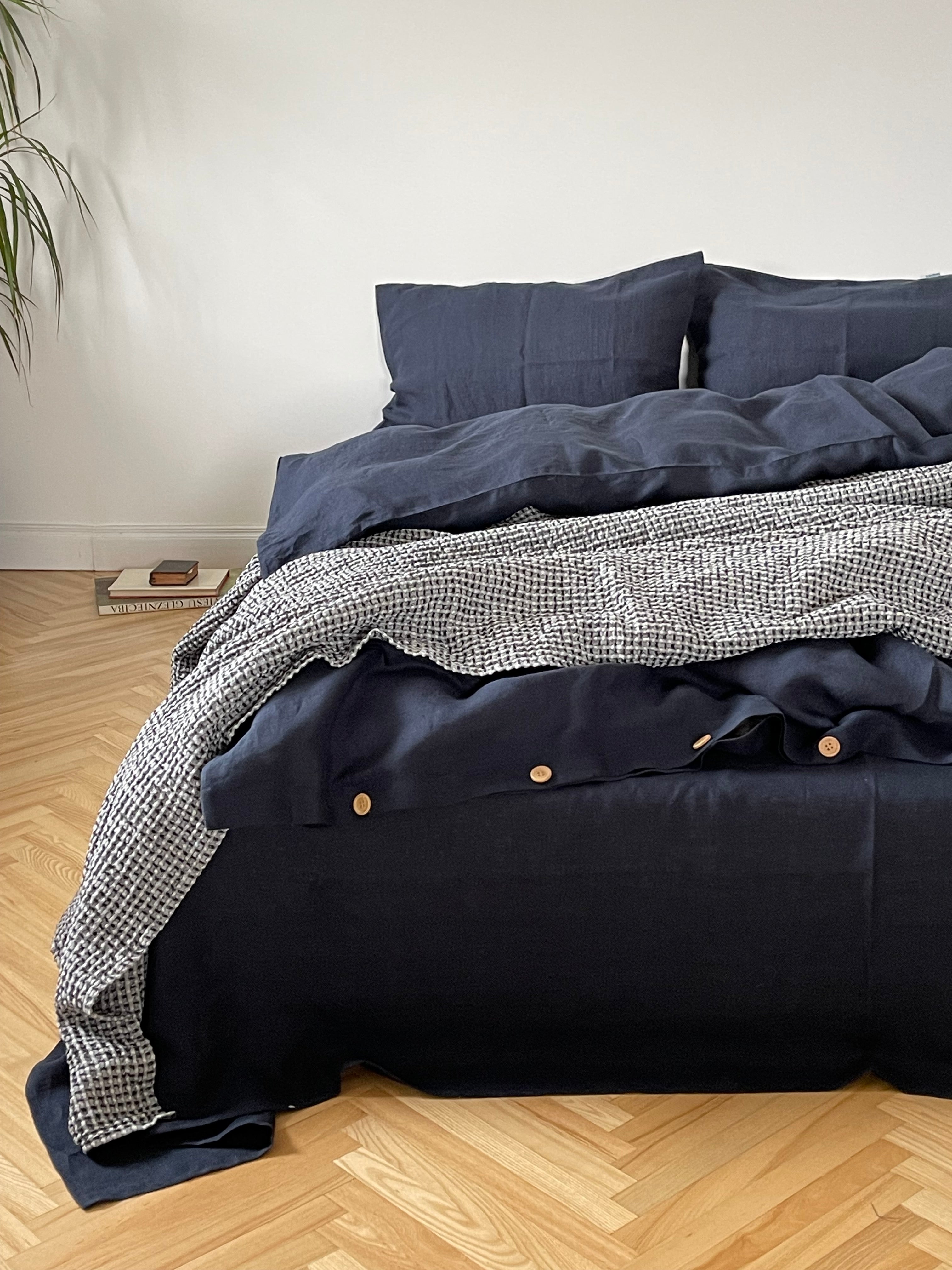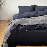 Tumši jūras zila toņa mīkstināta lina gultas veļas komplekts