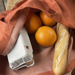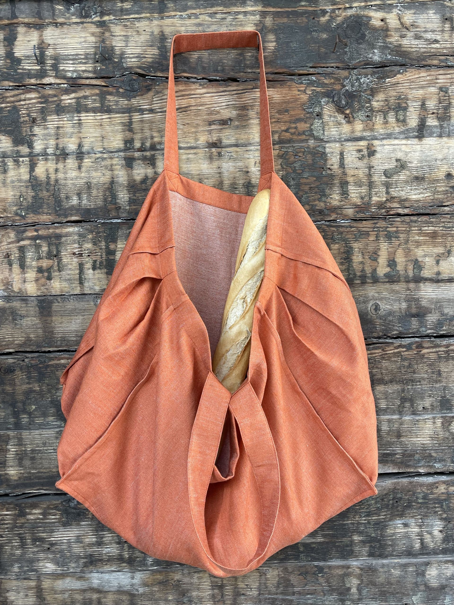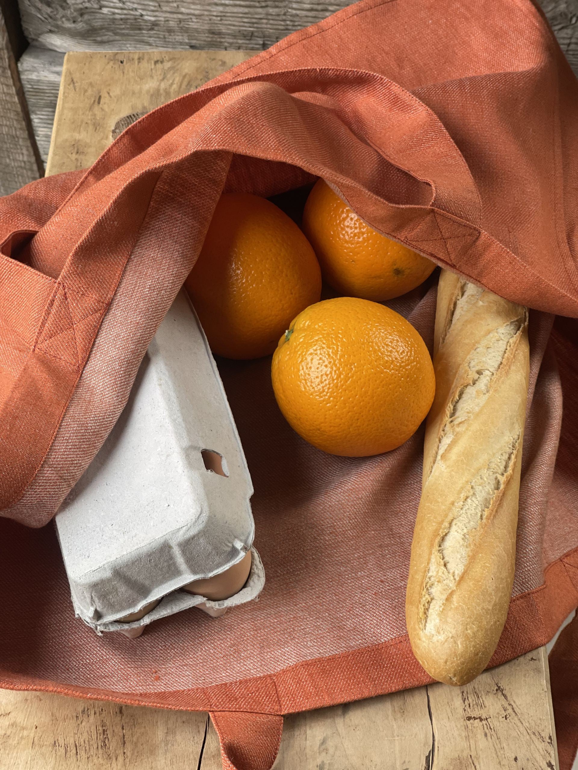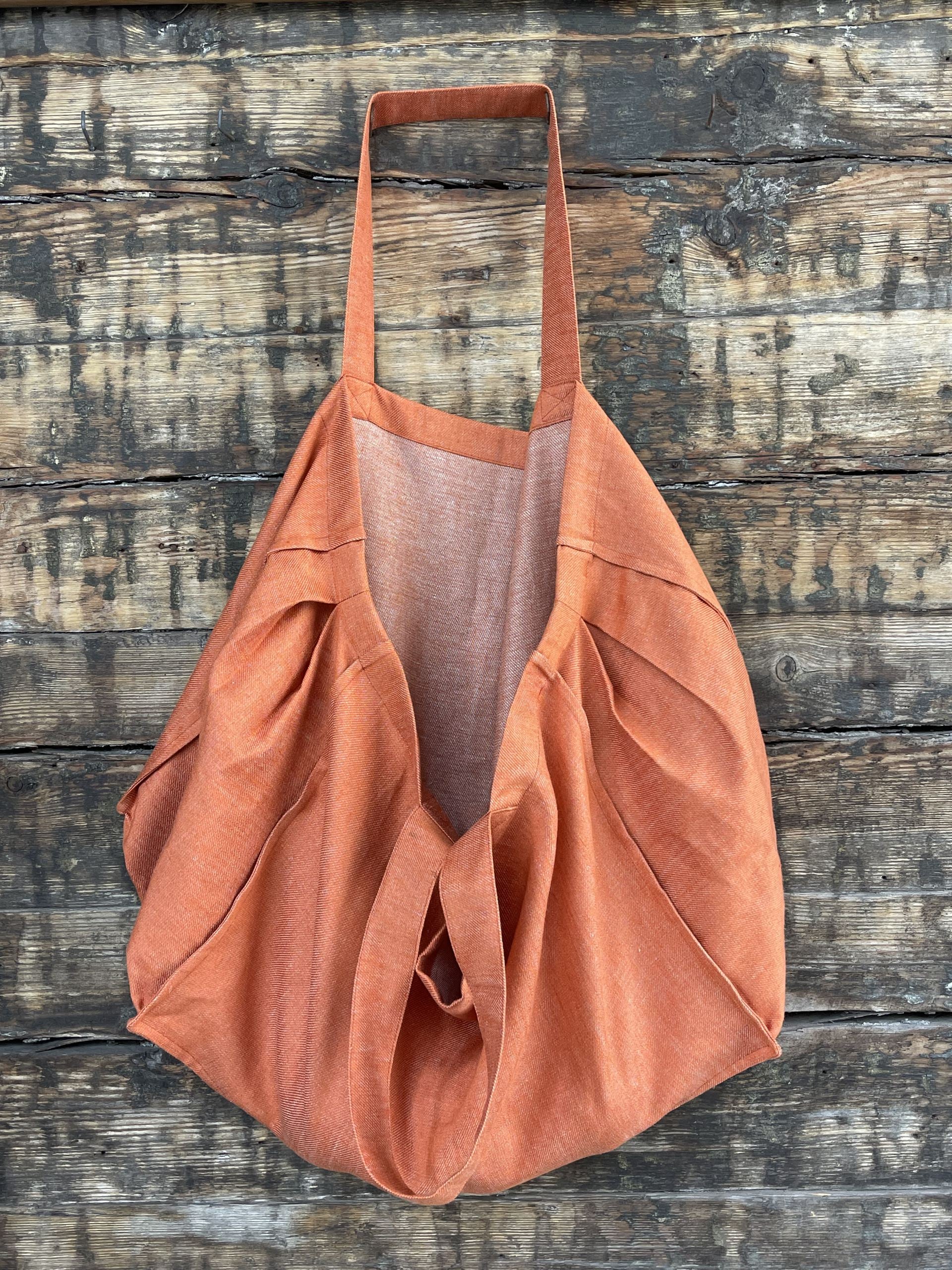 Oranža toņa lielā lina auduma iepirkumu soma - maiss