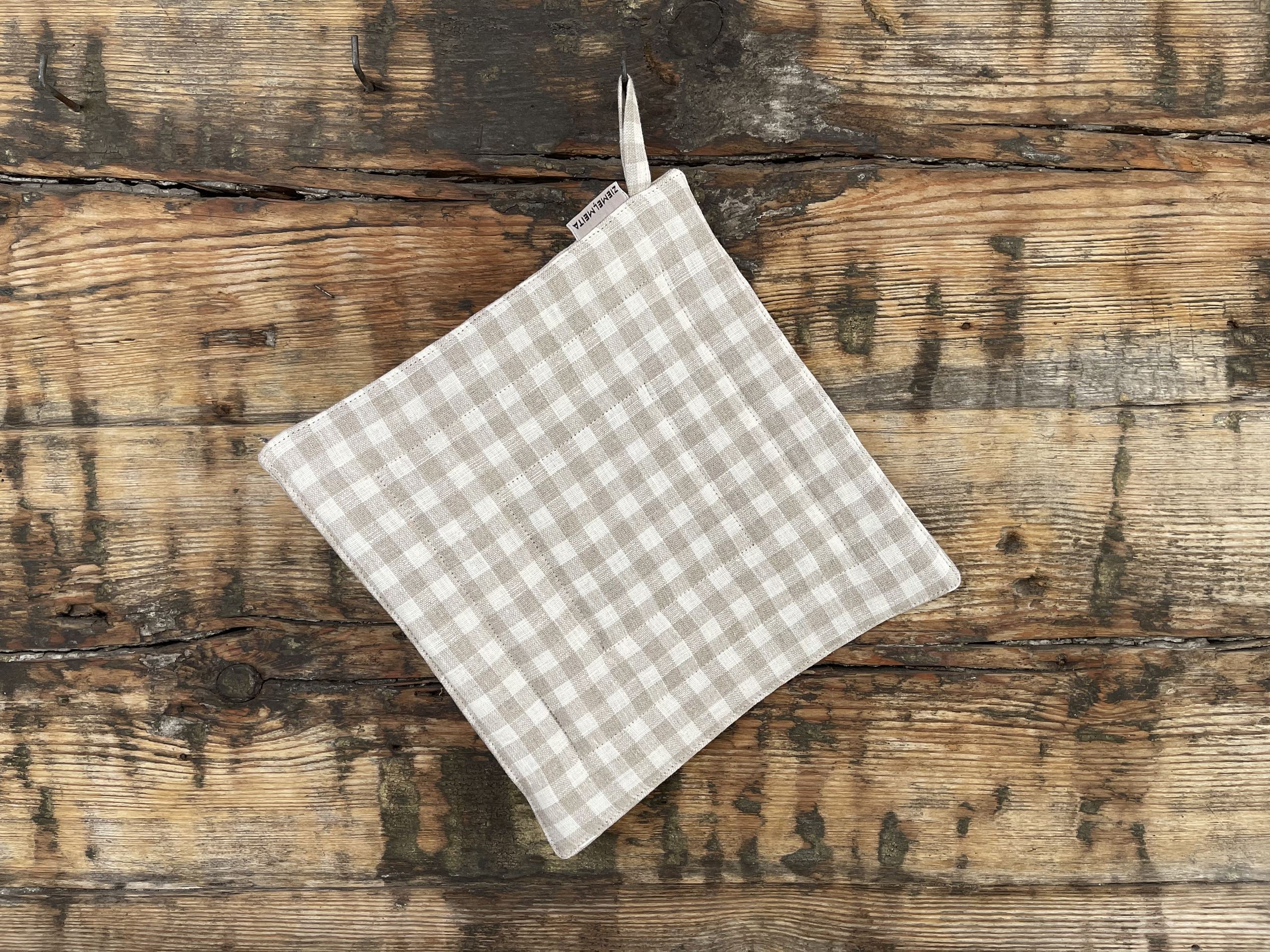 Lina un vatelīna karstuma paliktnis ar dabīgi pelēkām/baltām rūtiņām