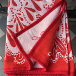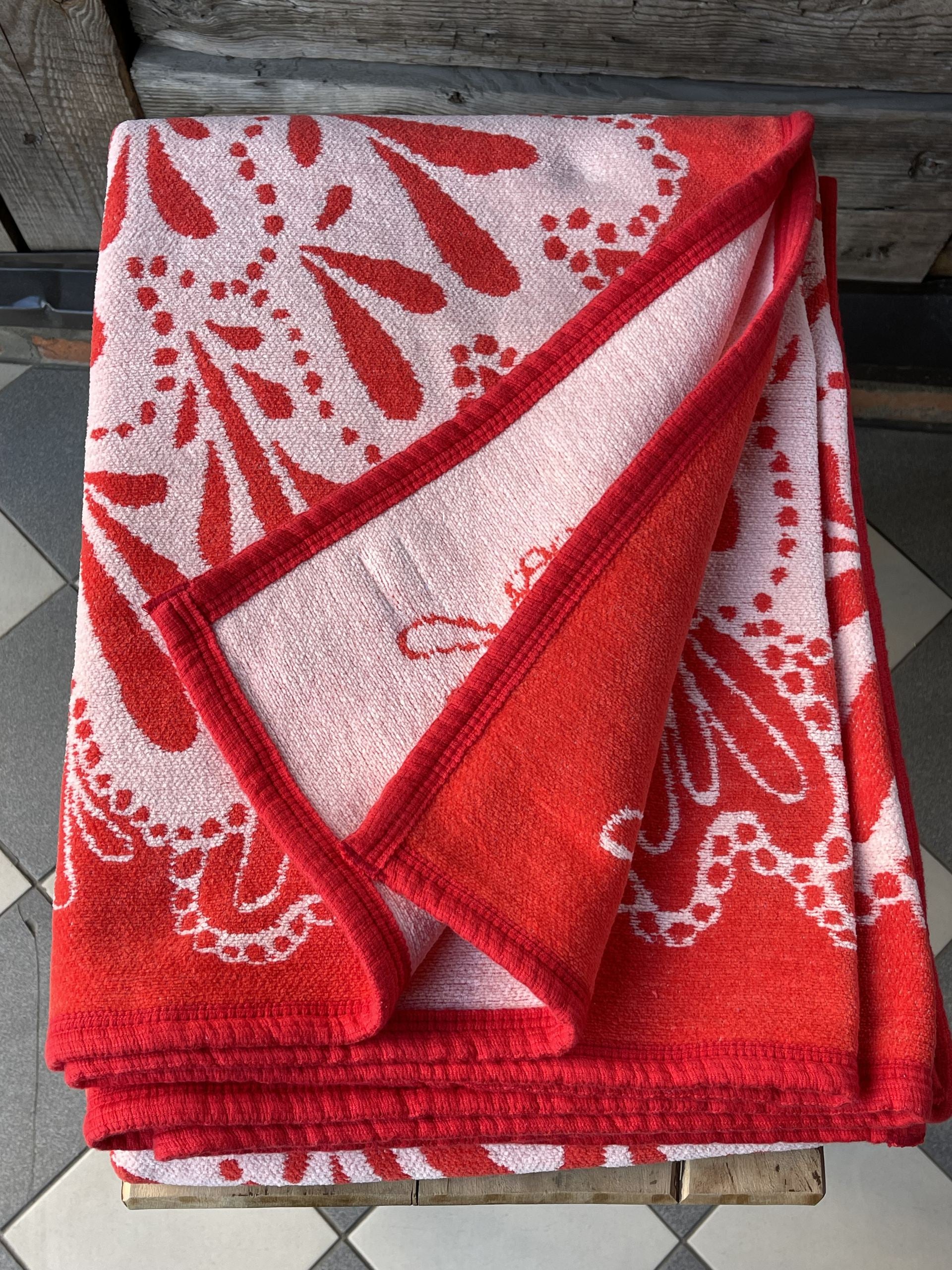 Koši sārts/balts kokvilnas samta- velūra pleds/sega/gultas pārklājs ar sārtām maliņām