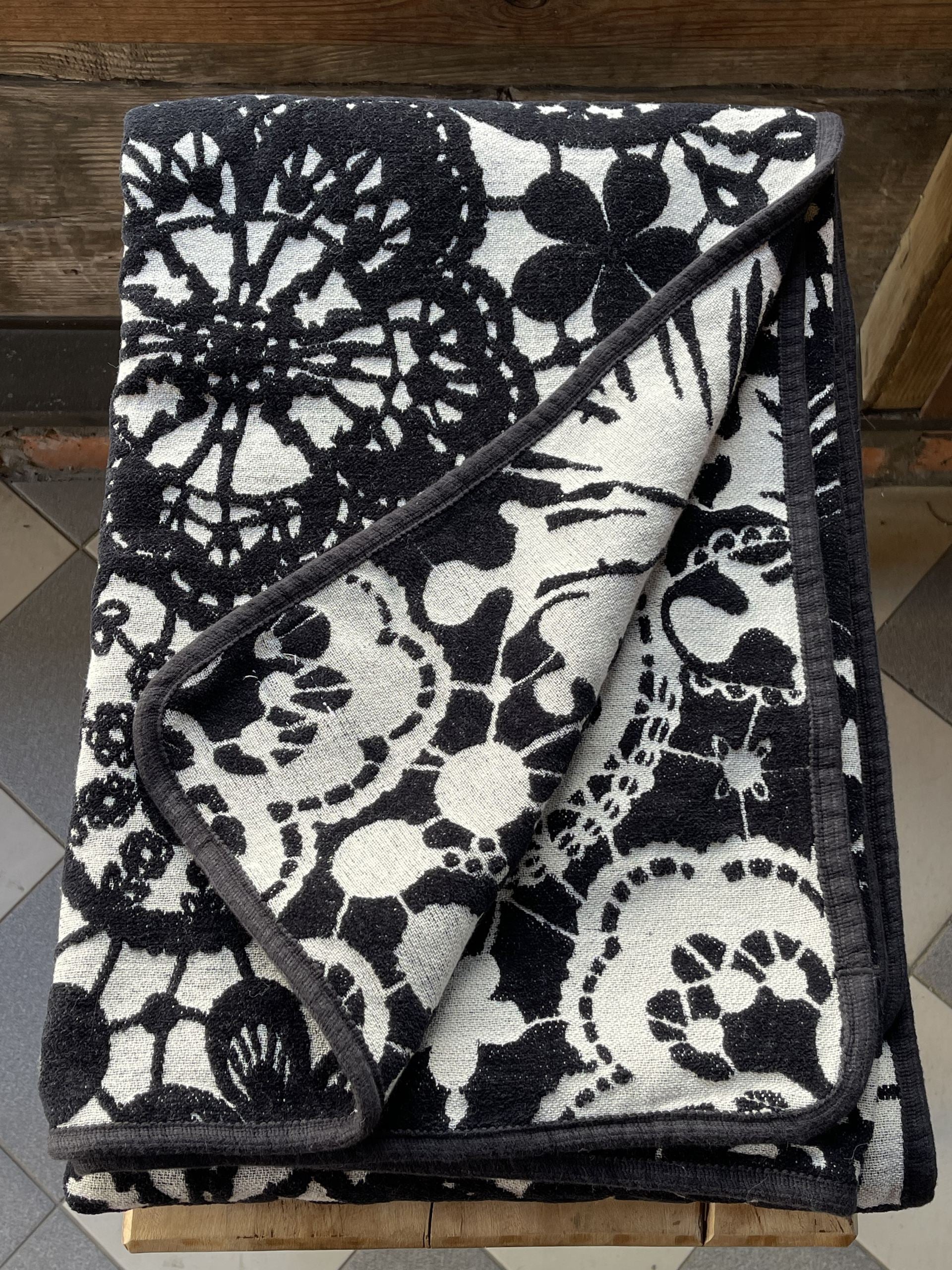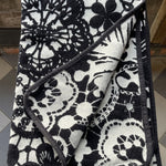 Melns/balts kokvilnas samta - velūra pleds/sega/gultas pārklājs ar ziedu rakstu