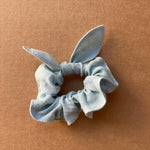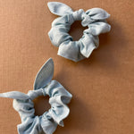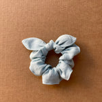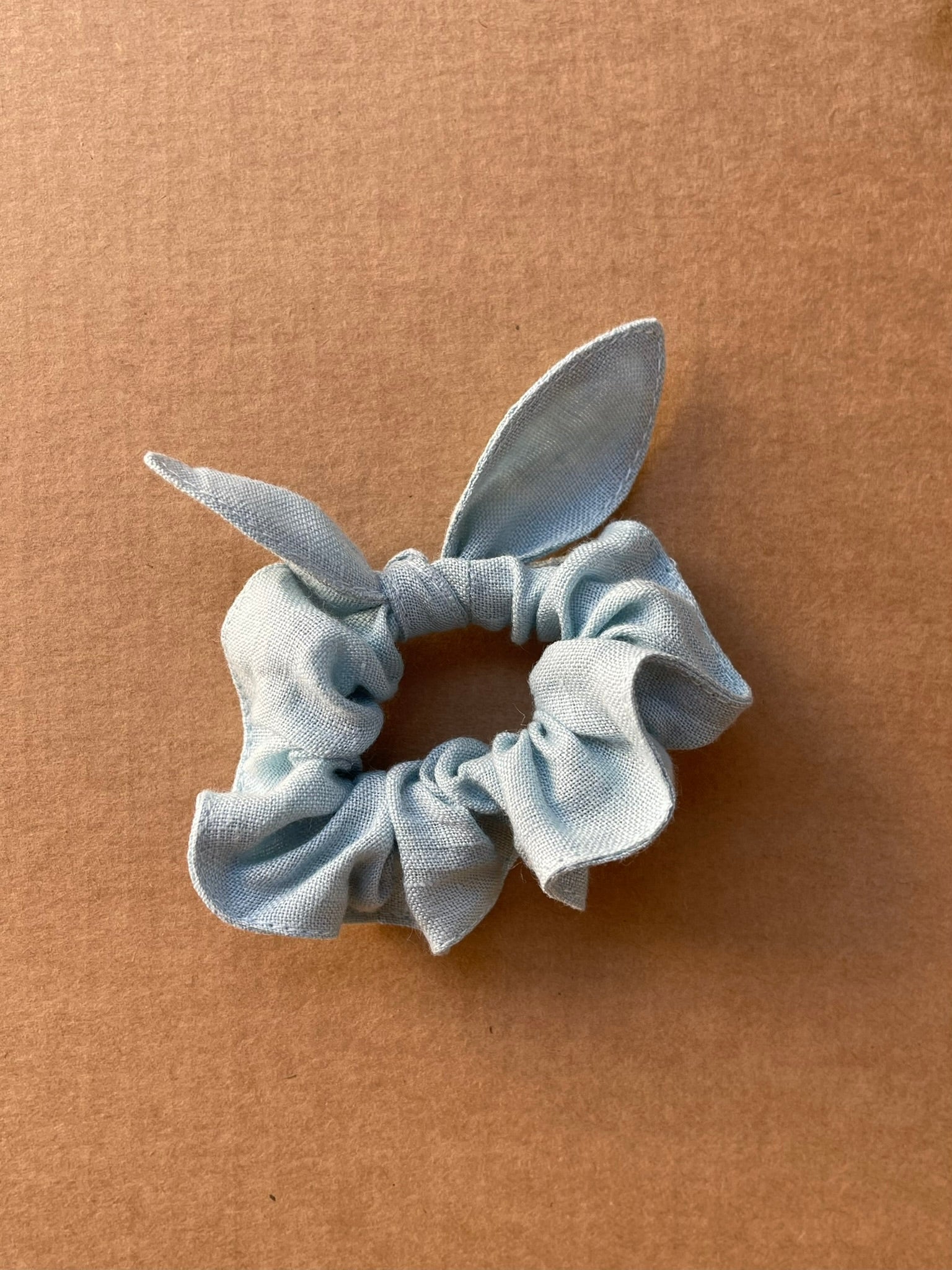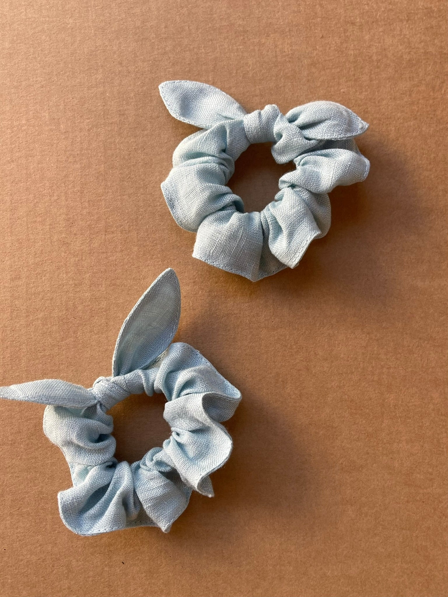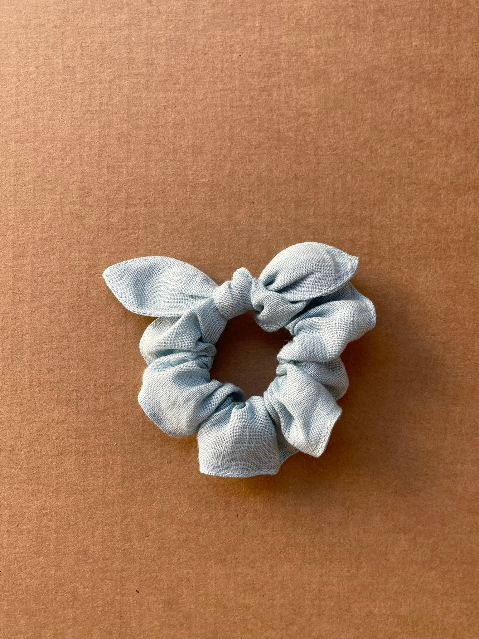 Lina auduma matu gumija - scrunchie - ar dekoratīvu banti Gaiši zils tonis S