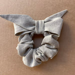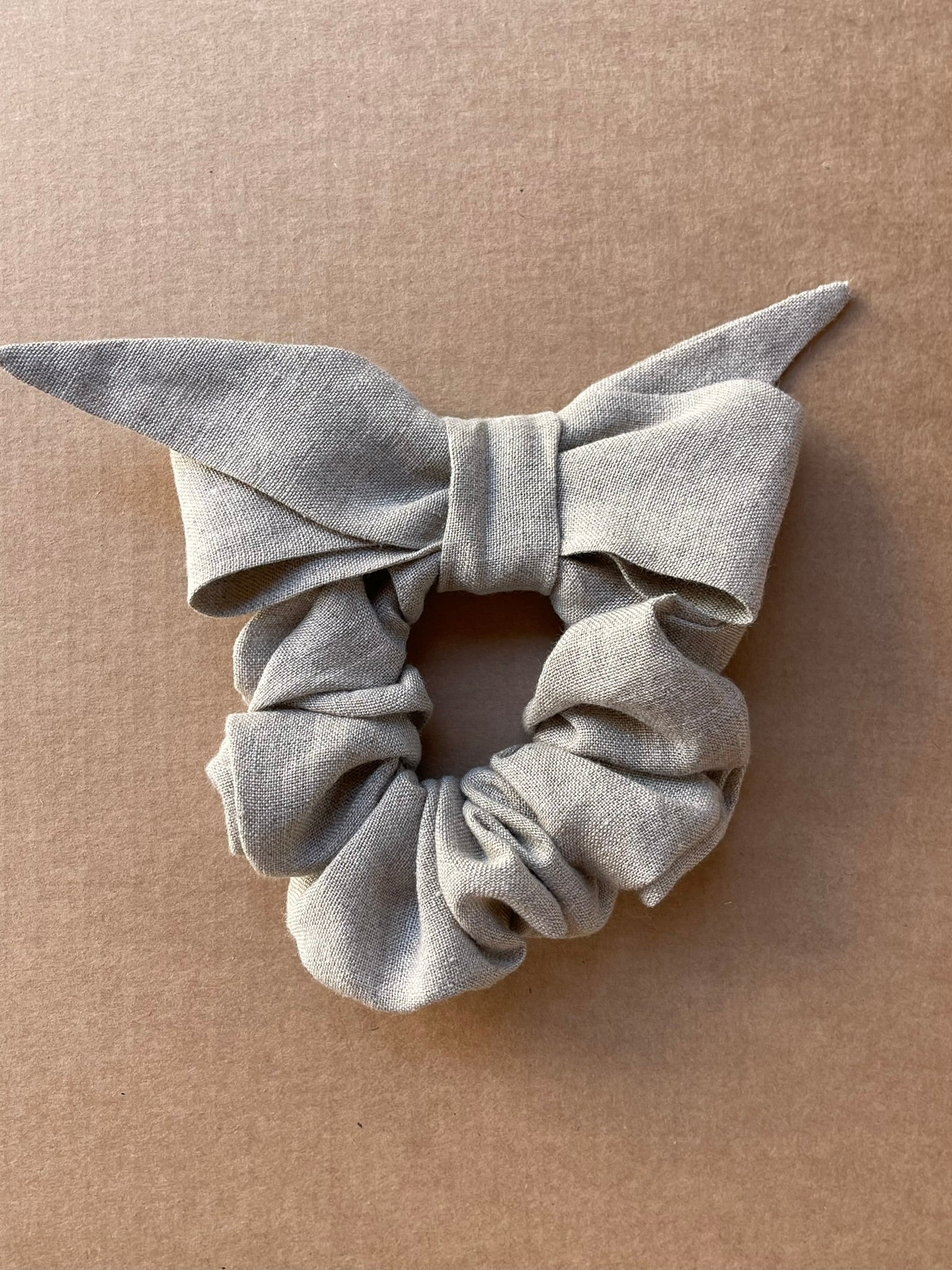 Lina auduma matu gumija - scrunchie - ar dekoratīvu banti Nekrāsots, dabīgi pelēka lina tonis