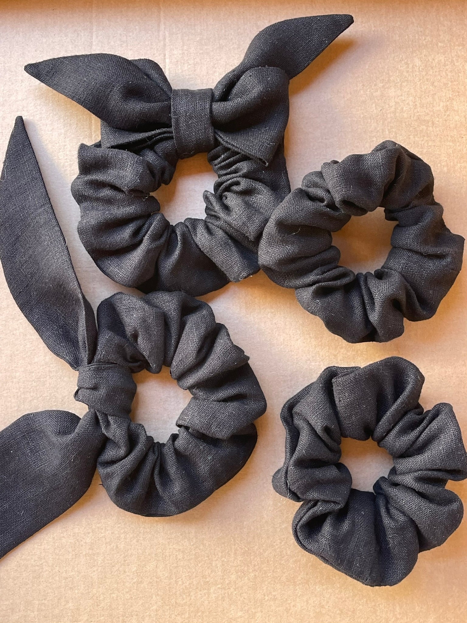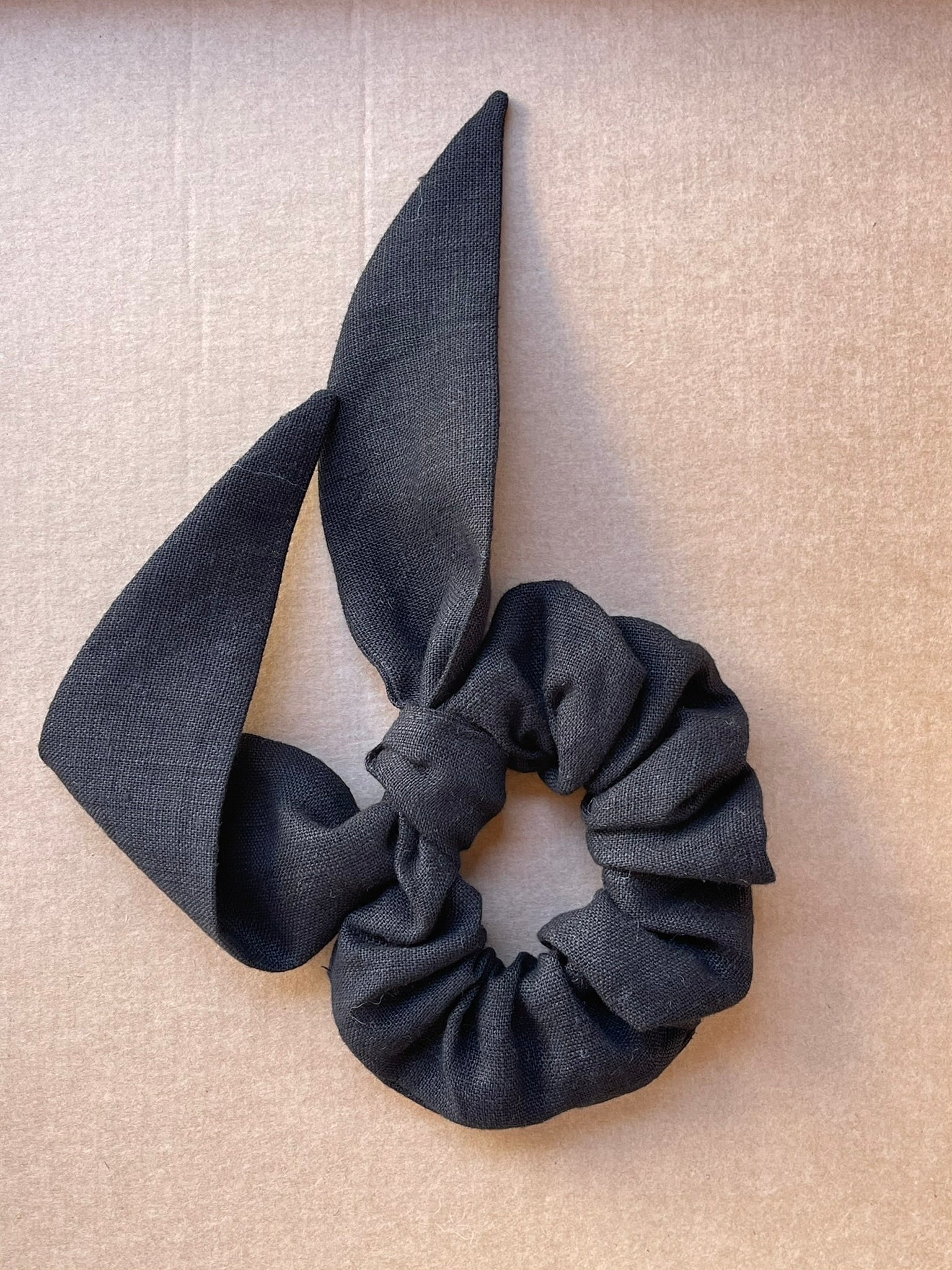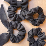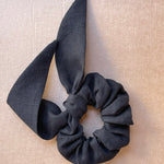 Lina auduma matu gumija- scrunchie ar garām ''ļipiņām'' Melns tonis