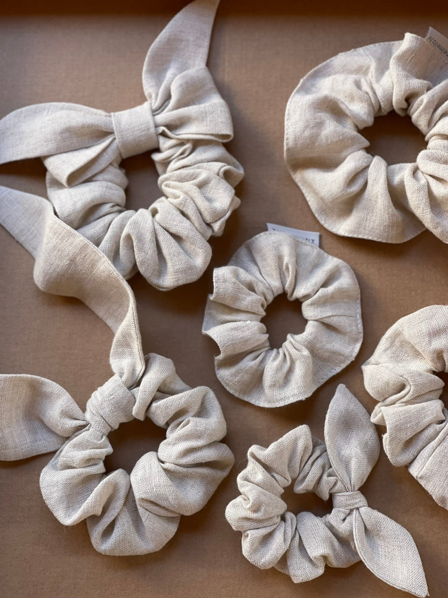 Lina auduma matu gumija – scrunchie - izturīga, elpojoša un matiem saudzīga