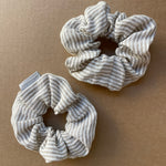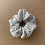 Lina auduma matu gumija - scrunchie - Pelēkas svītriņas L (~5cm plata)