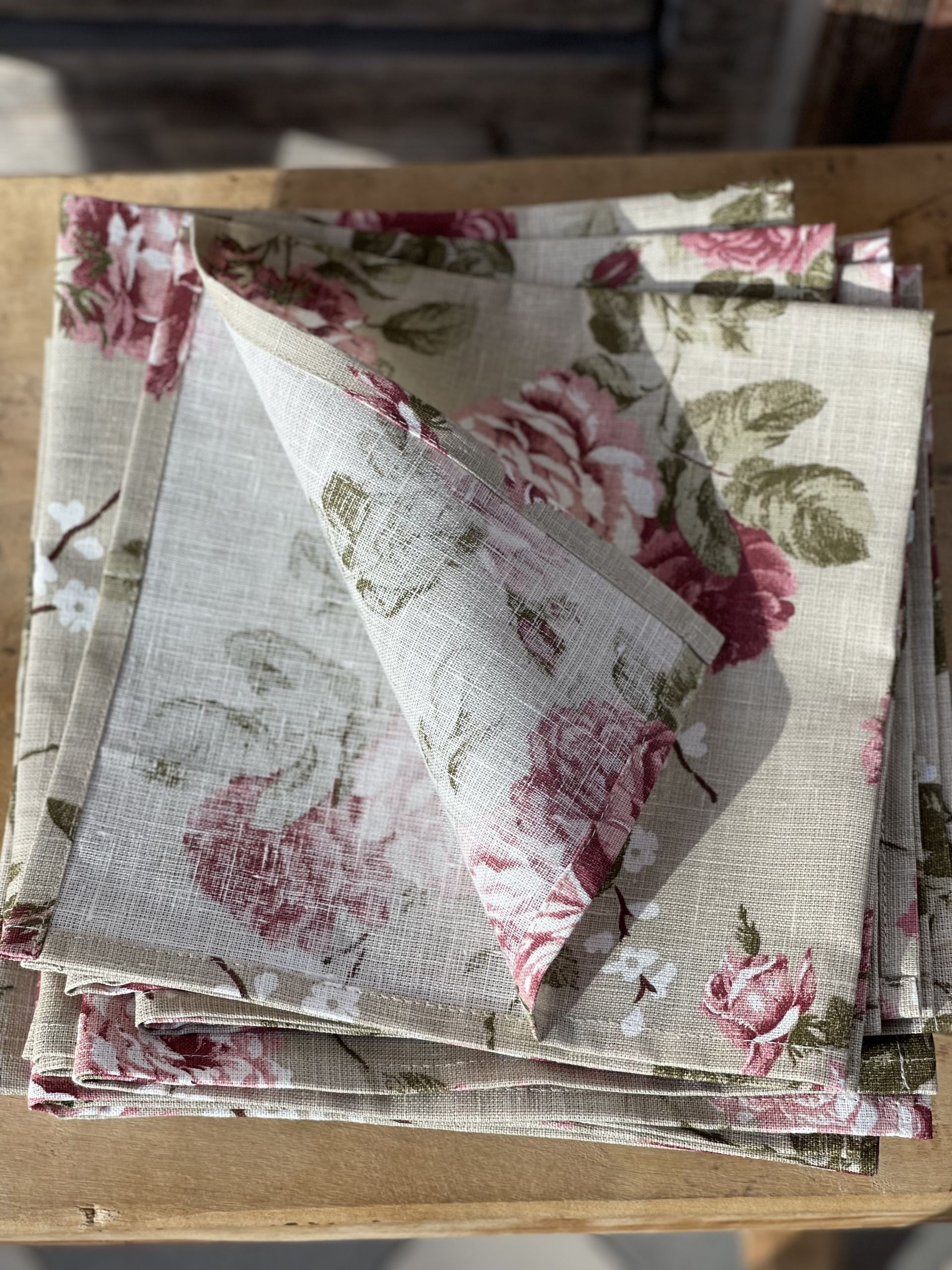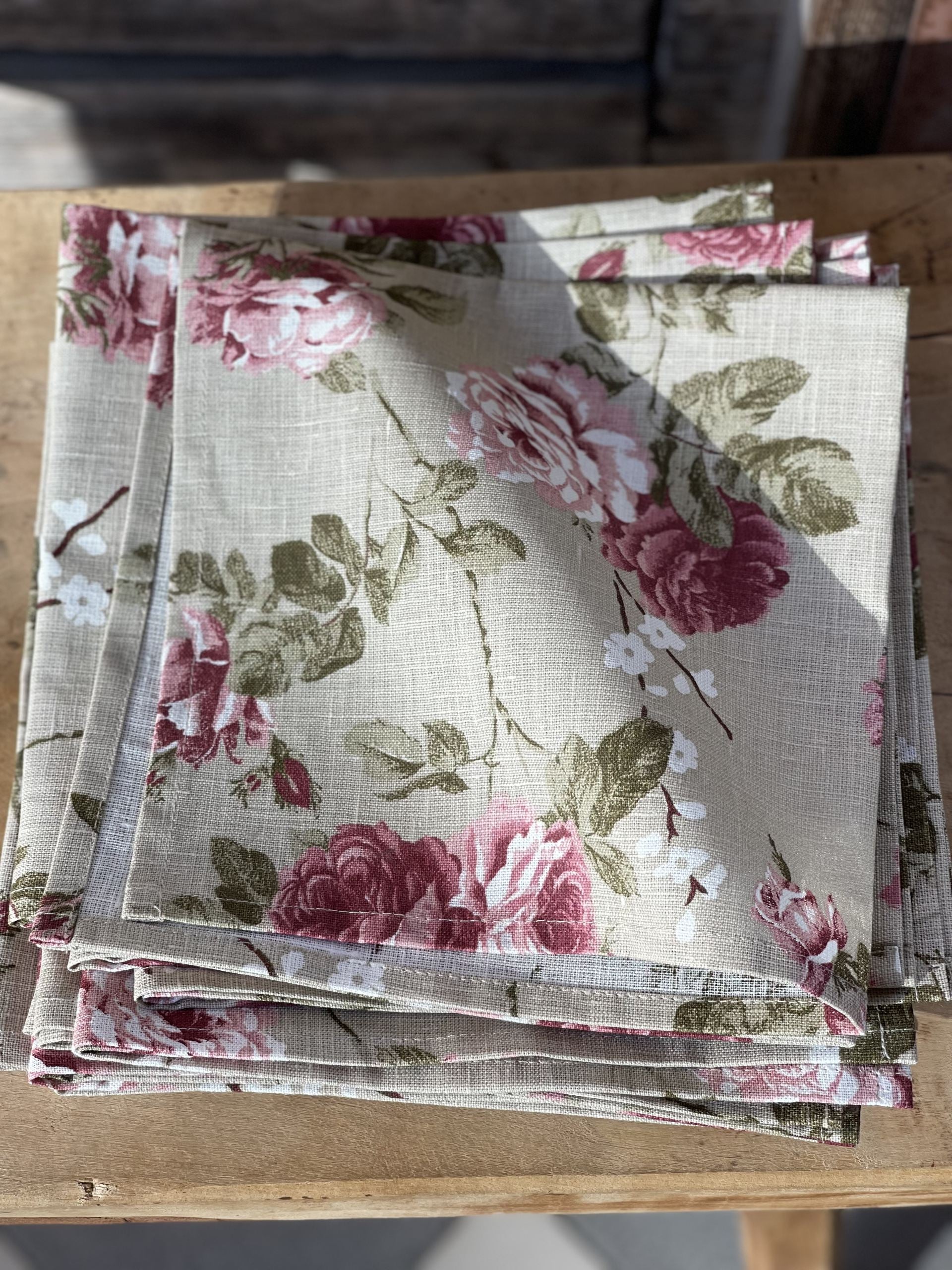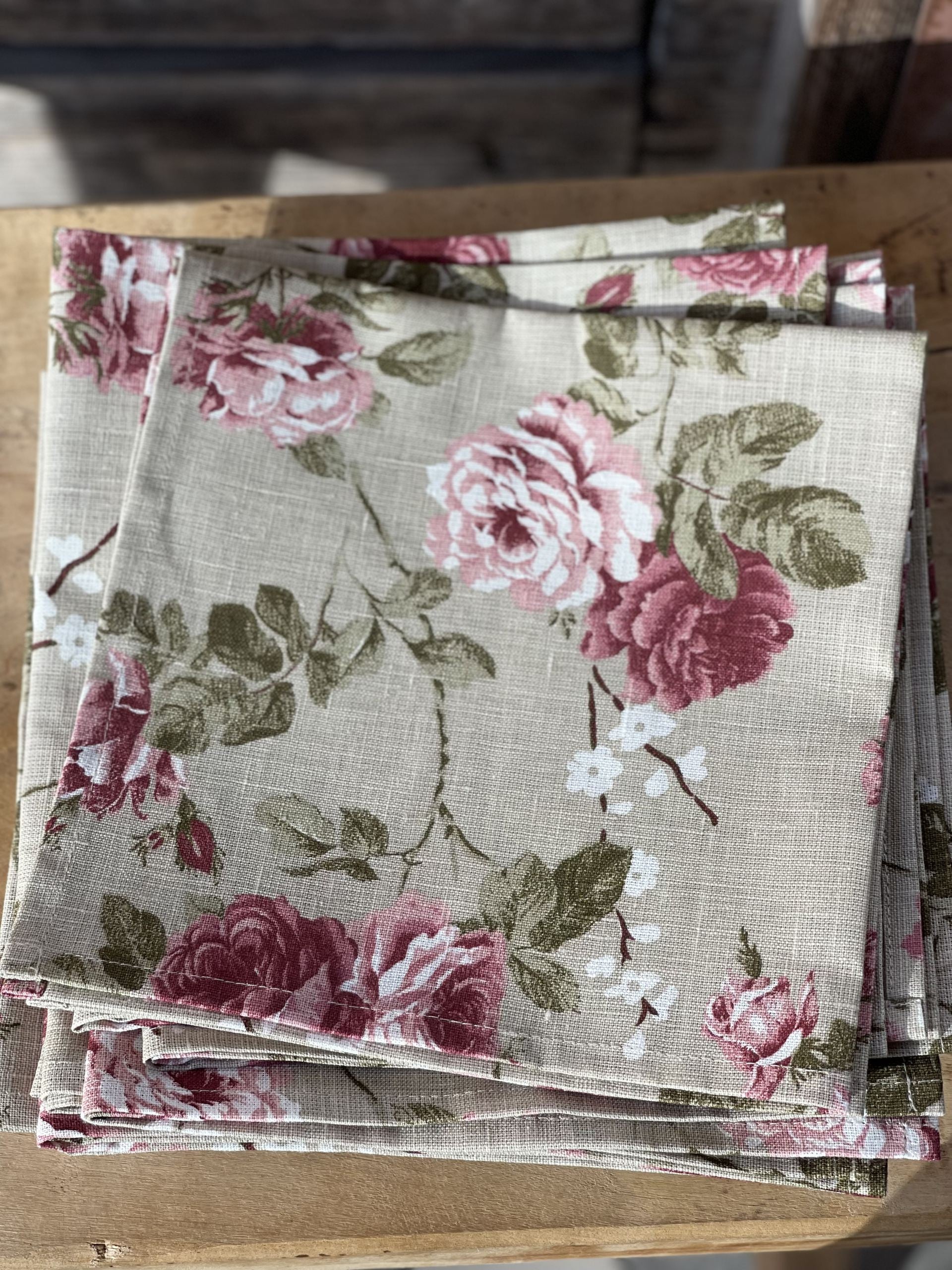 Lina galda salvetes ar rozēm un šaurām maliņām