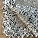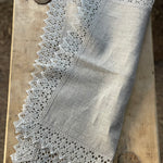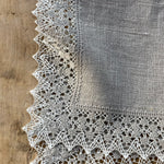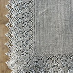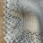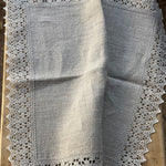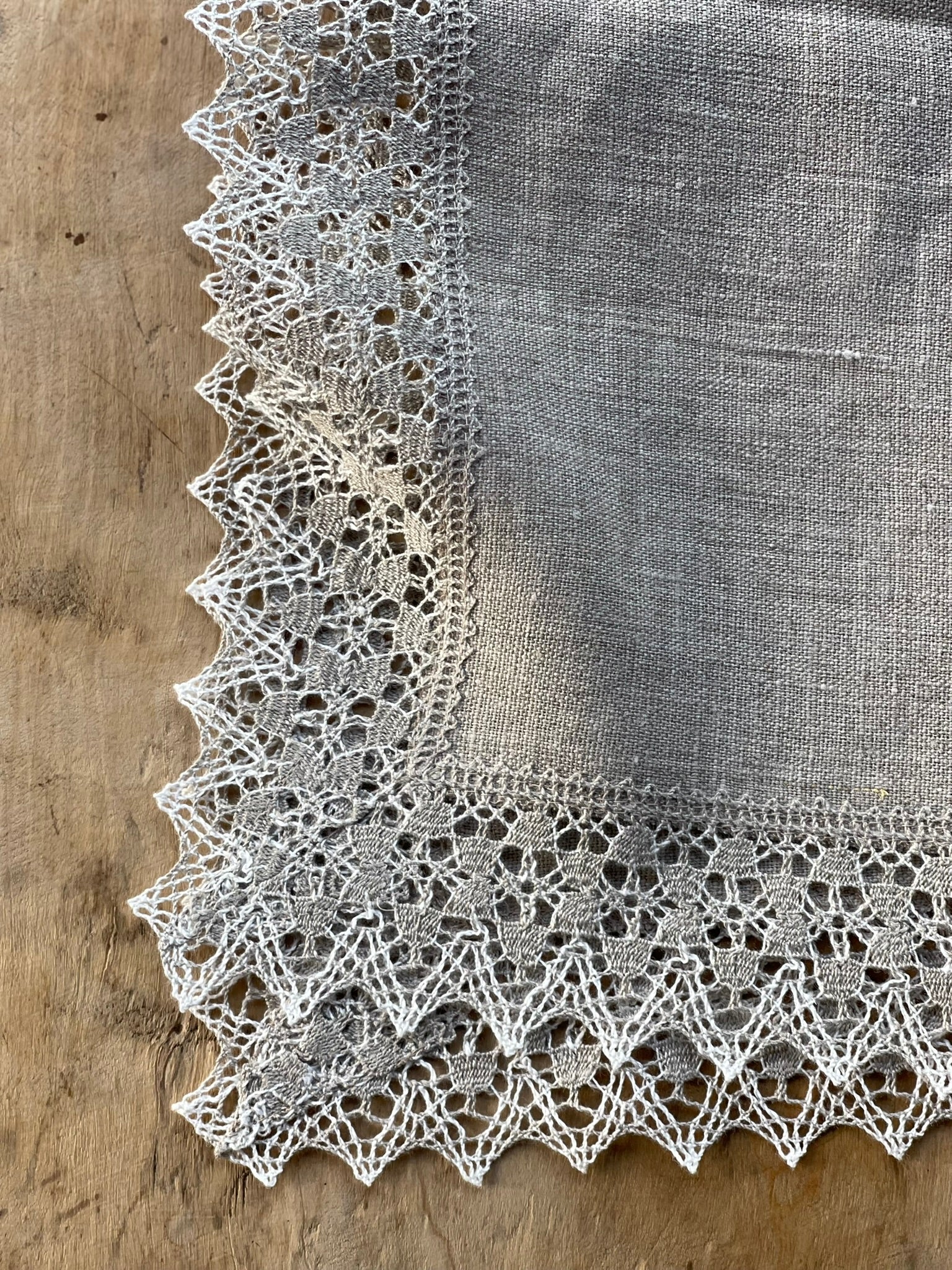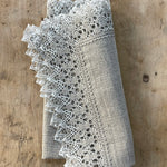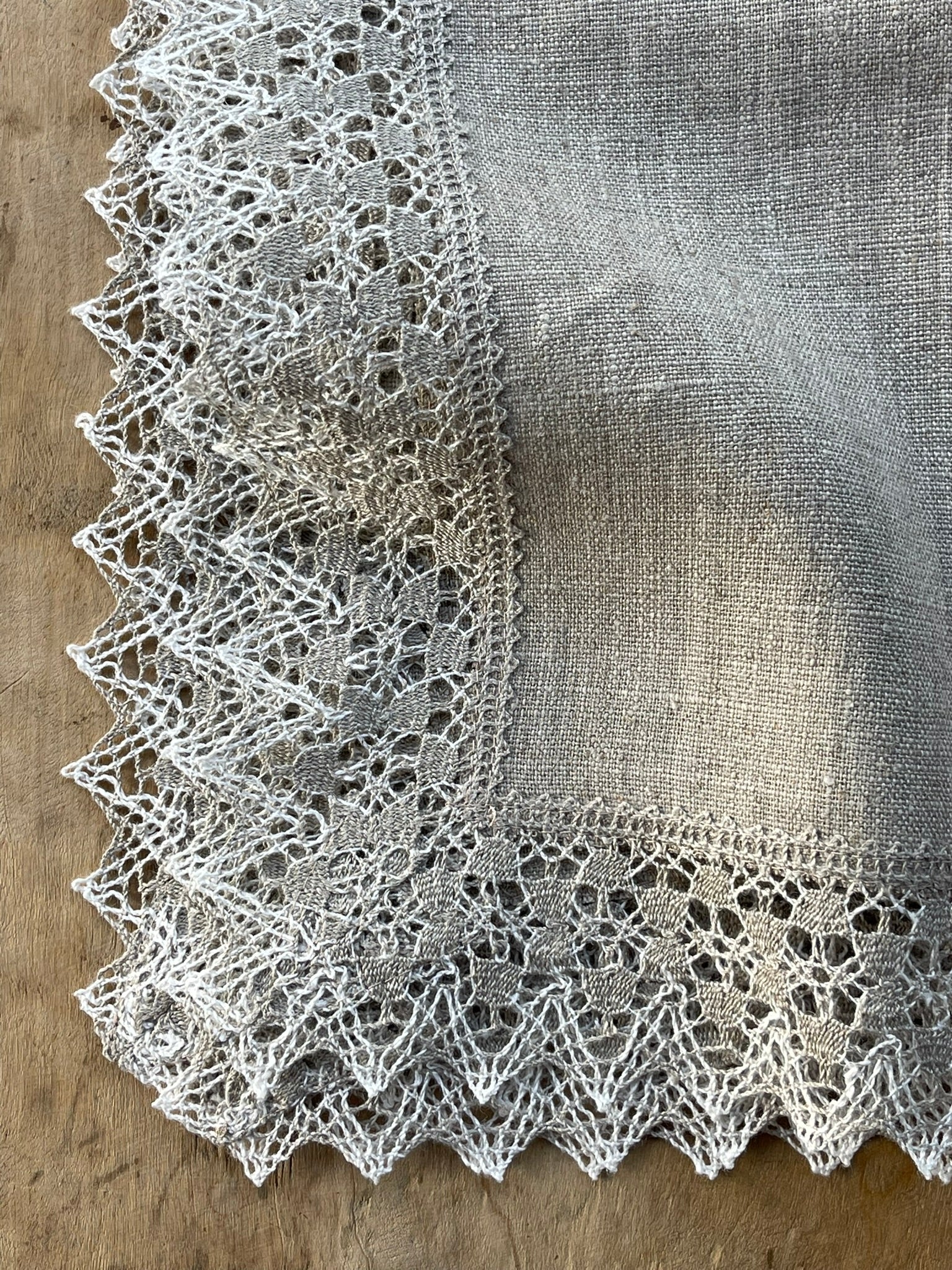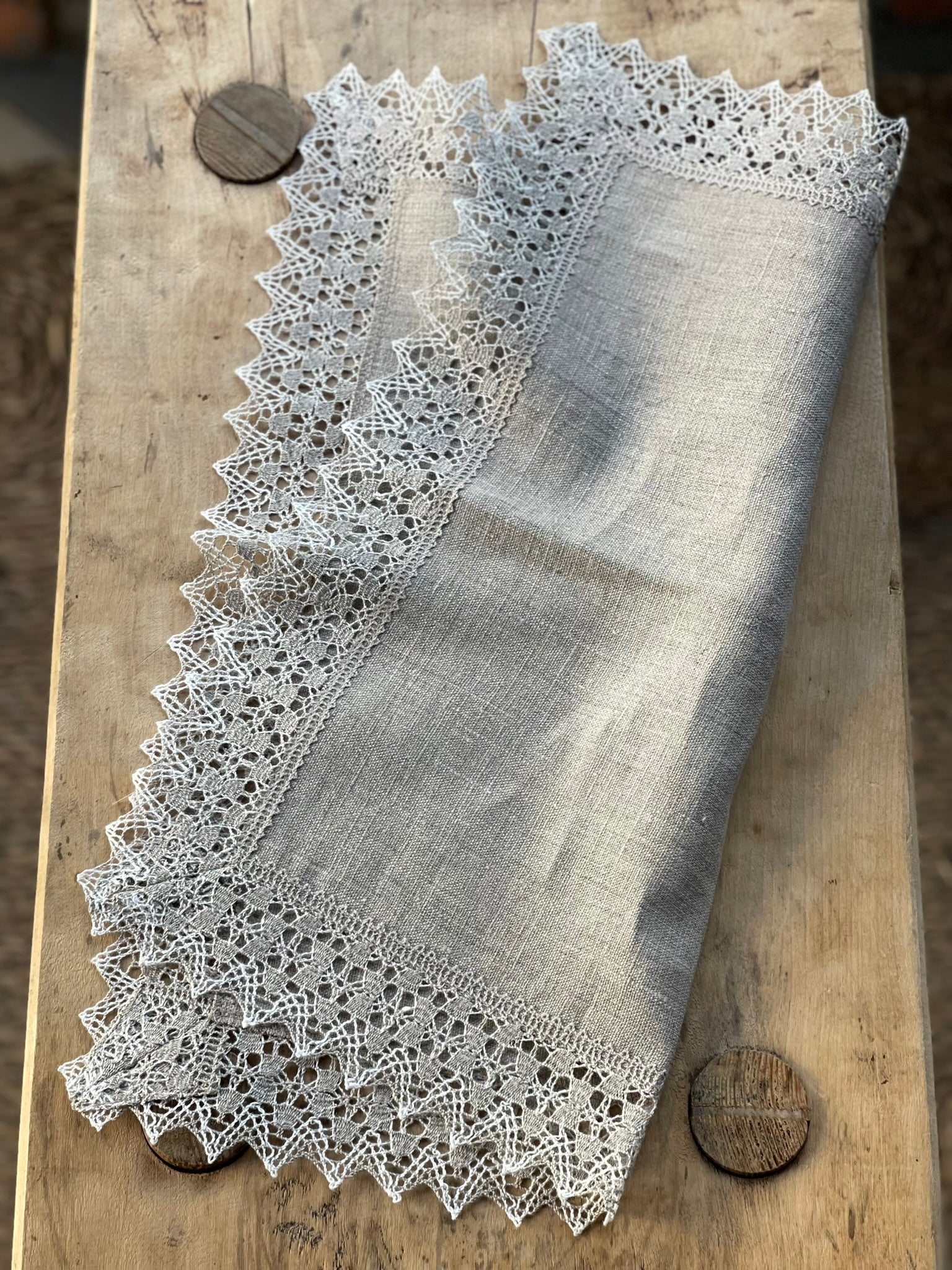 Nekrāsota, dabīgi pelēka toņa mīkstināta lina galda salvete ar divkrāsainu lina mežģīni ar ziedu rakstu