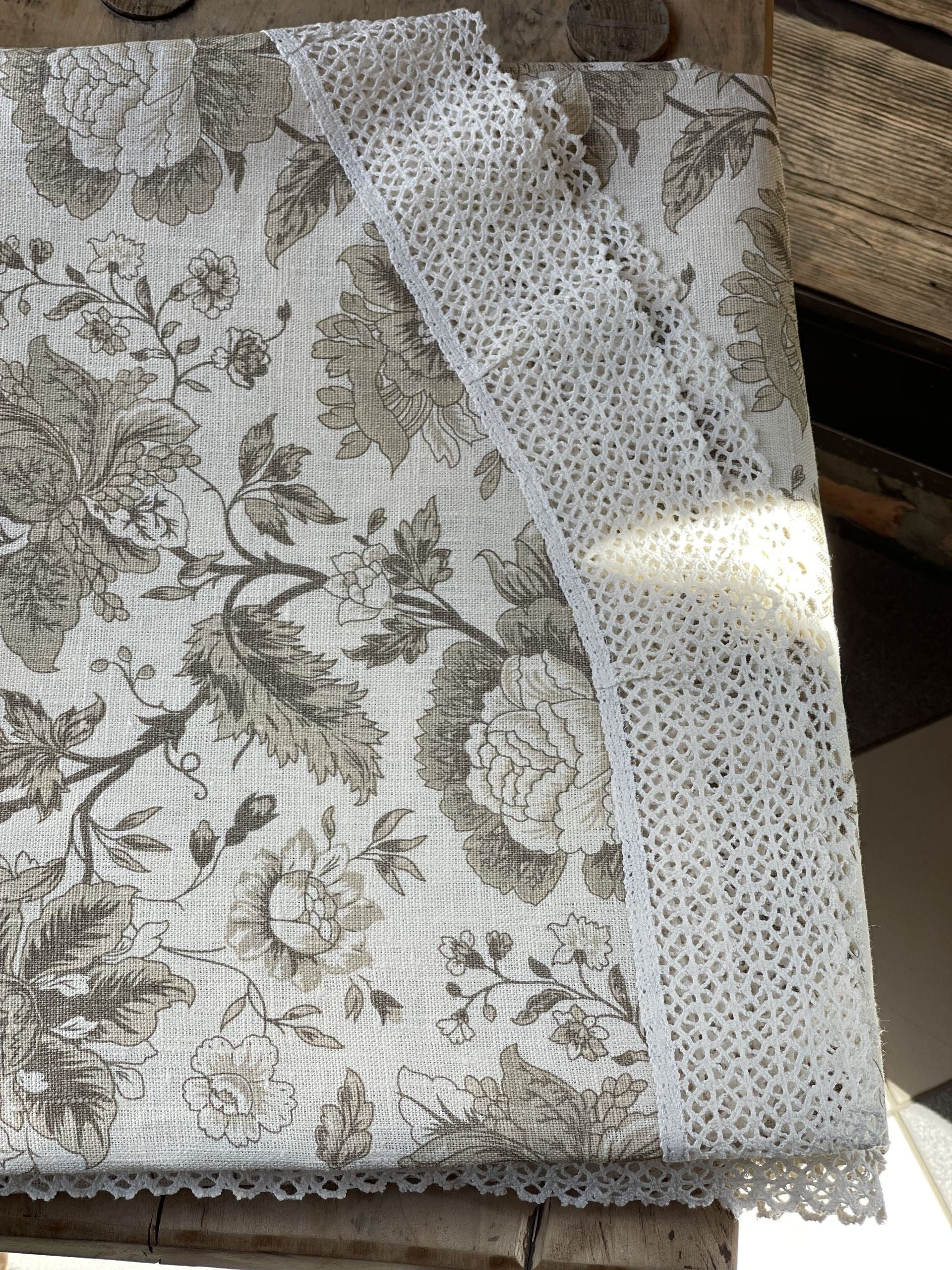 Sastāvs: 100% lina audums/100% lina mežģīne