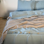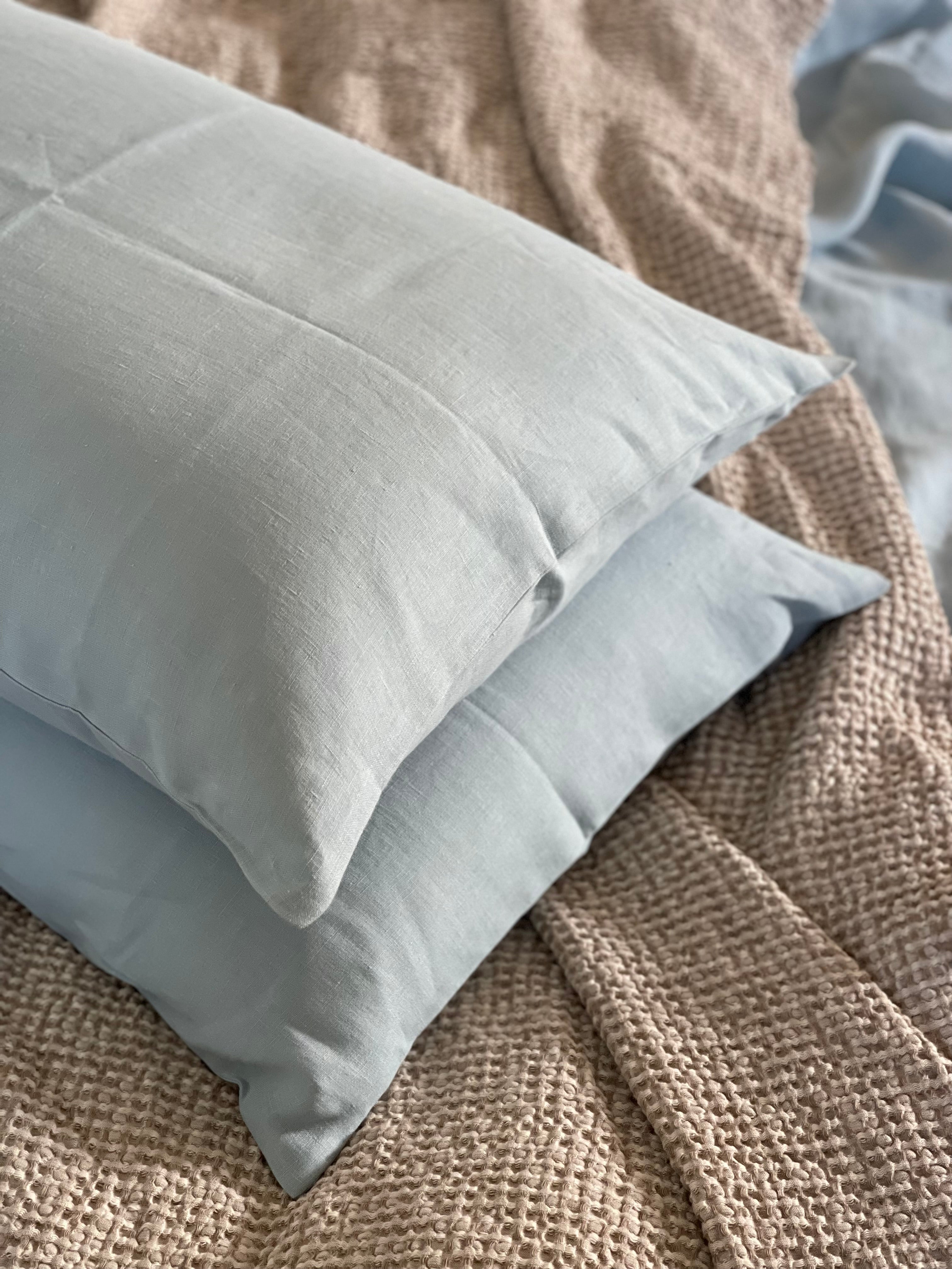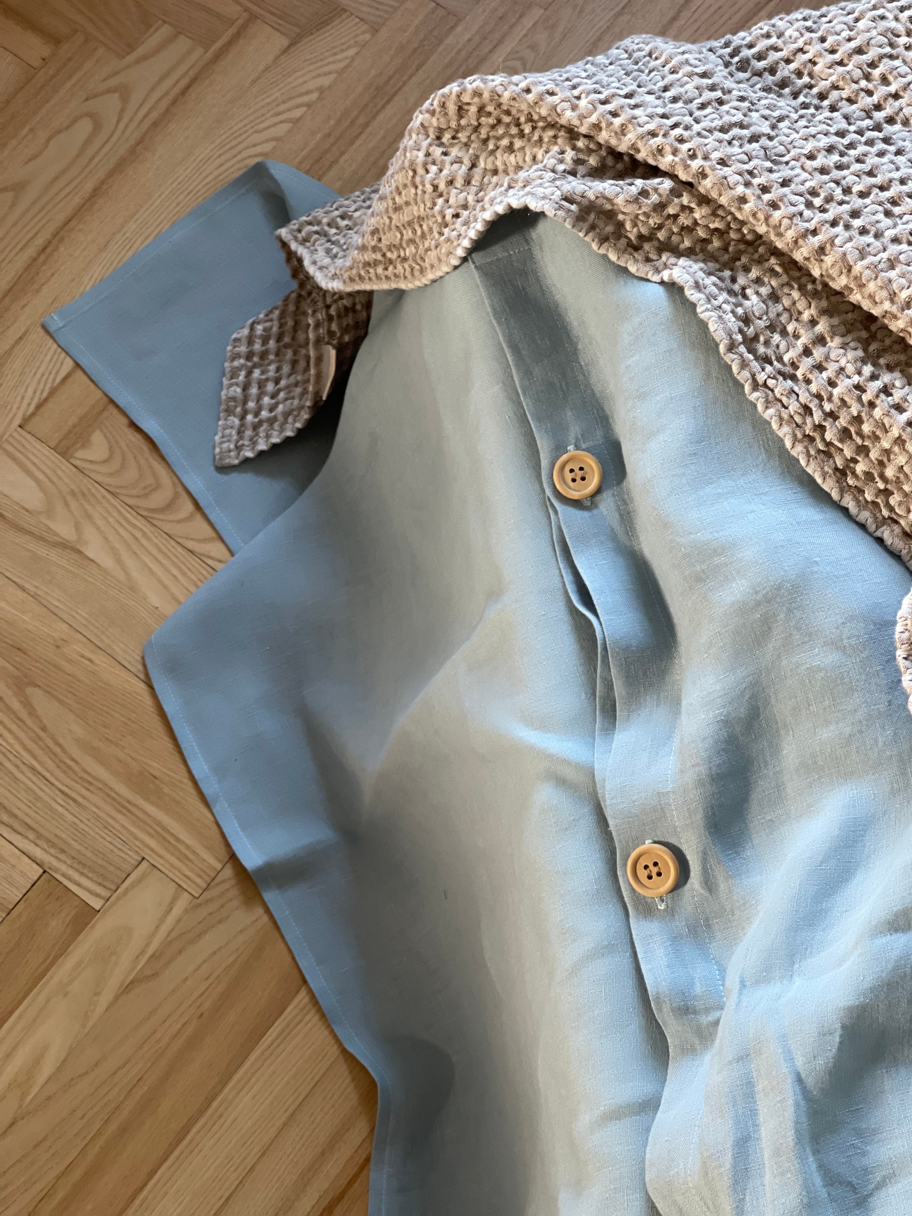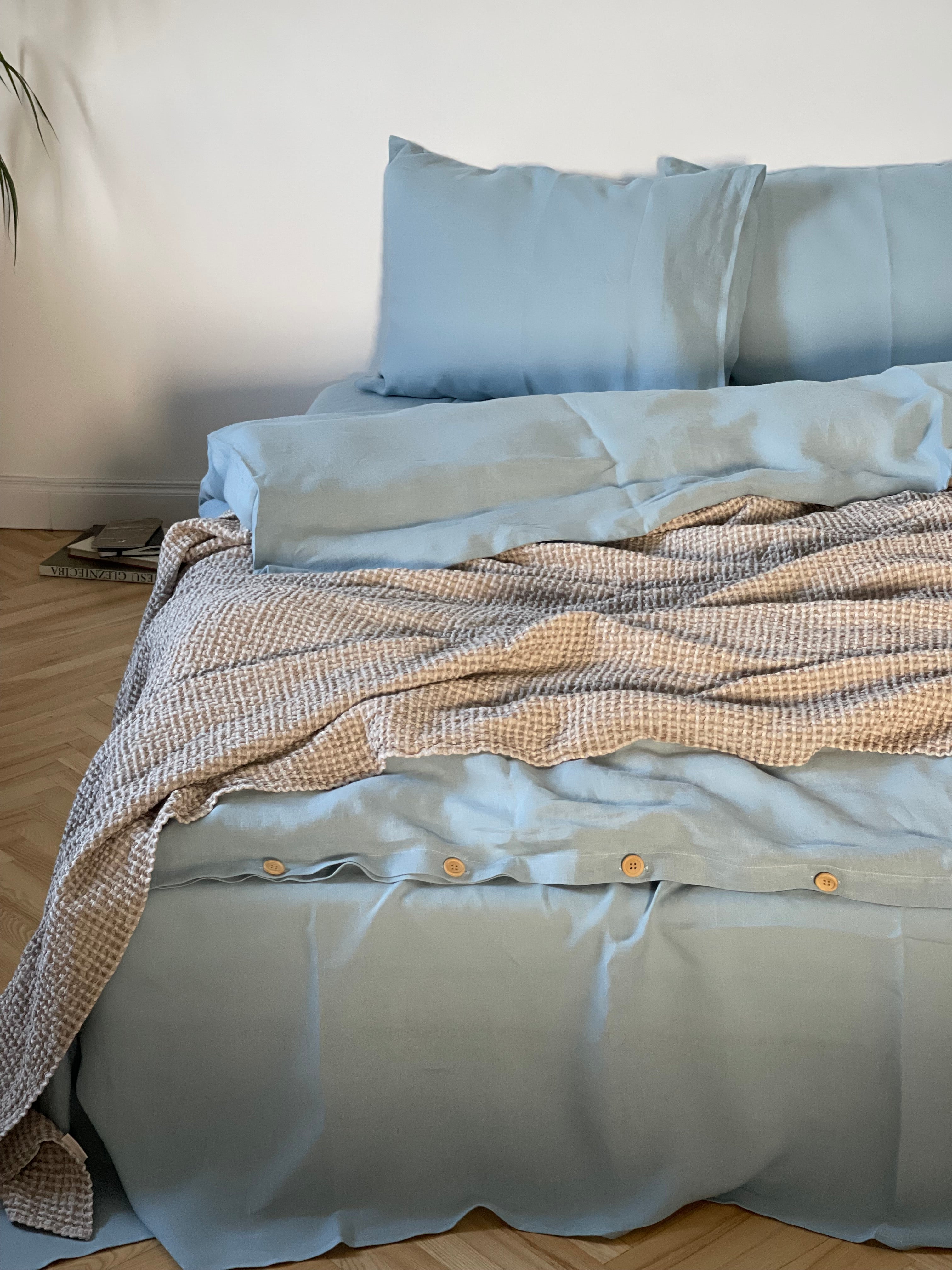 Gaiši zila toņa mīkstināta lina gultas veļas komplekts