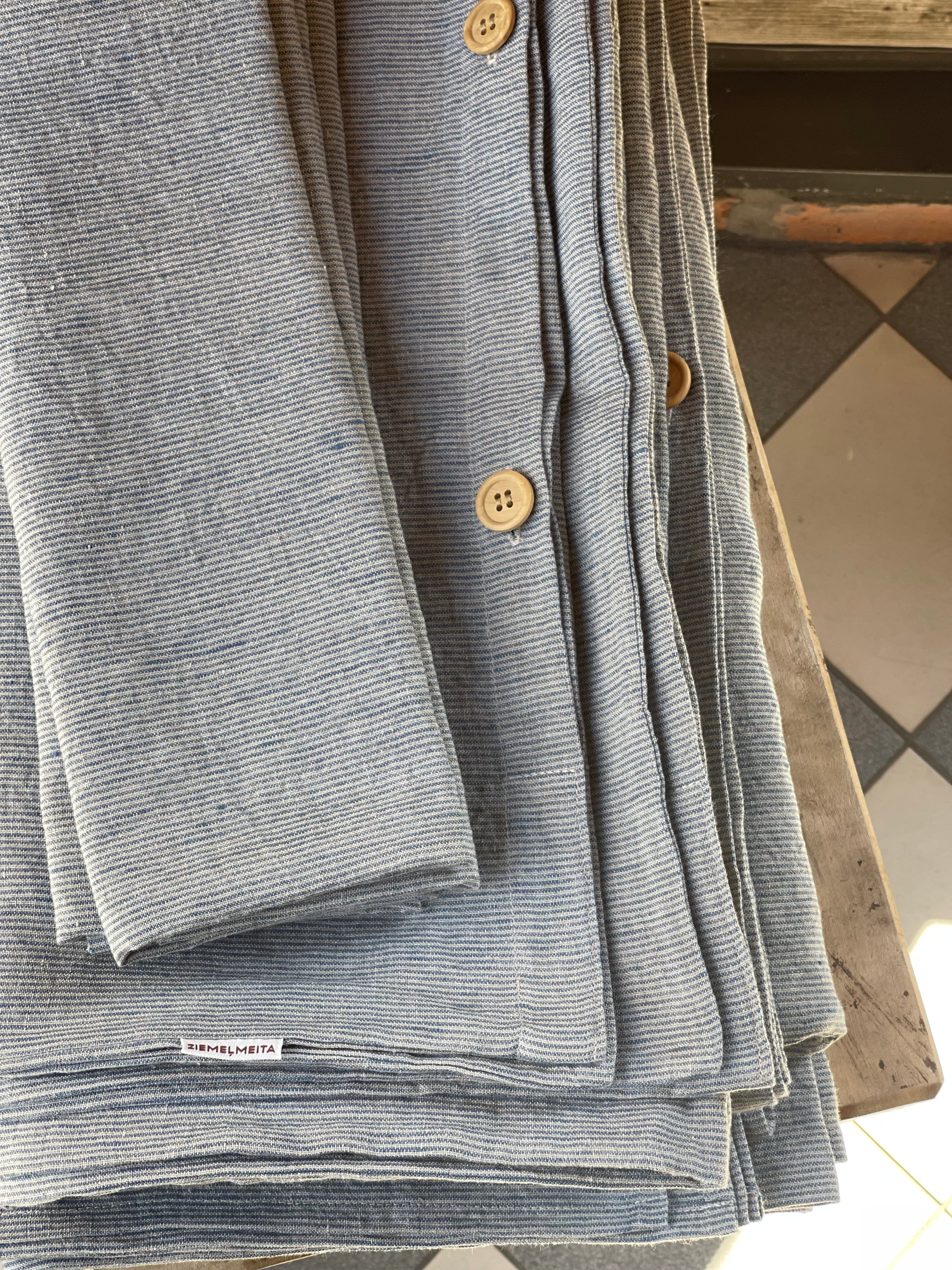 Gaiši zilas/dabīgi pelēkas sīkas svītriņas (~1.5mm) mīkstināta lina gultas veļas komplekts