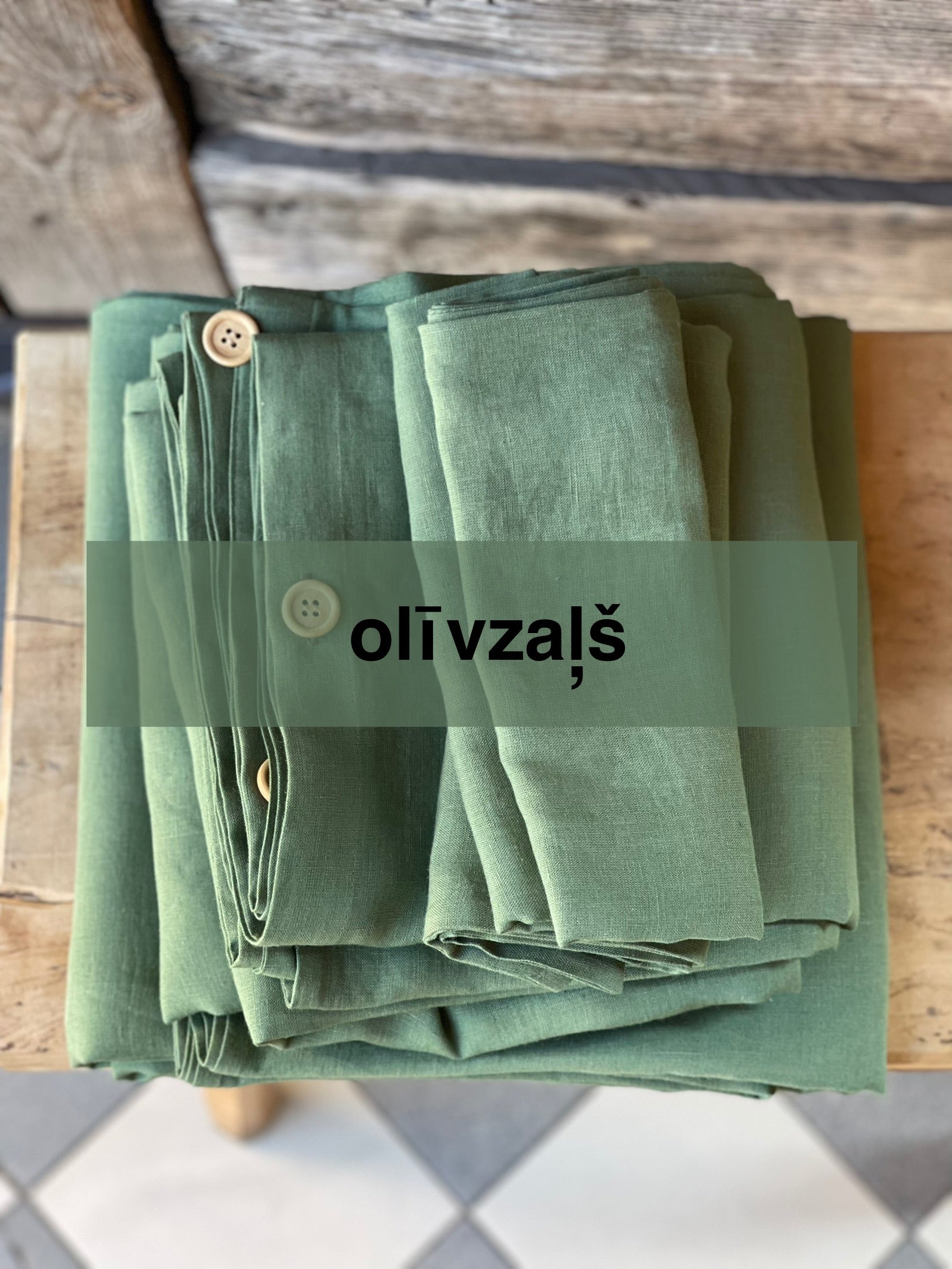Palags ar gumiju no OLĪVZAĻA toņa viegli mīkstināta lina auduma, dažādi izmēri