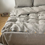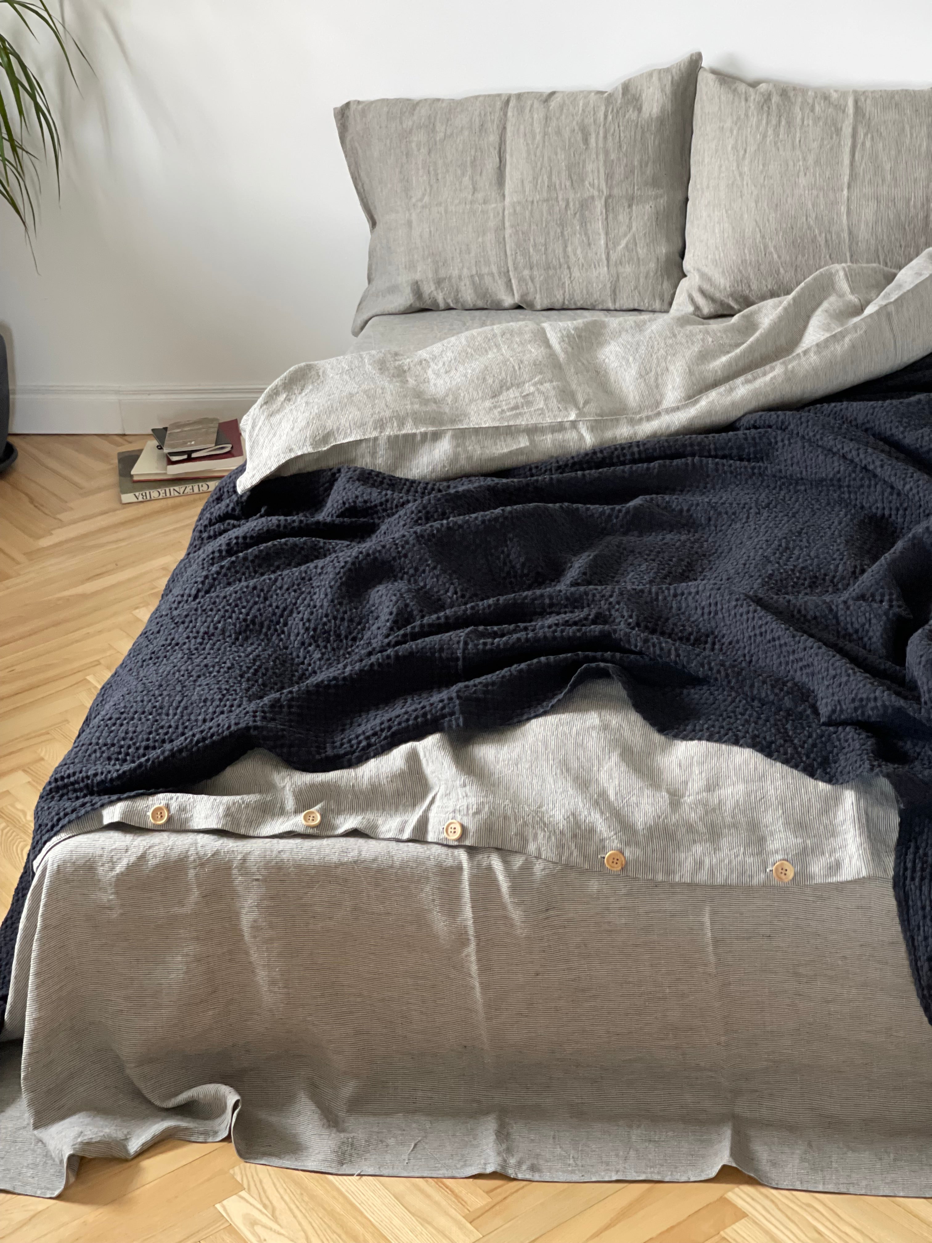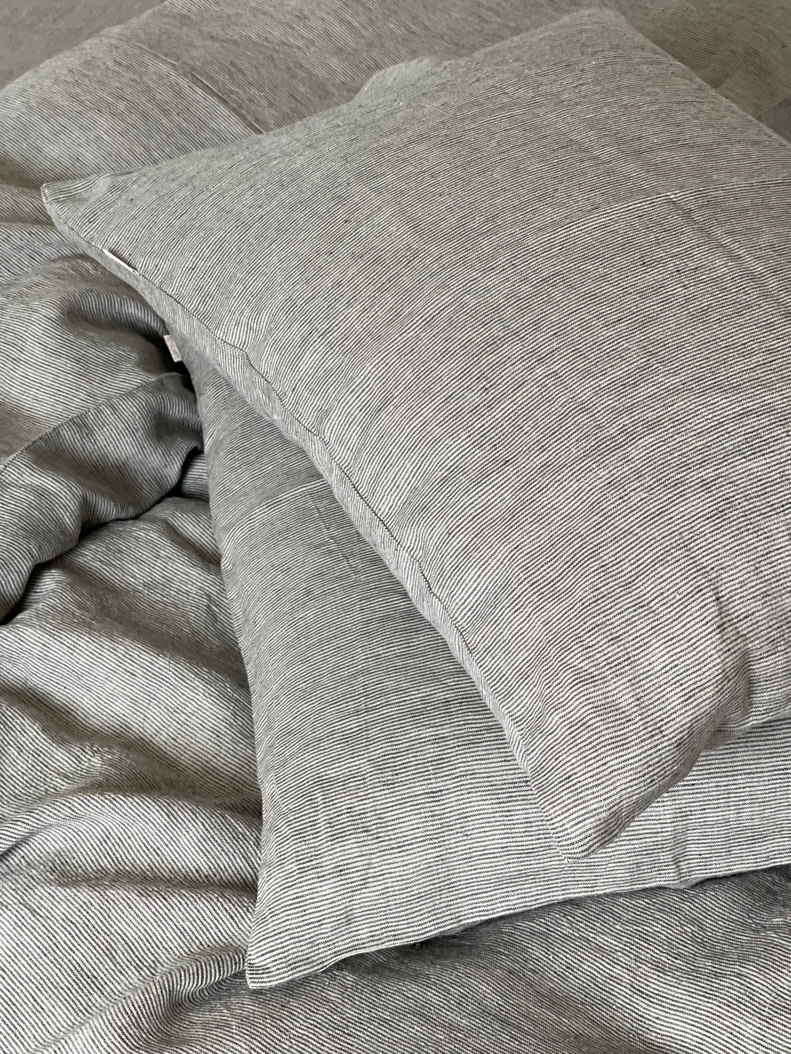 Palags ar gumiju no SVĪTRAINA (TUMŠI PELĒKAS/dabīgi pelēkas sīkas svītriņas(~1.25mm)) dizaina viegli mīkstināta lina auduma, dažādi izmēri