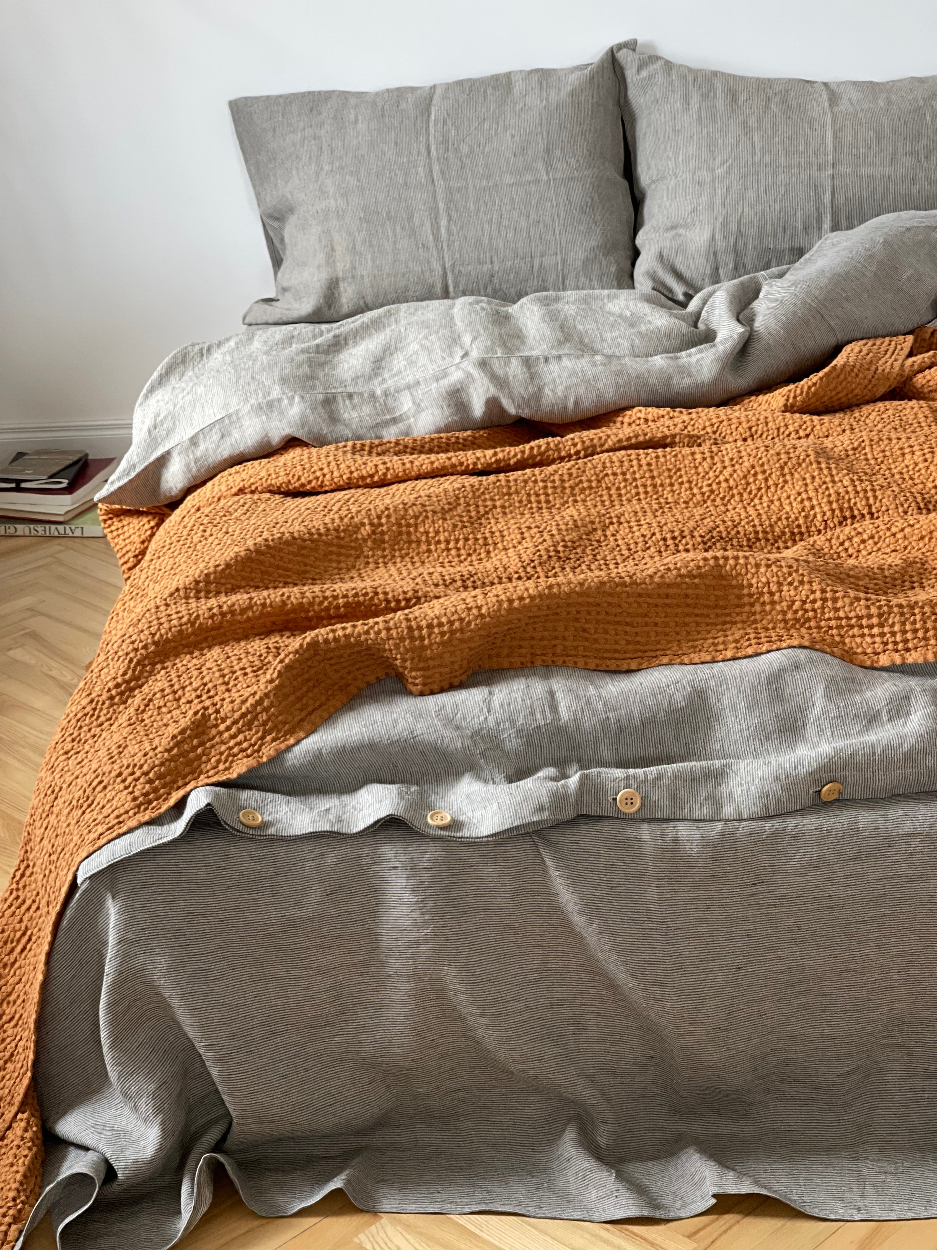 Mūsu lina izstrādājumi tiek izgatavoti no 100% dabīga, mīkstināta lina, kas ir ne tikai patīkams pieskārienam, bet arī izturīgs un viegli kopjams. Lins ir elpojošs, ātri žūstošs un kļūst mīkstāks ar katru mazgāšanas reizi.
