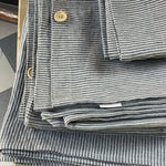 Palags ar gumiju no SVĪTRAINA (TUMŠI PELĒKAS/dabīgi pelēkas vidēji platas svītriņas(~2.25mm)) dizaina viegli mīkstināta lina auduma, dažādi izmēri