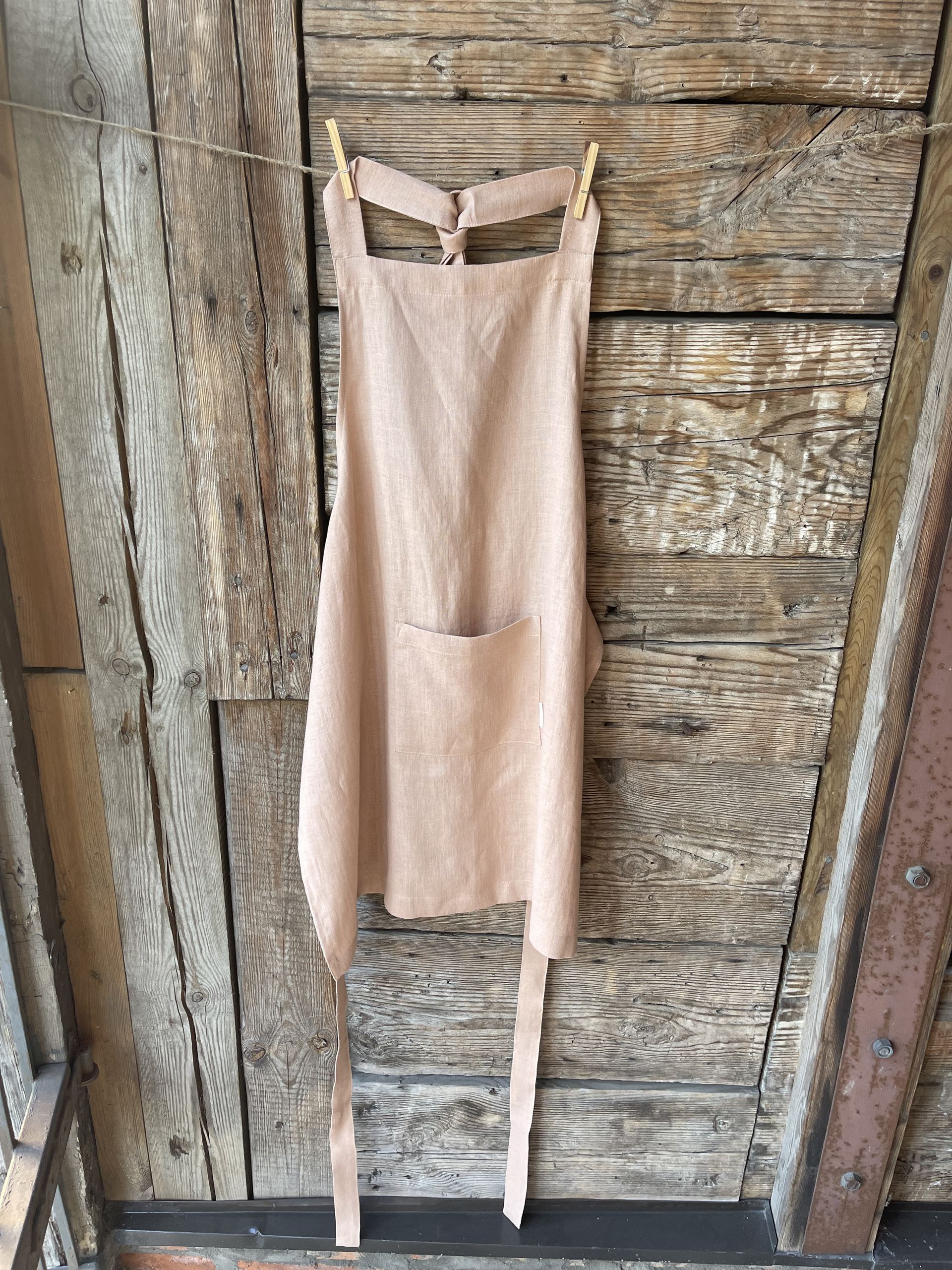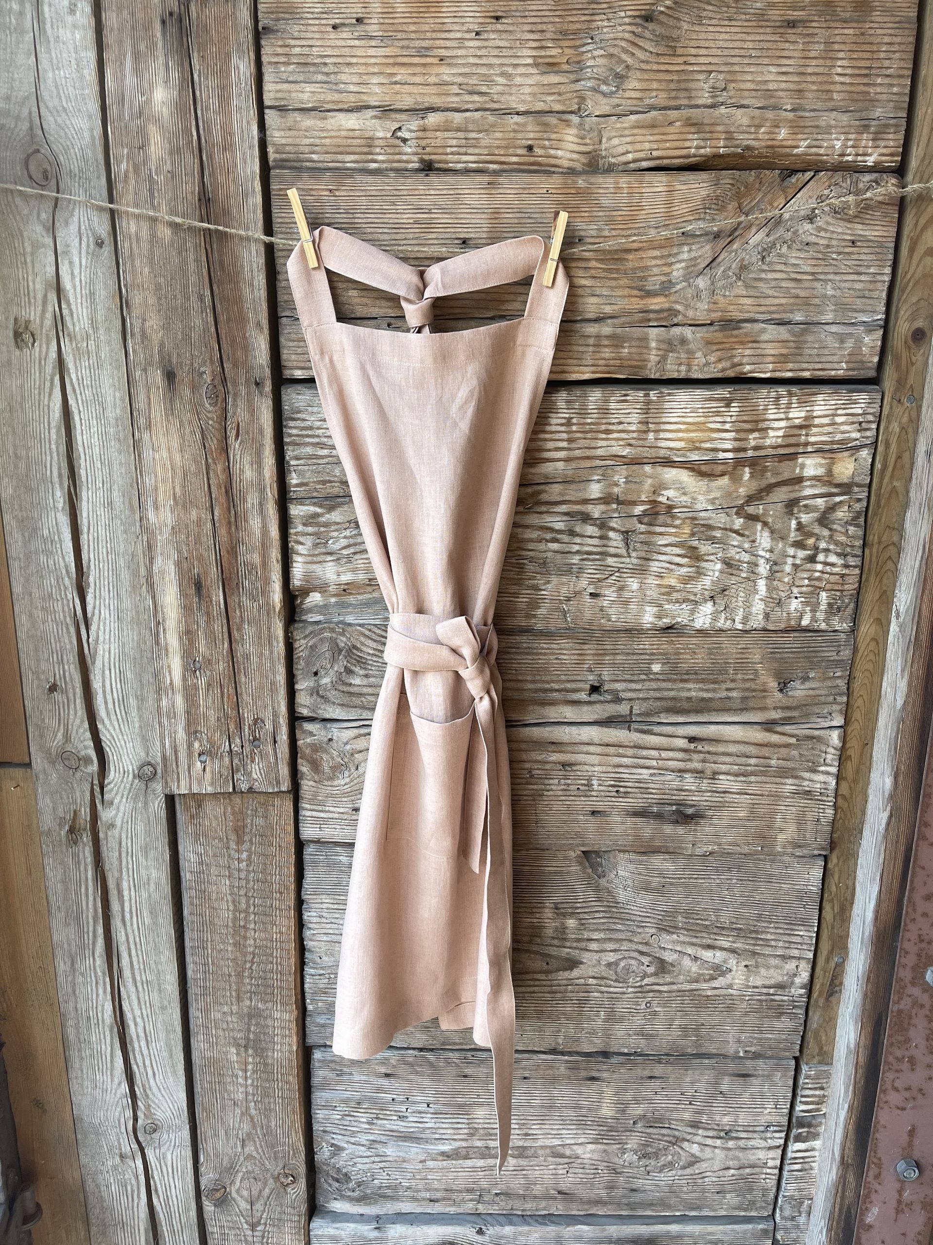 Ērts un skaists lina priekšauts kas derēs jebkuram izmēram, jo lenču garums ir regulējams.