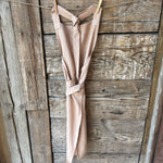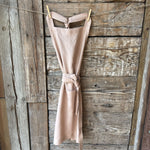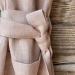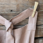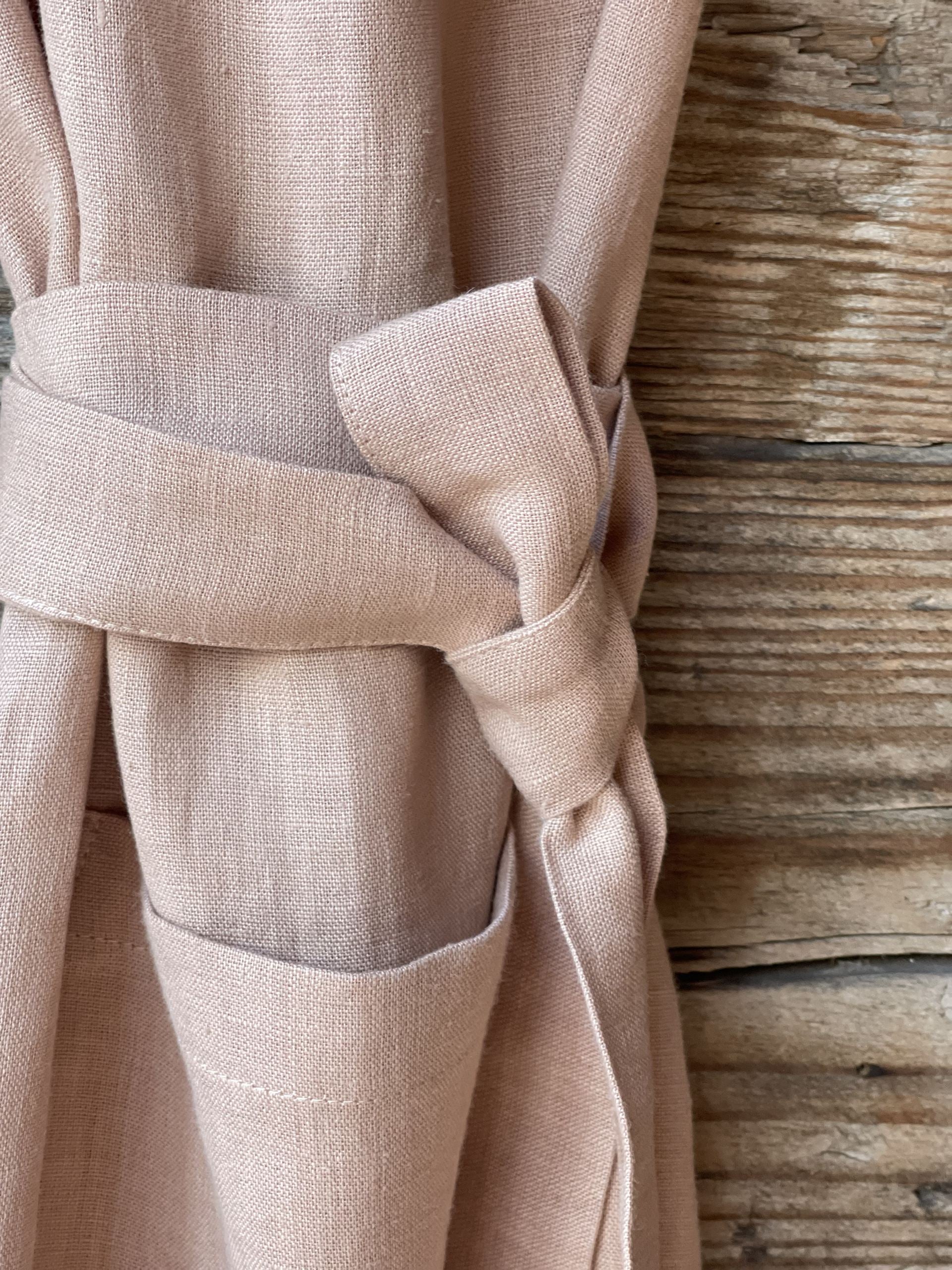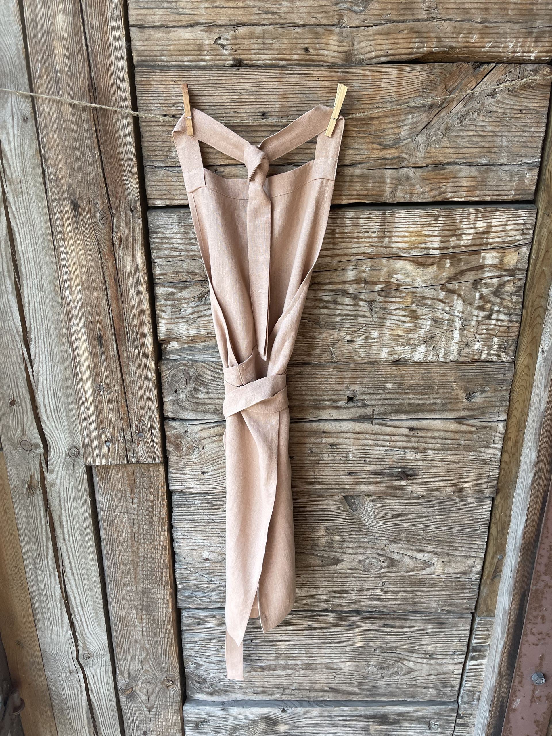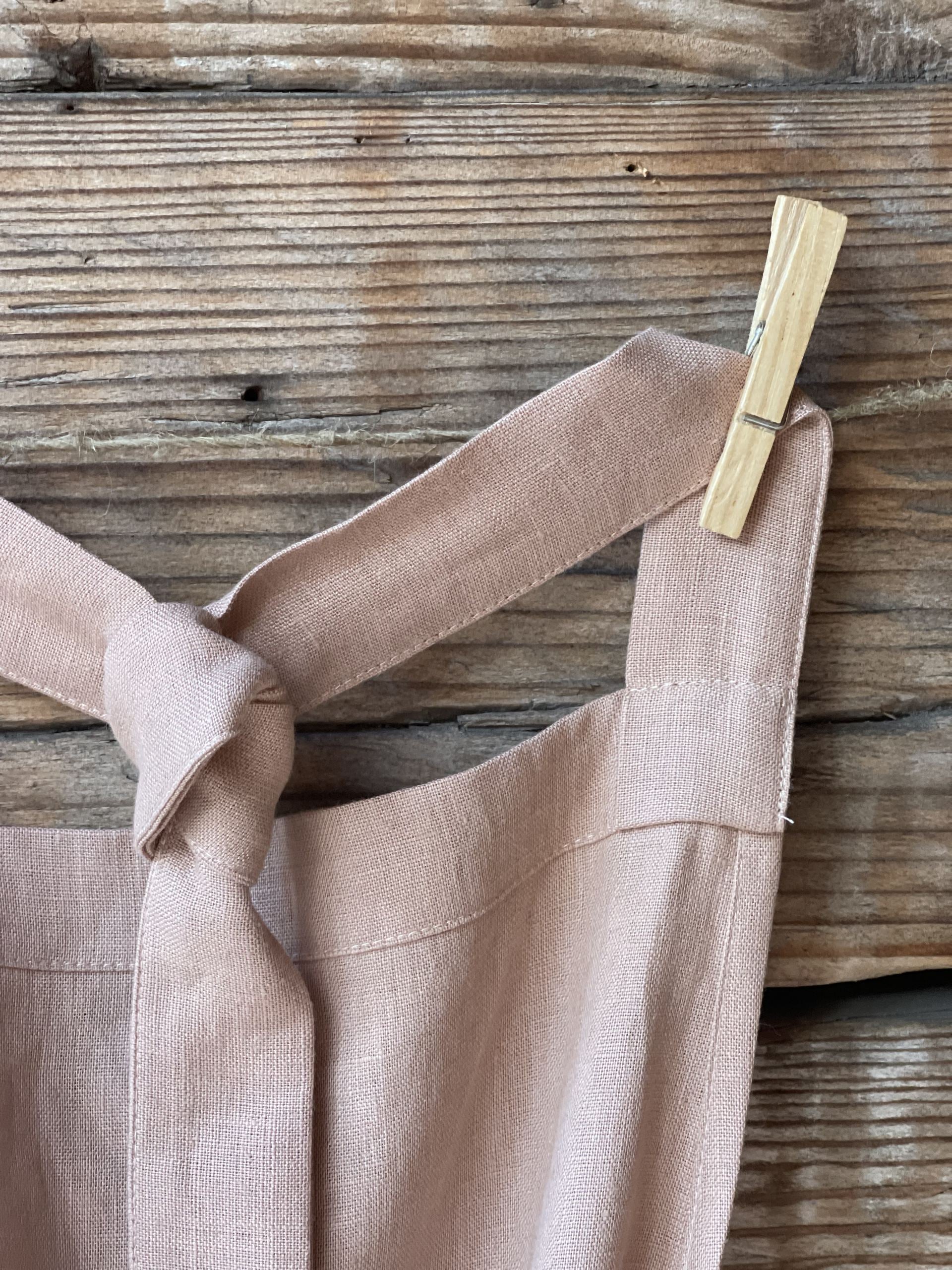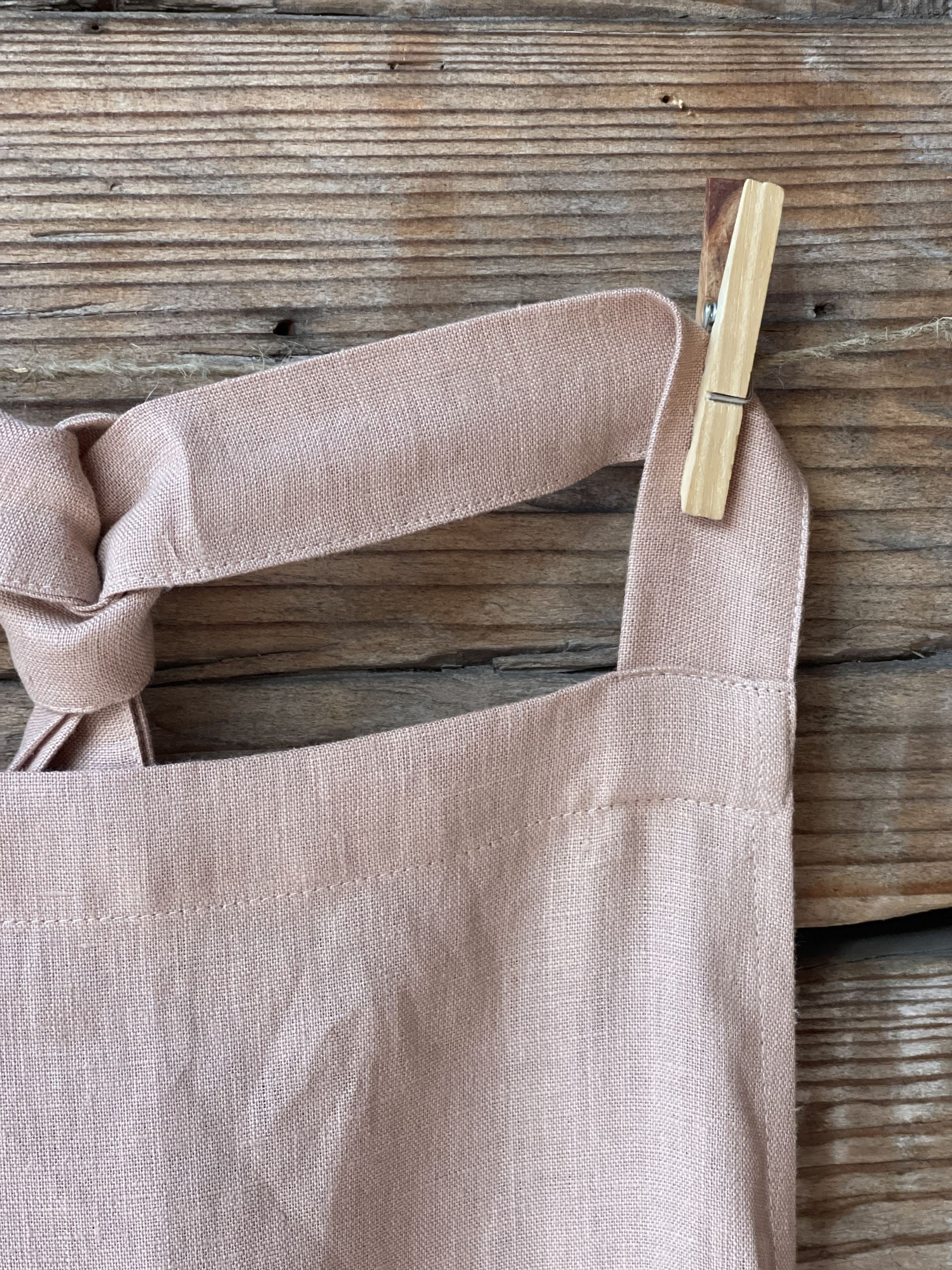 Maigi rozā toņa lina auduma priekšauts ar kabatiņu un regulējamām lencēm
