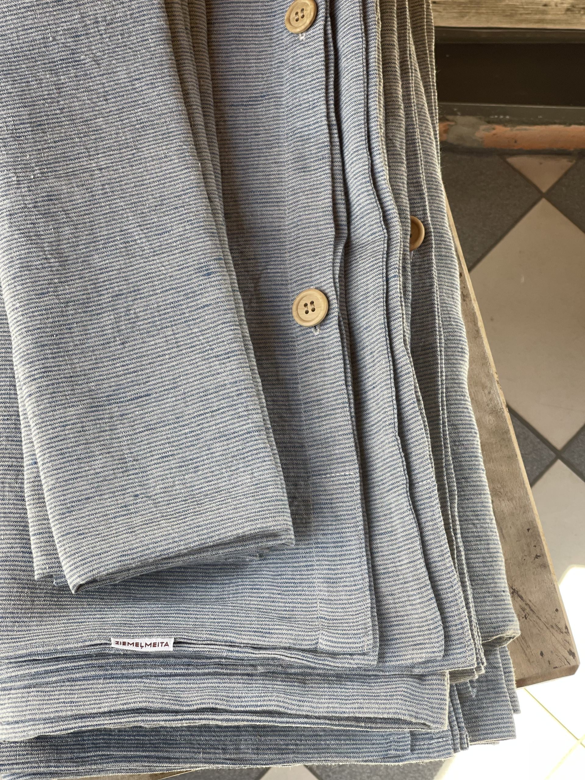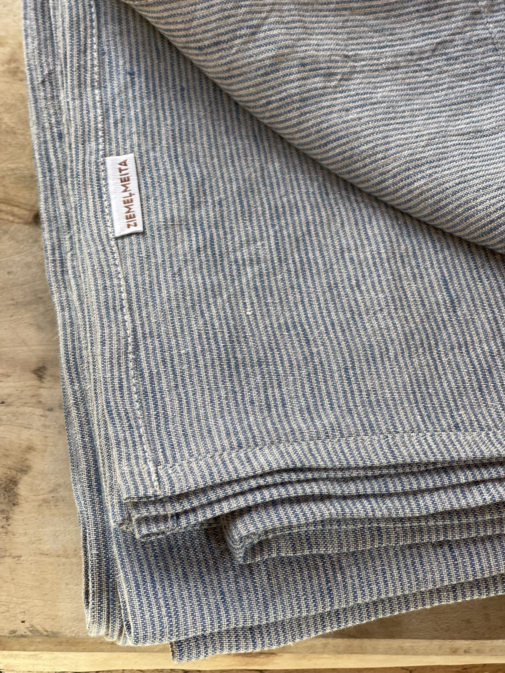 Gaiši zili sīki svītrains mīkstināts lina segas pārvalks ar gaiši zilām/dabīgi pelēkām (~1.25mm) svītriņām- dažādi izmēri