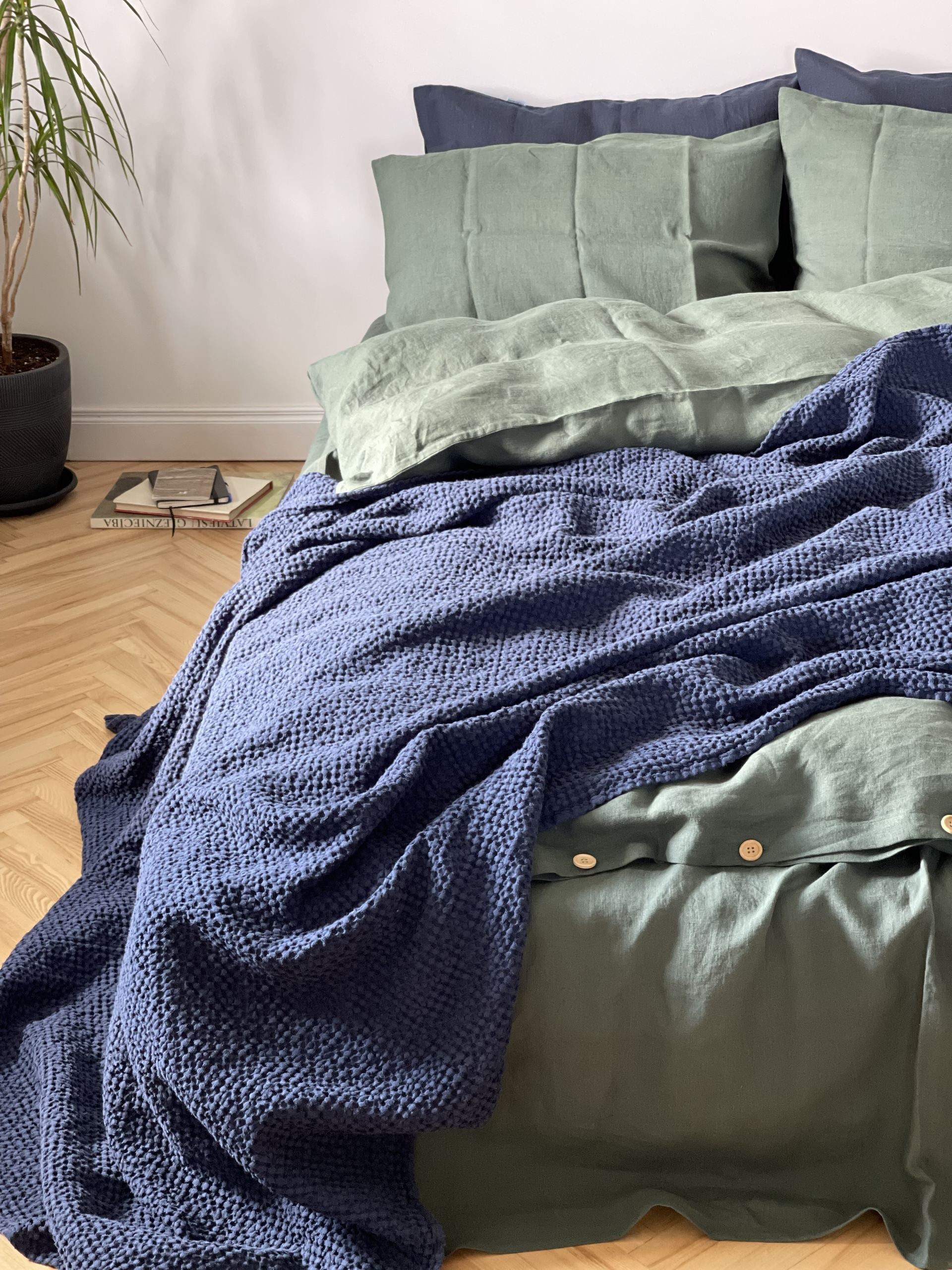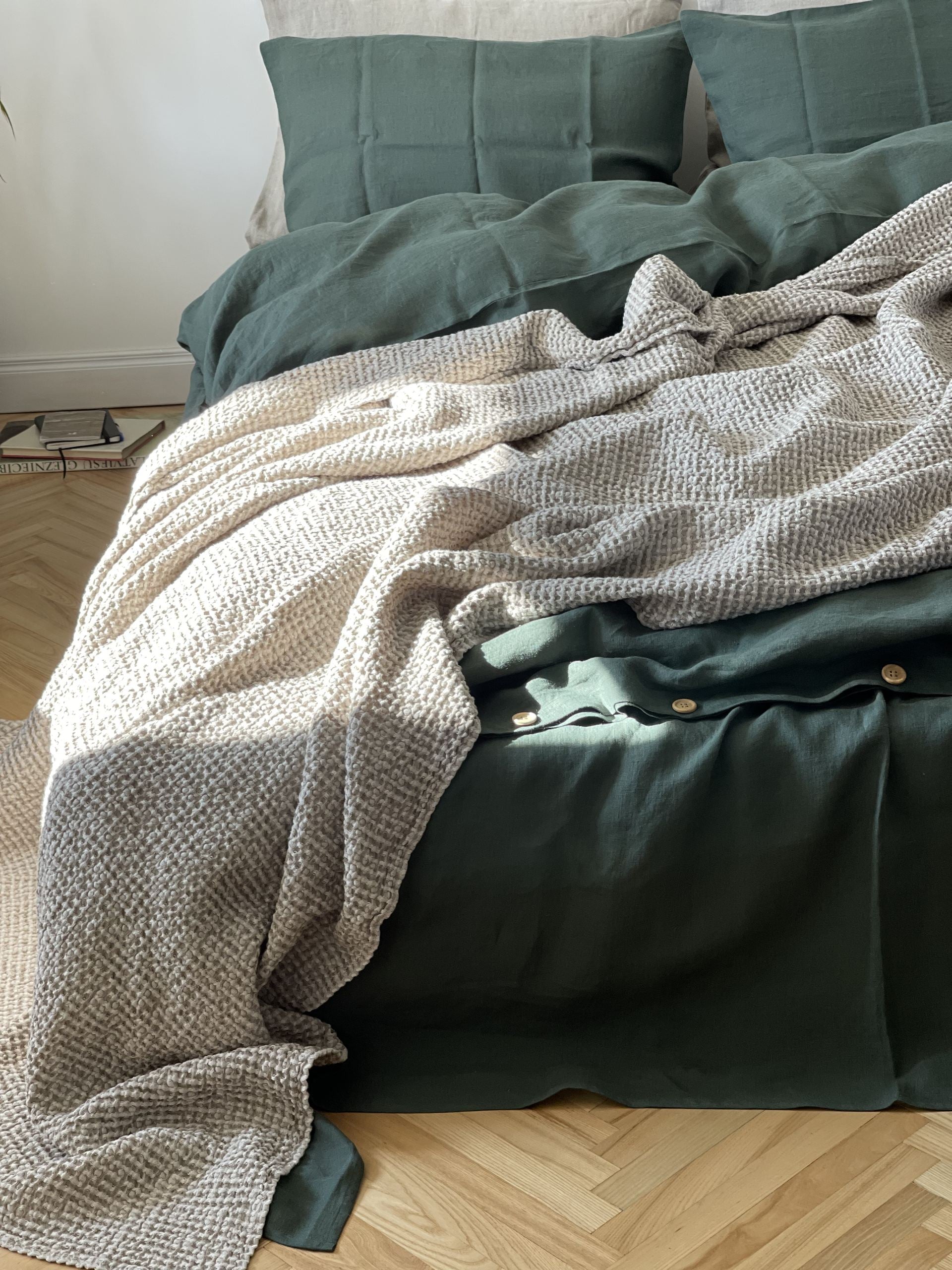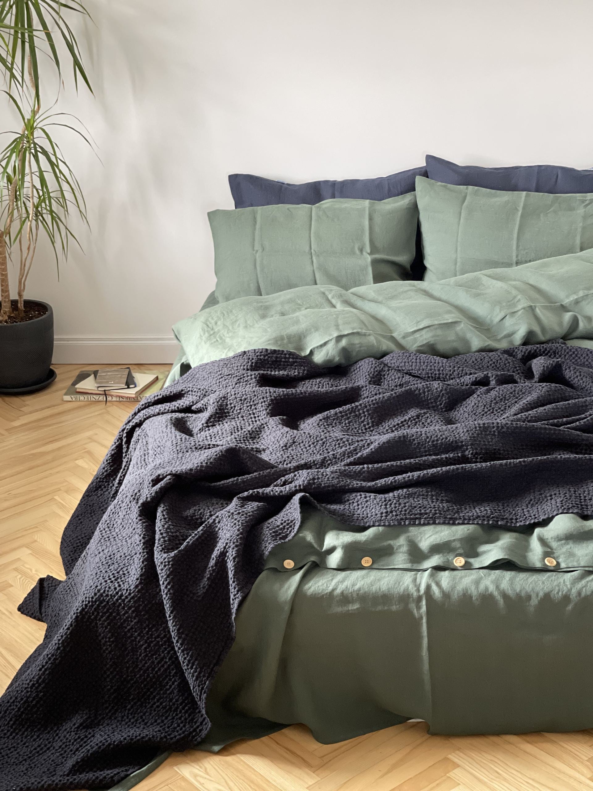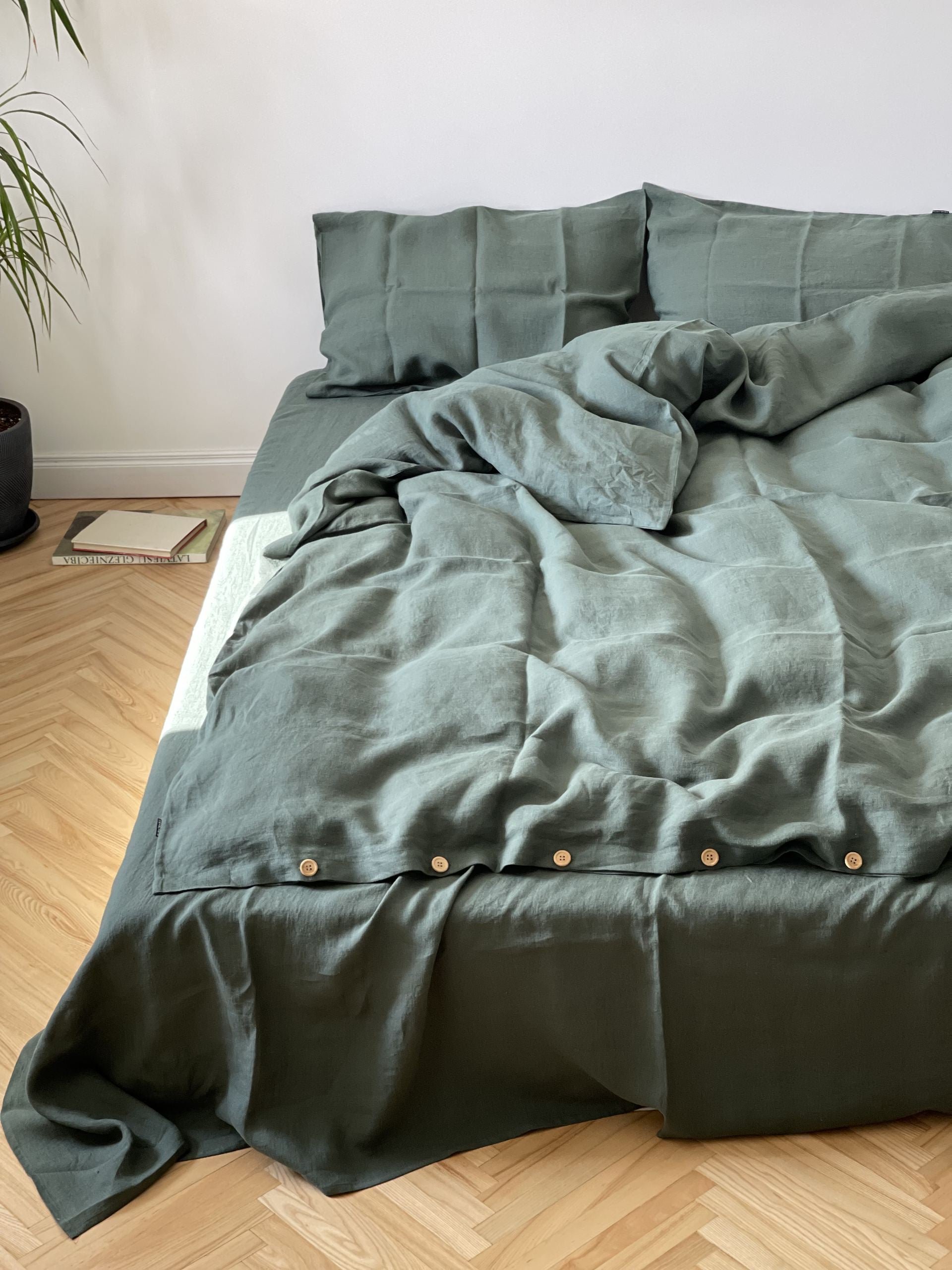 Tumši salvijas zaļa toņa mīkstināta lina segas pārvalks- dažādi izmēri