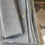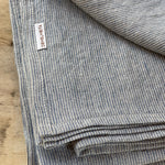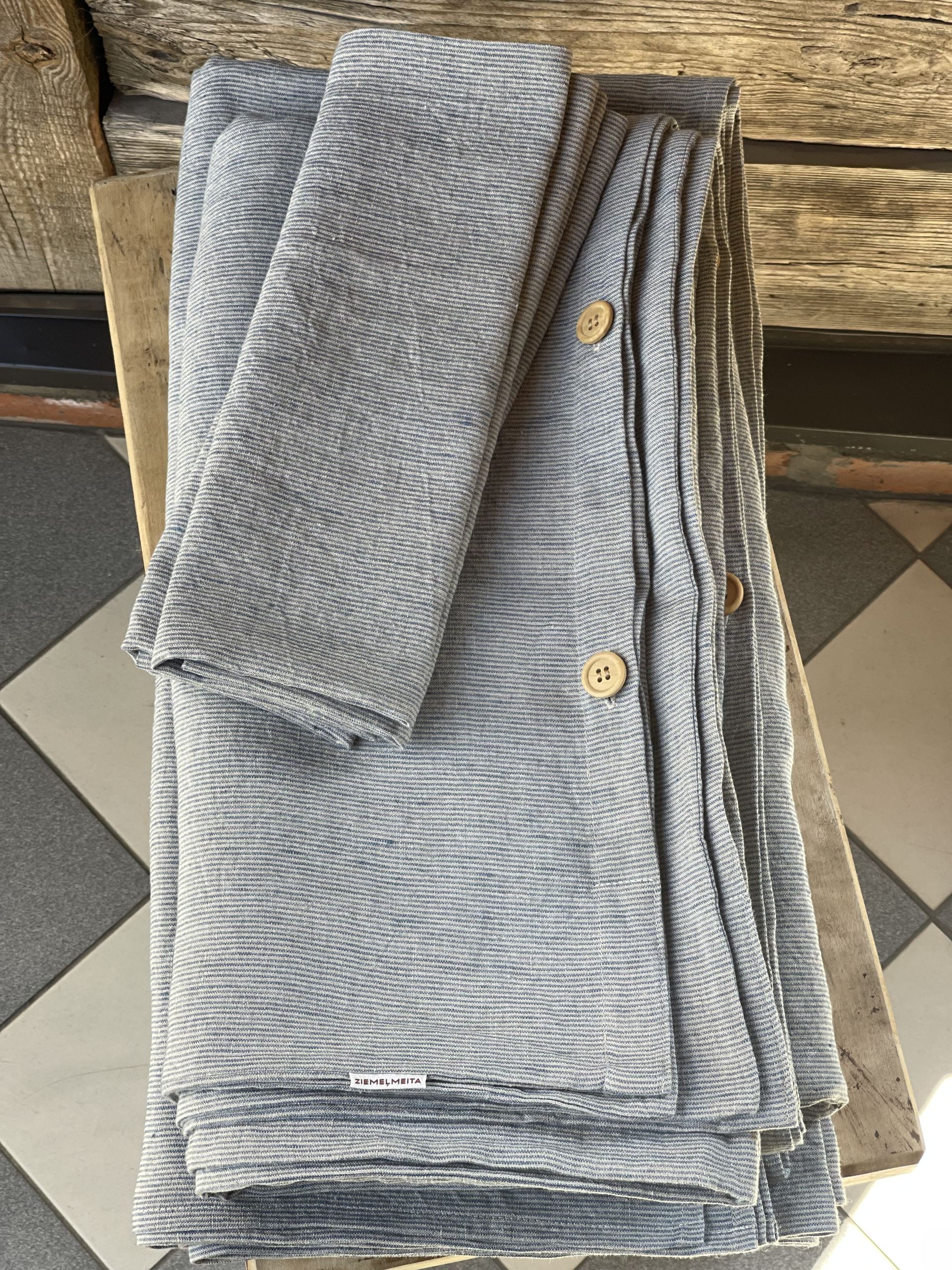 Mīkstināta lina spilvendrāna ar gaiši zilām/dabīgi pelēkām sīkām svītriņām (~1.25mm)