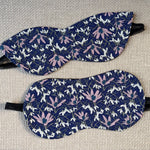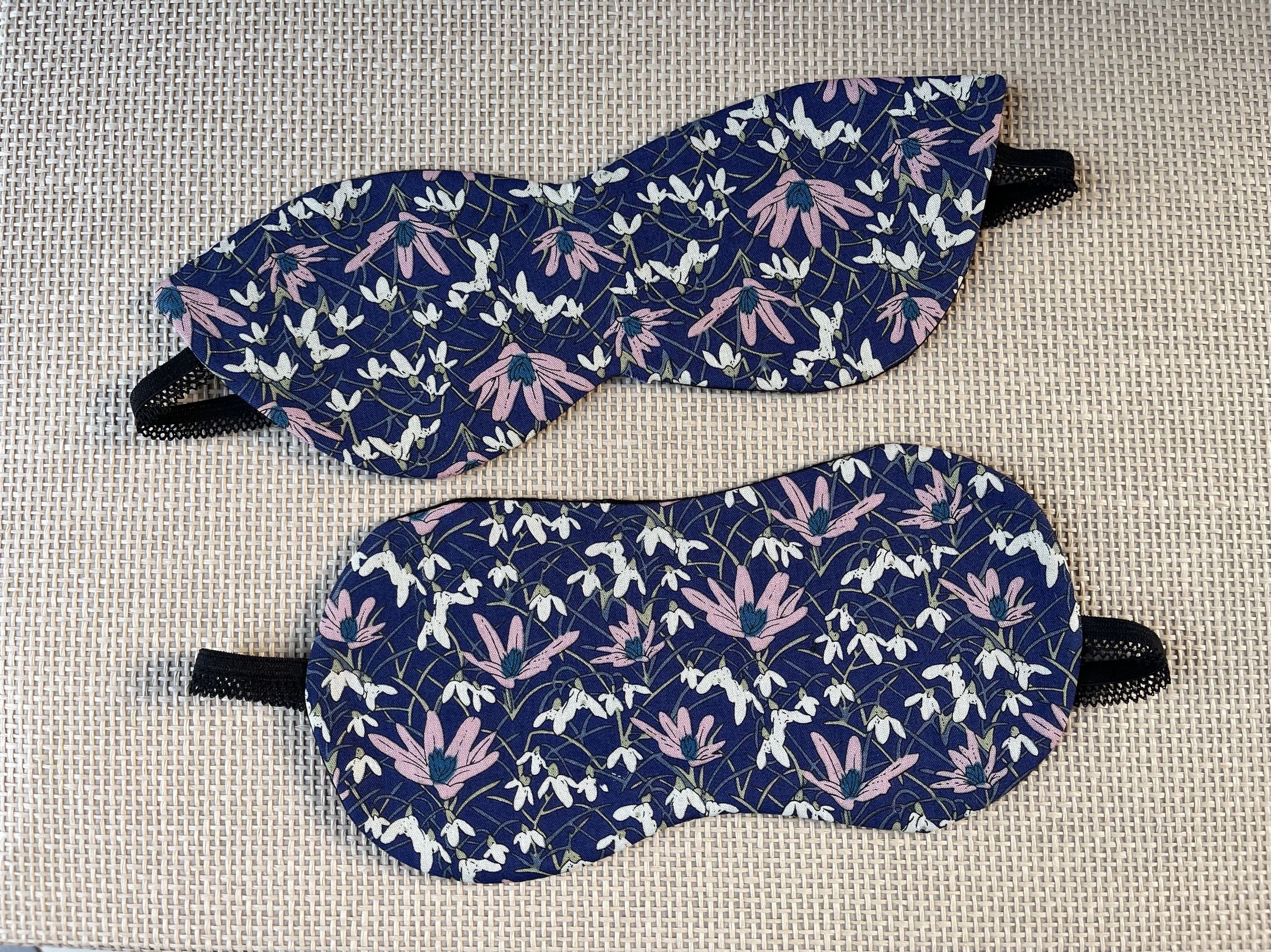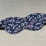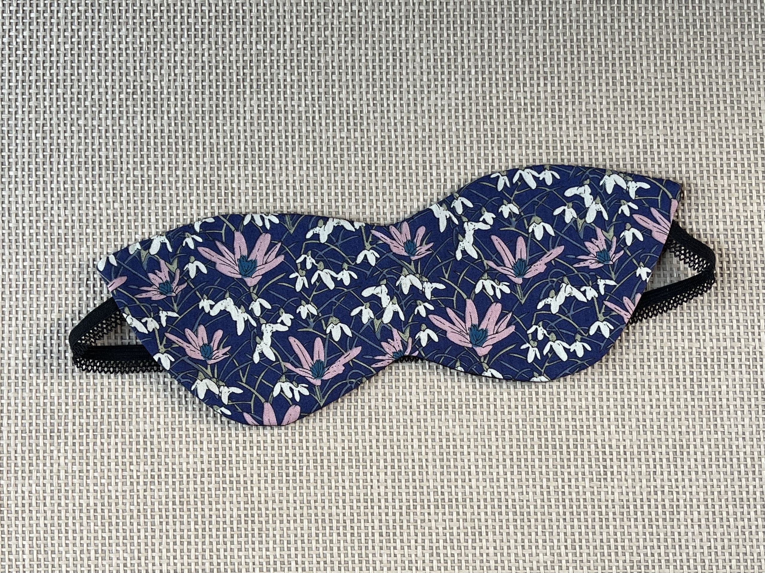 Tumši zila kaķa acu formas miega maska gulēšanai ar pavasara ziediem