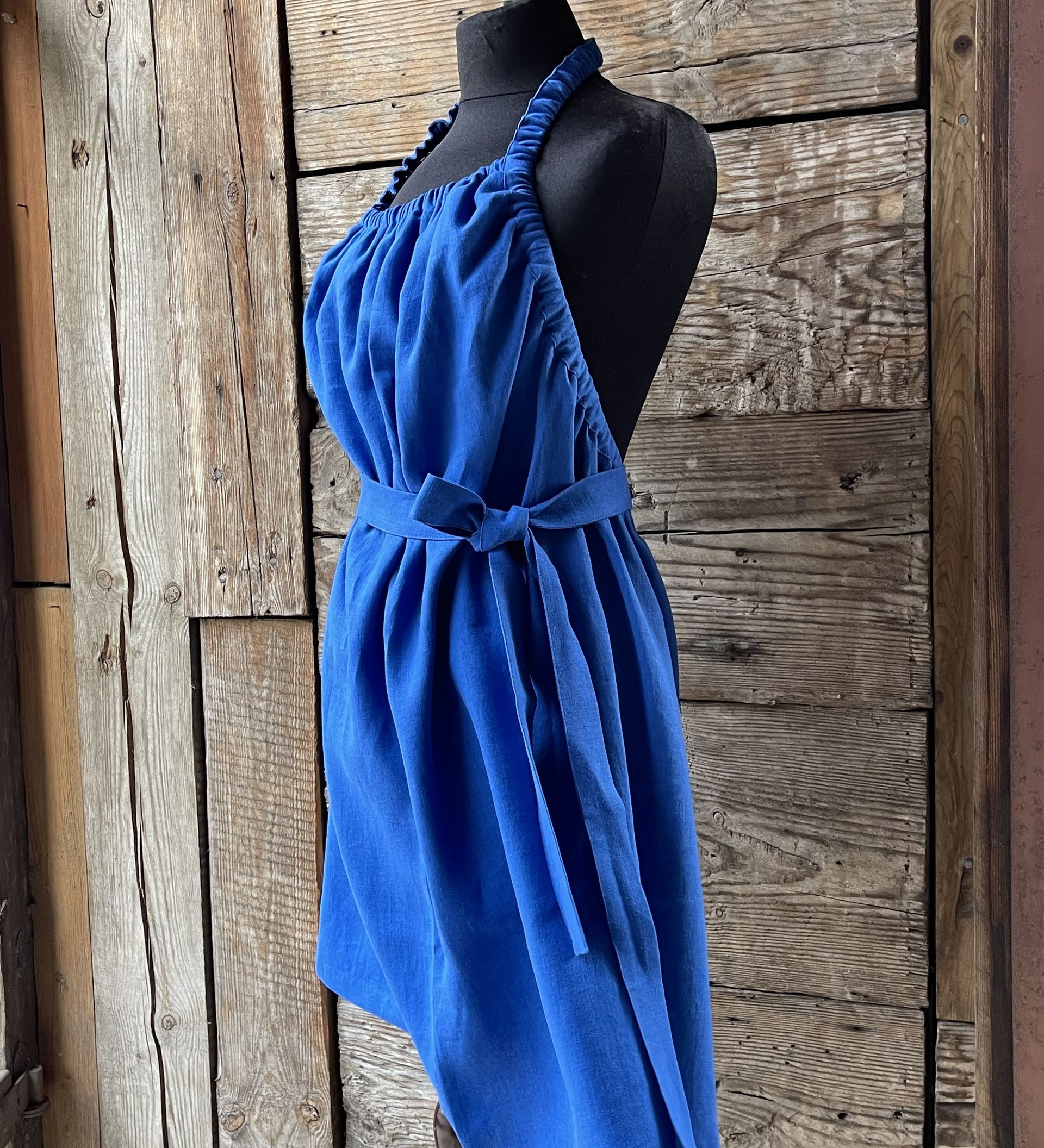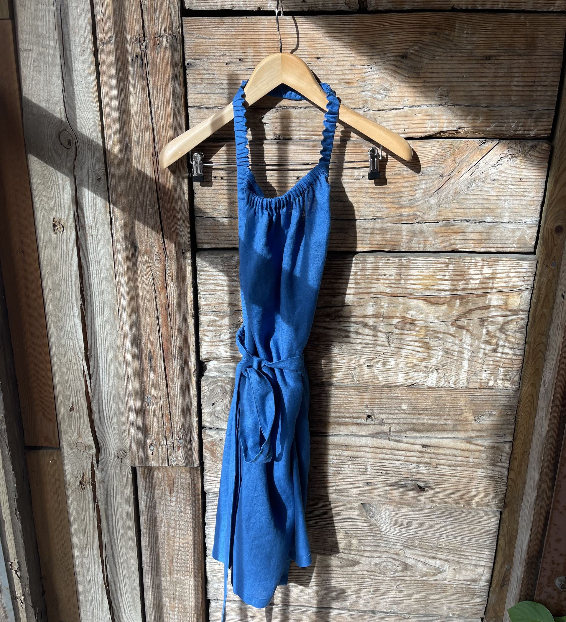 Koši zila mīkstināta lina pirts kleita ar sasienamām jostas bantēm